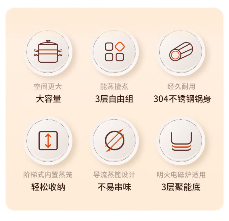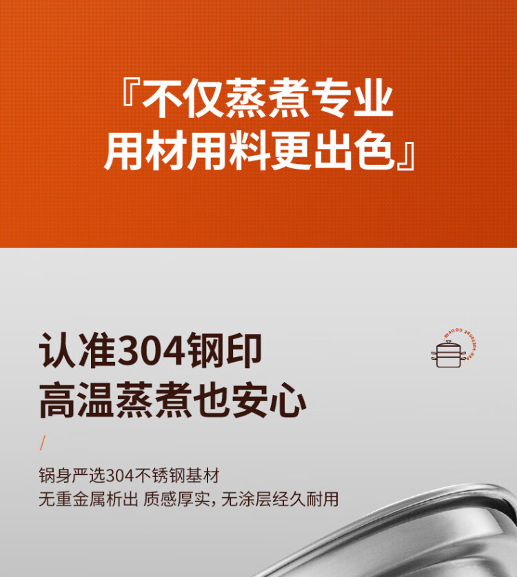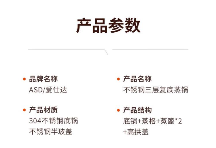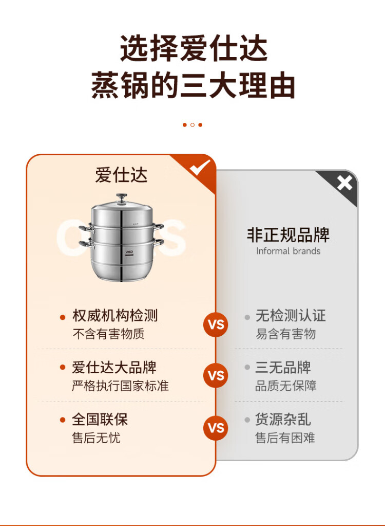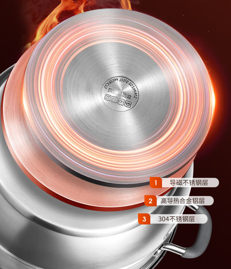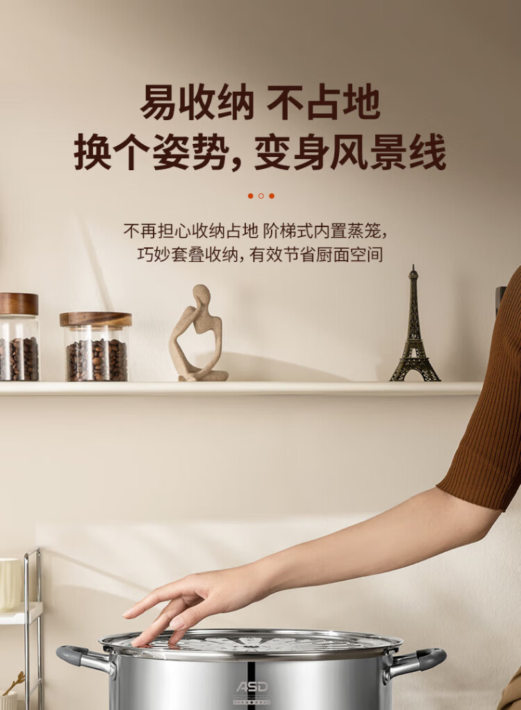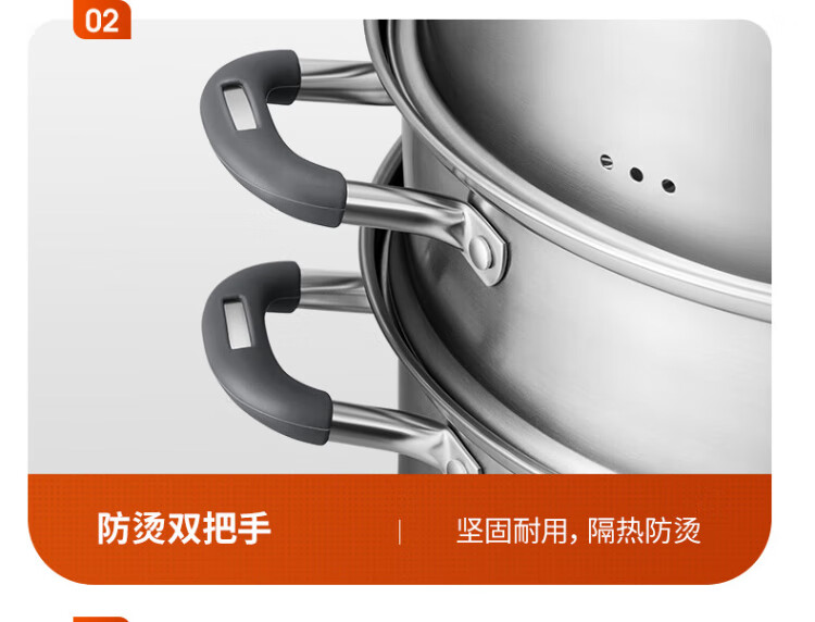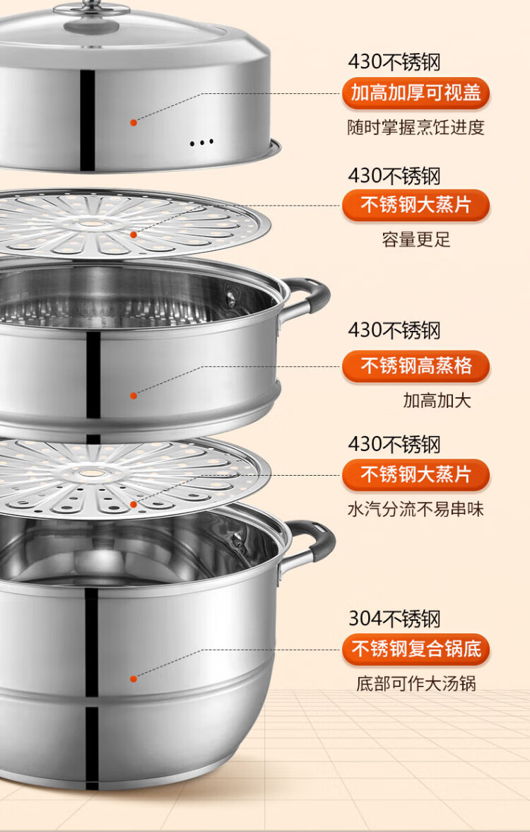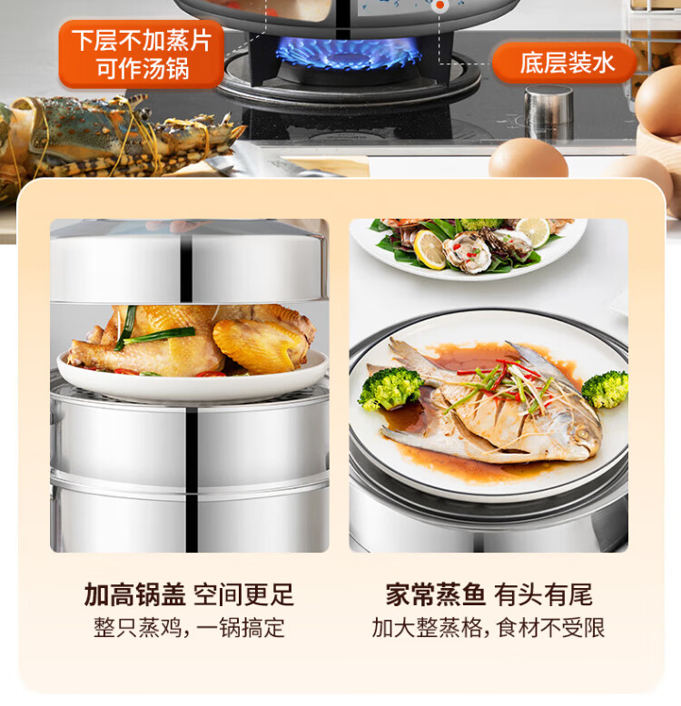ASD Steamer 304 Stainless Steel Three-layer Steamer Household Steaming and Cooking Integrated Soup Pot 34CM Heightened Steamer Q1