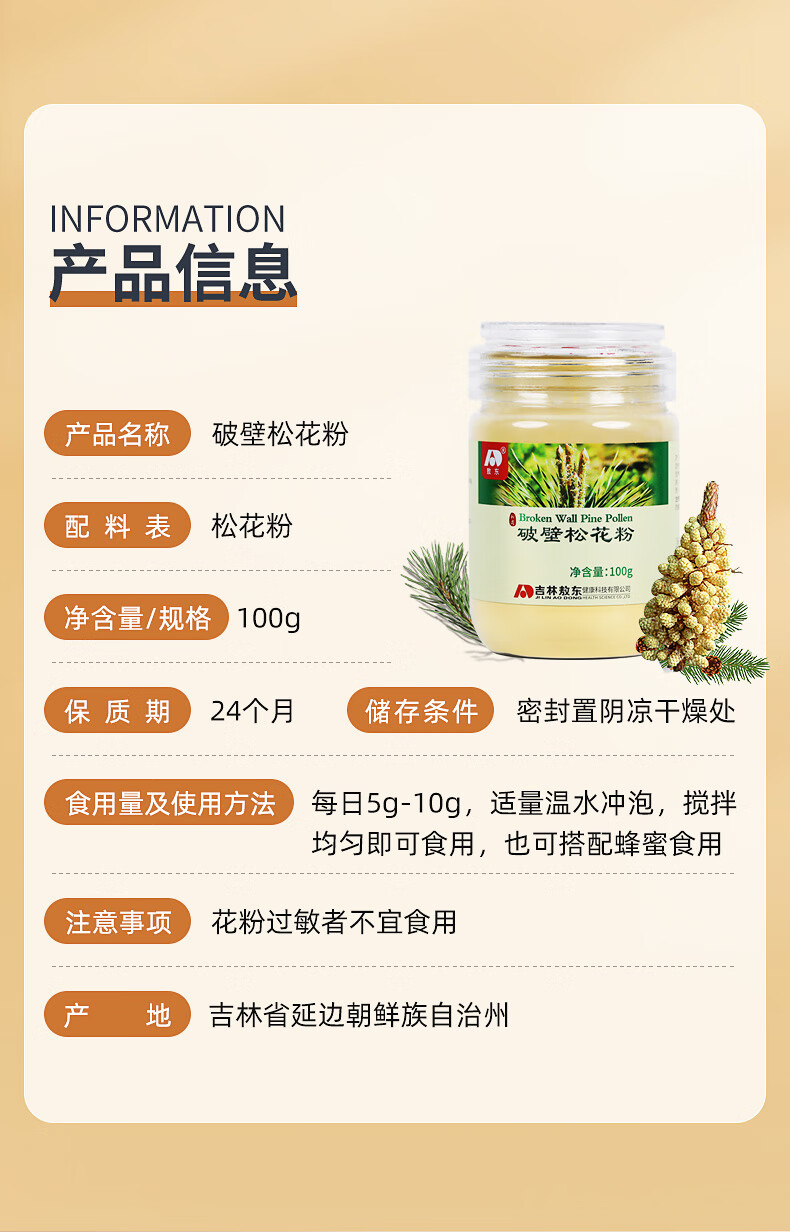 Aodong Changbai Mountain Top Road broken pine pollen 100g genuine nourishing nutritional products can be soaked in water for external use talcum powder