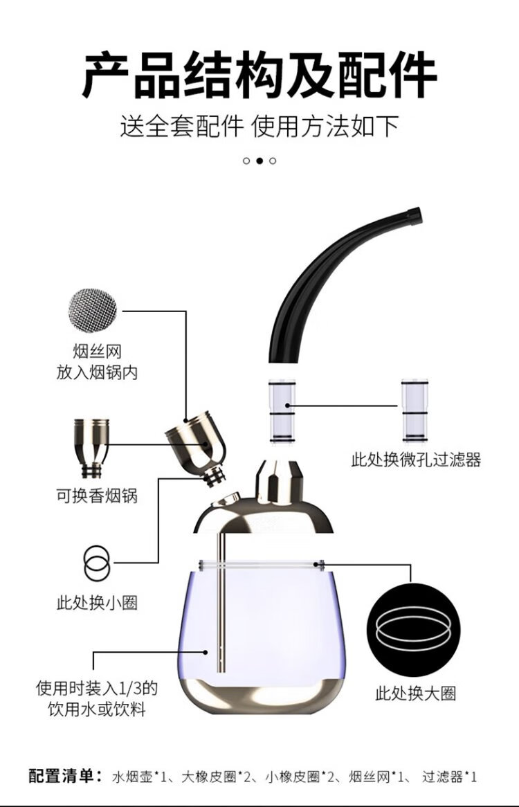 Genuine (ZOBO) hookah complete set of pipes, thick and thin wire three-use filter cigarette holder, circulating filter, hookah for men and women