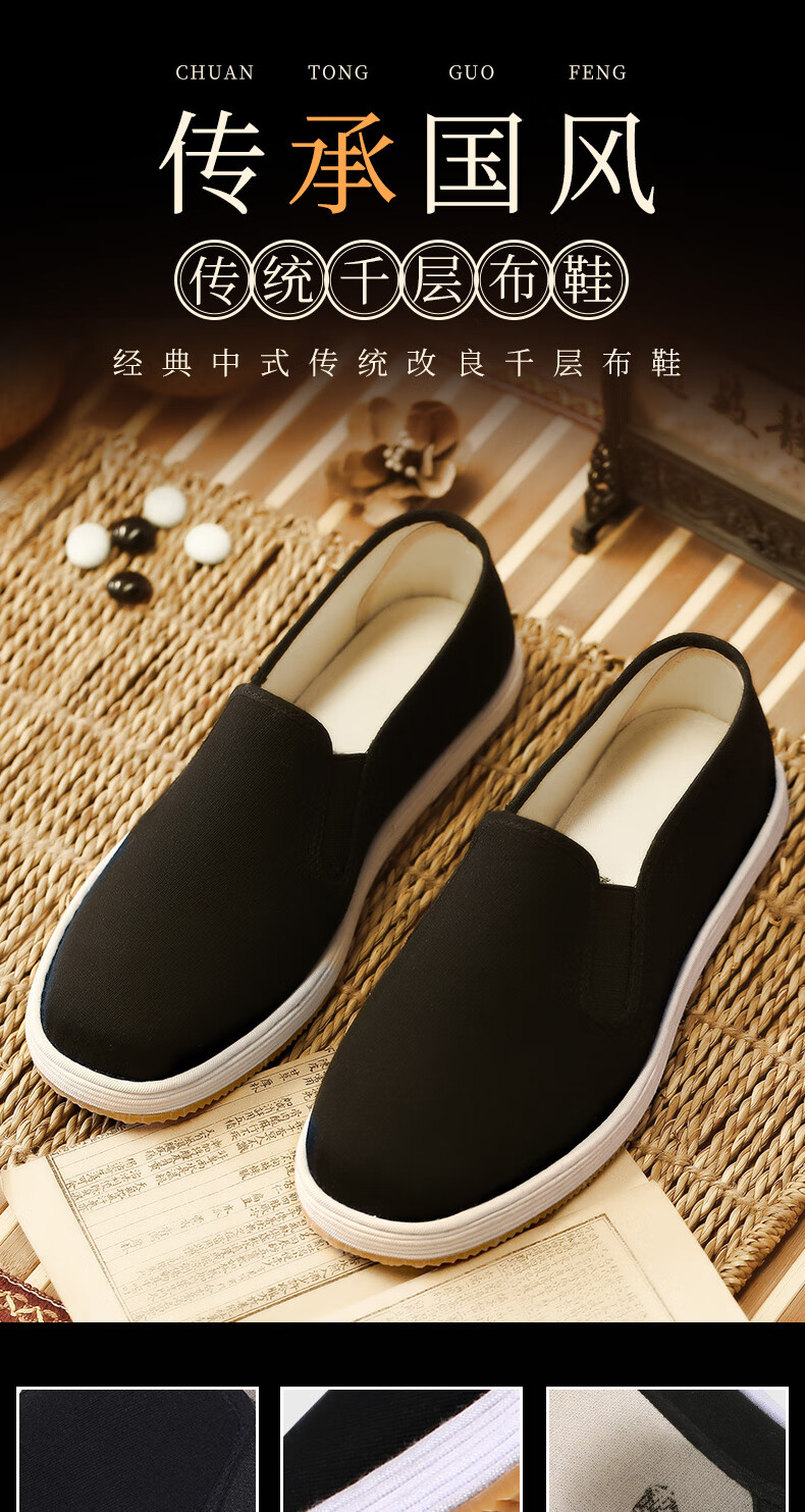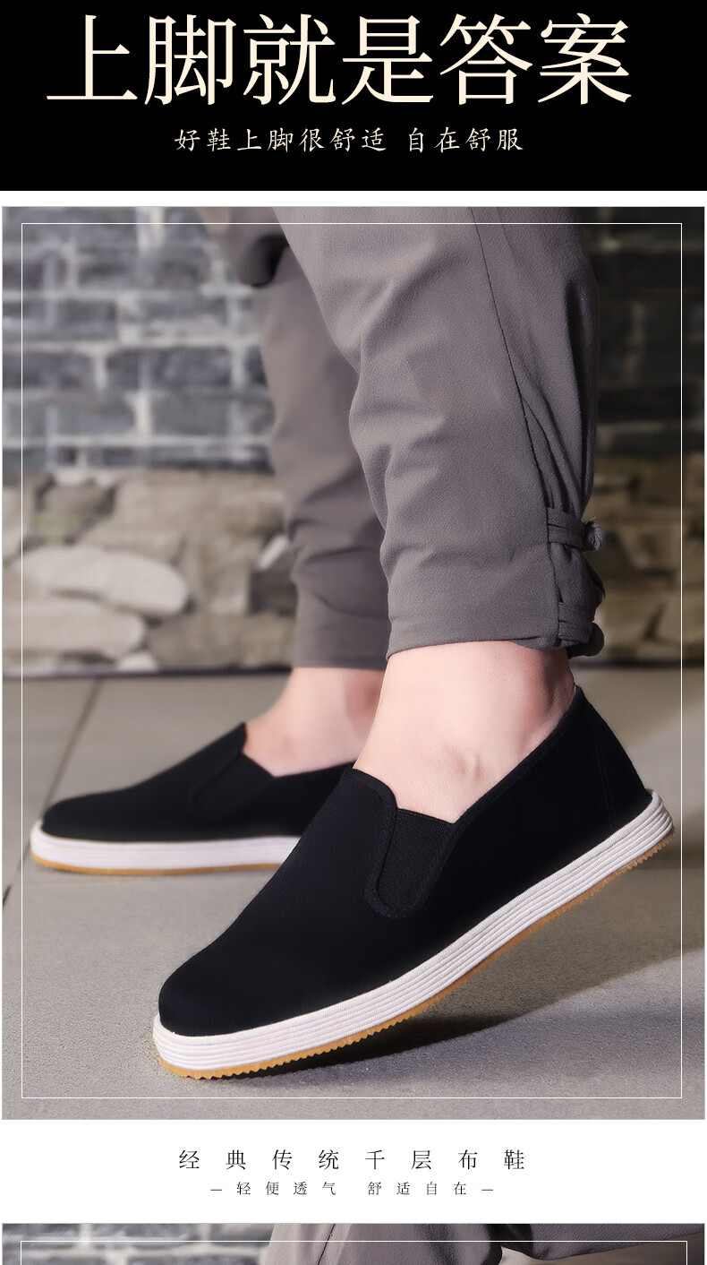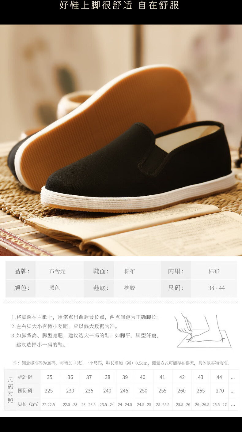 BUSHEYUAN one-legged casual old Beijing cloth shoes men's Chinese style traditional mille-layout black cloth shoes 9206 black 42