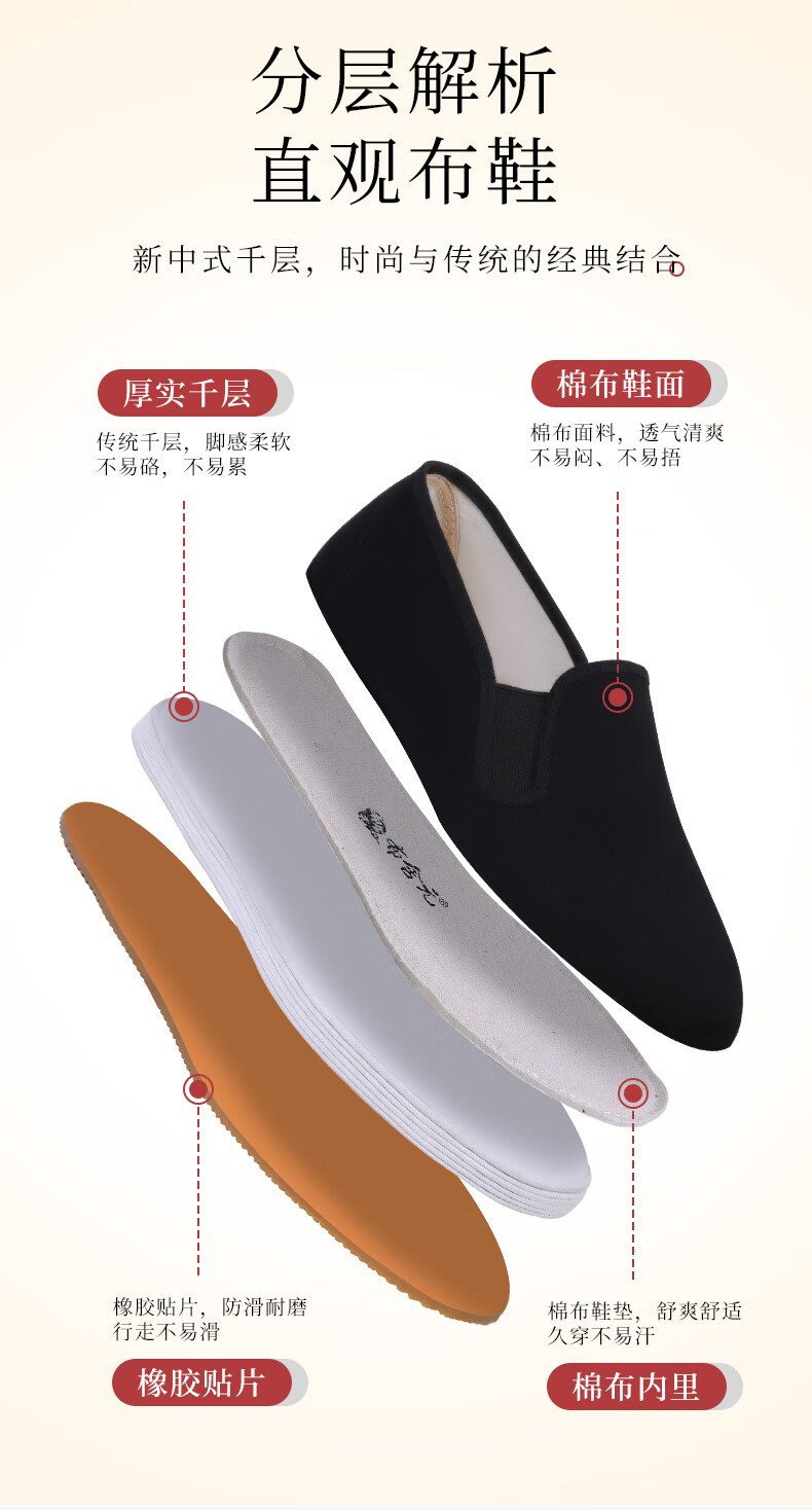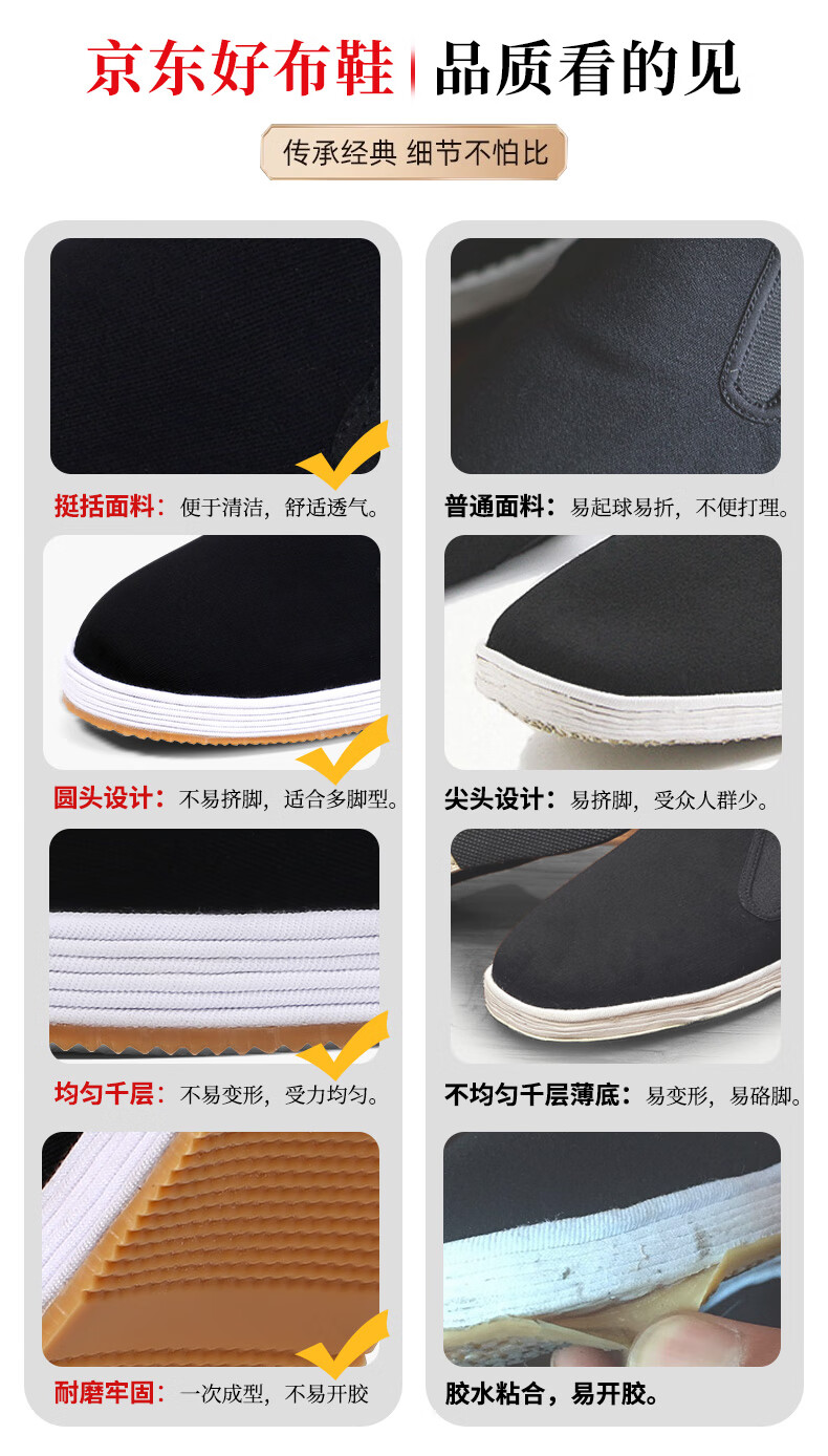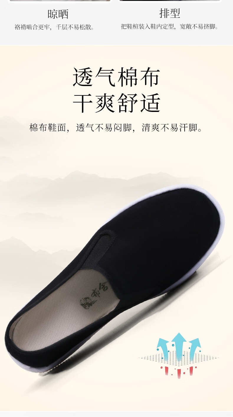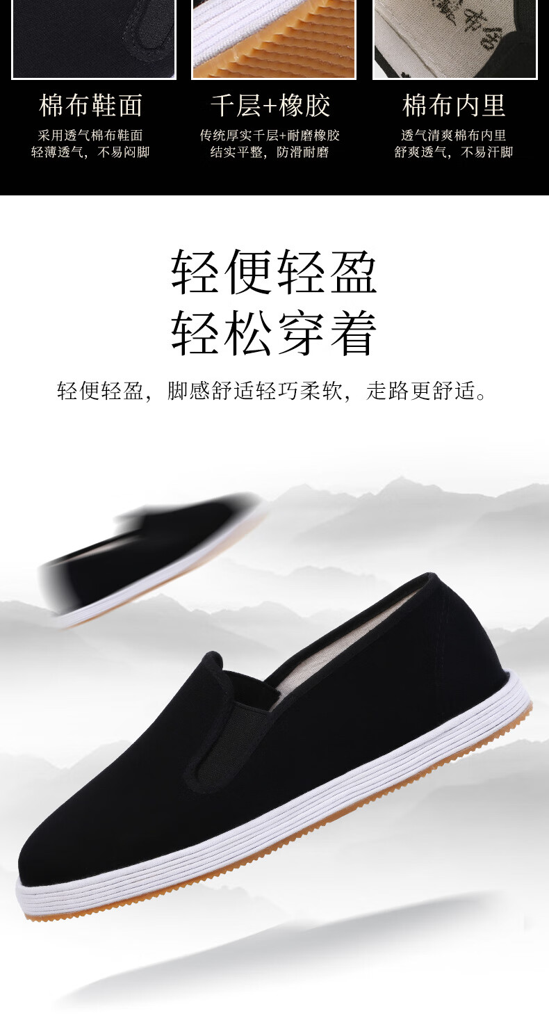 BUSHEYUAN one-legged casual old Beijing cloth shoes men's Chinese style traditional mille-layout black cloth shoes 9206 black 42