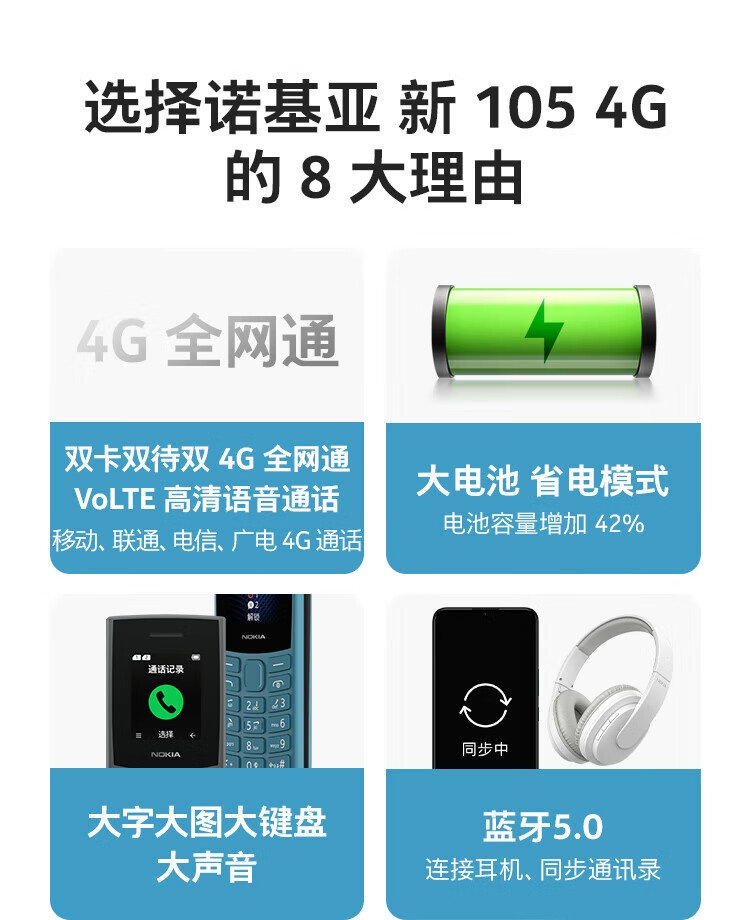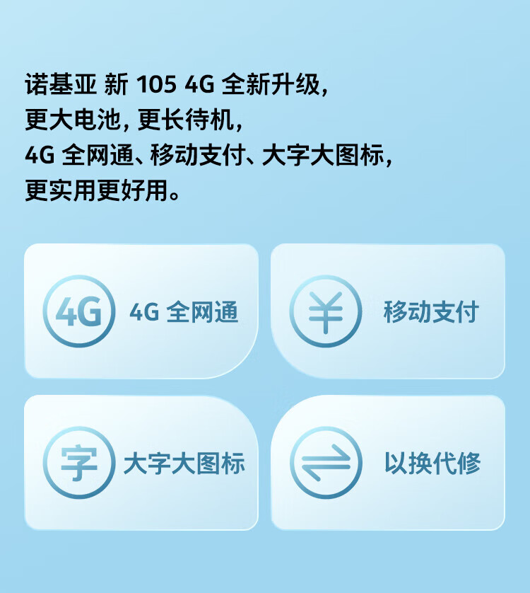 NOKIA New 105 4G Full Netcom Mobile Unicom Telecom Elderly Button Straight Board Student and Child Backup Network Phone Dual SIM Dual Standby Black
