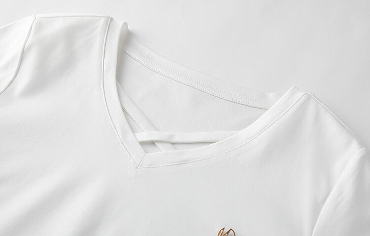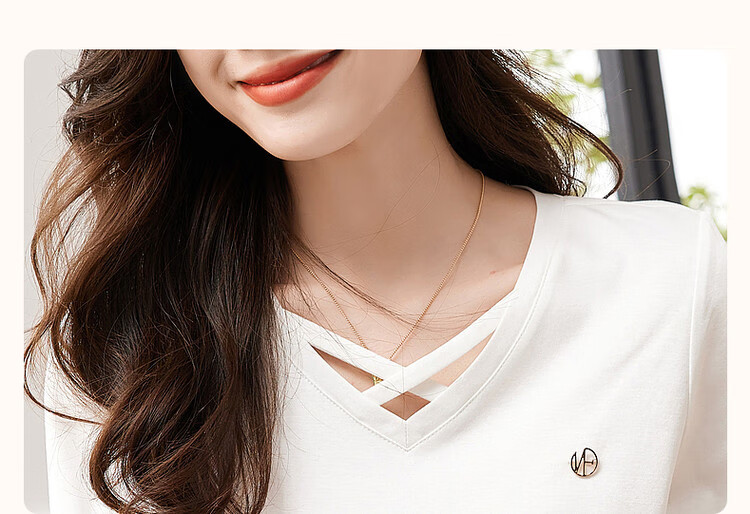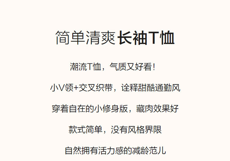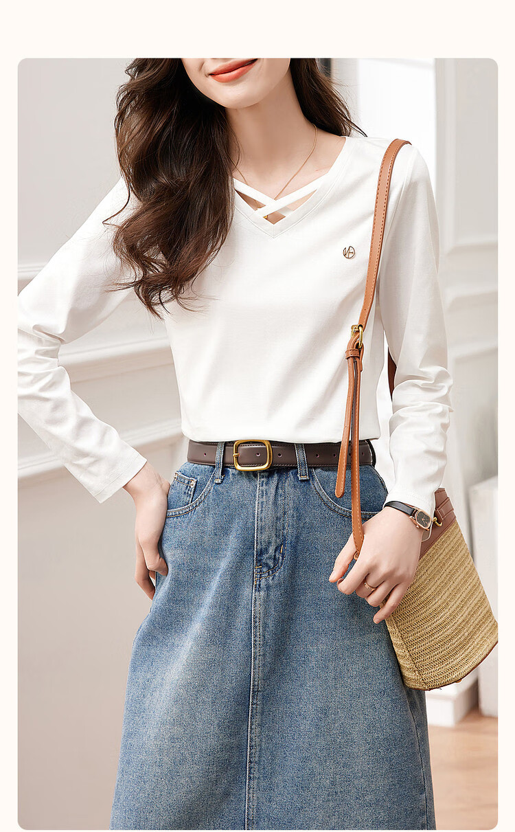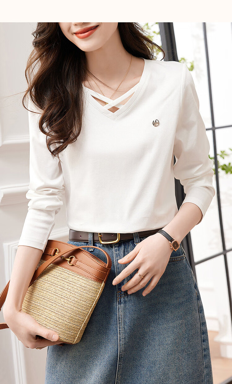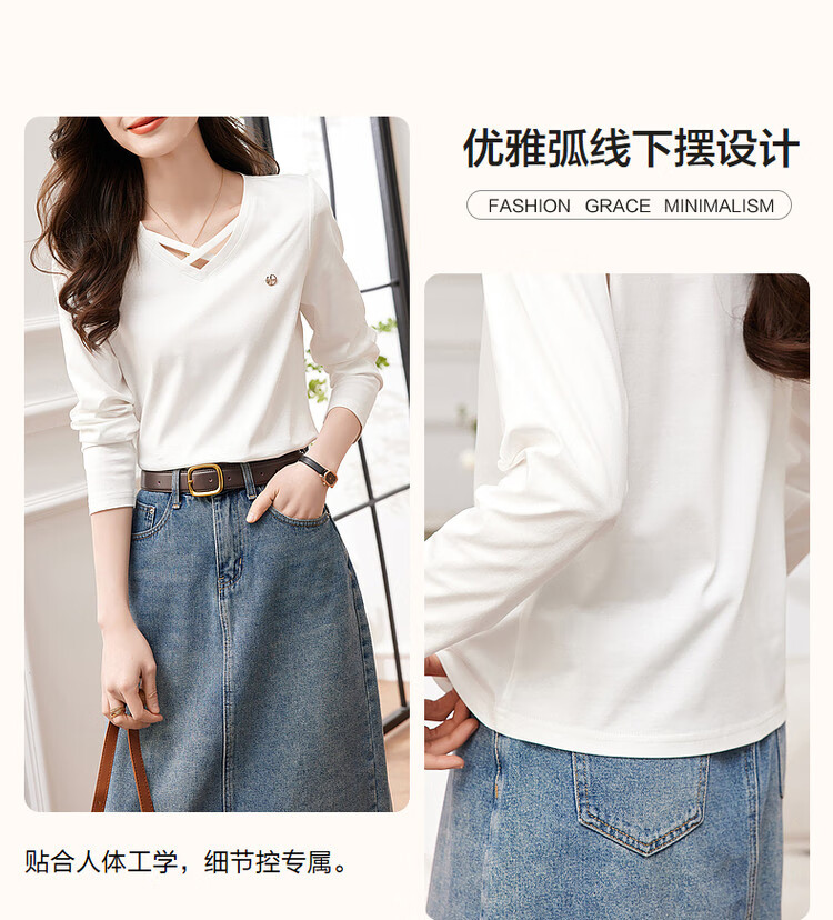 Demana (dme) temperament cotton polyester knitted women's T-shirt spring and autumn commuting v-neck micro-elastic long-sleeved T-shirt for women
