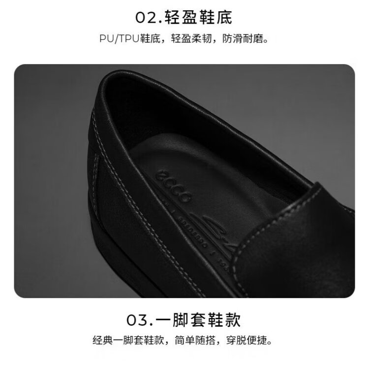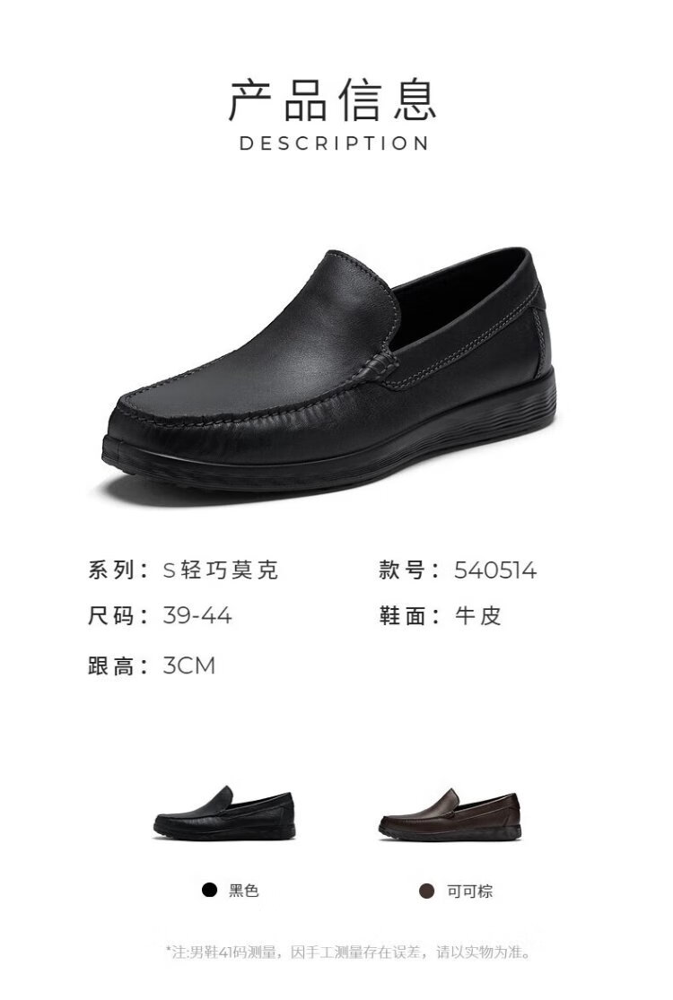 ECCO Loafers Men's Moccasin Casual Leather Shoes Lightweight Mok 540514 01001 Black 41