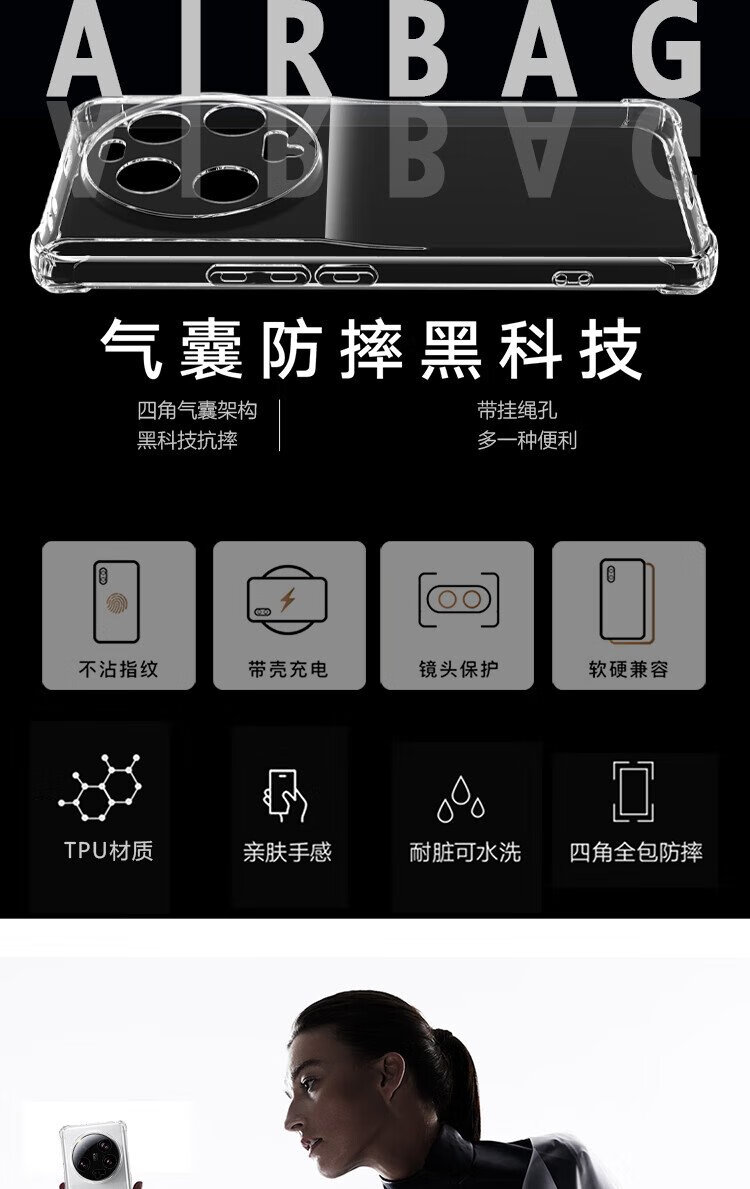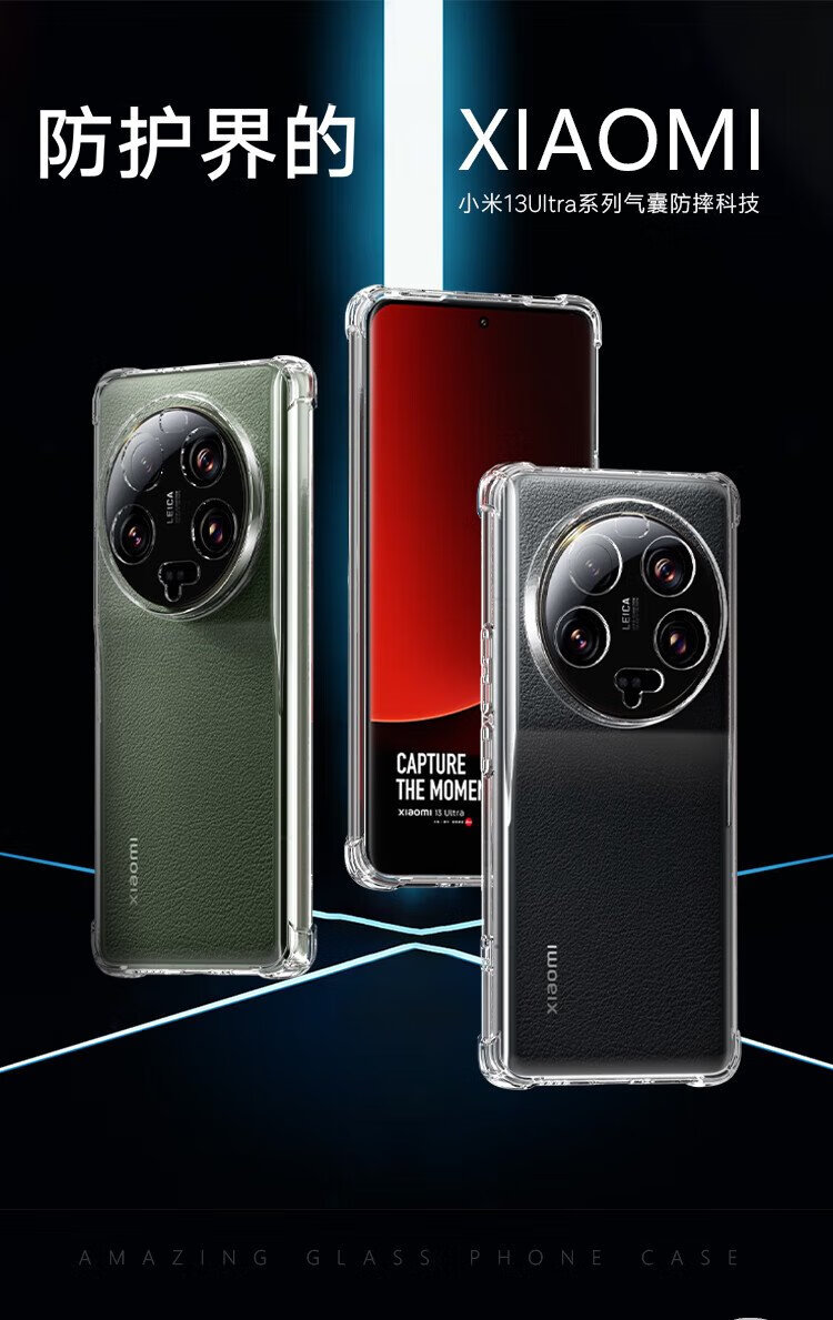 ESCASE Xiaomi 13Ultra mobile phone case magnetic protective cover full air bag anti-fall soft shell TPU (with sling hole) ES-iP9 series upgraded version transparent white + magnetic ring
