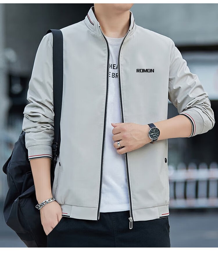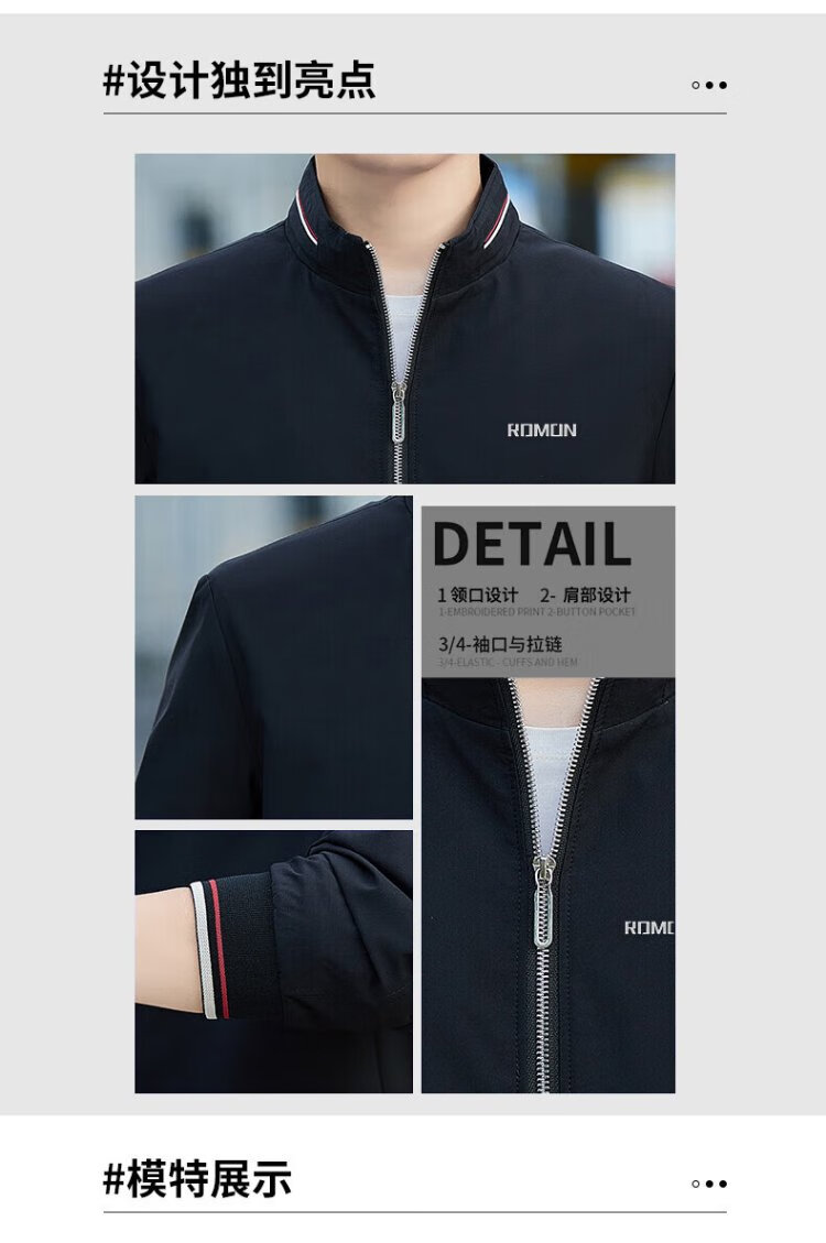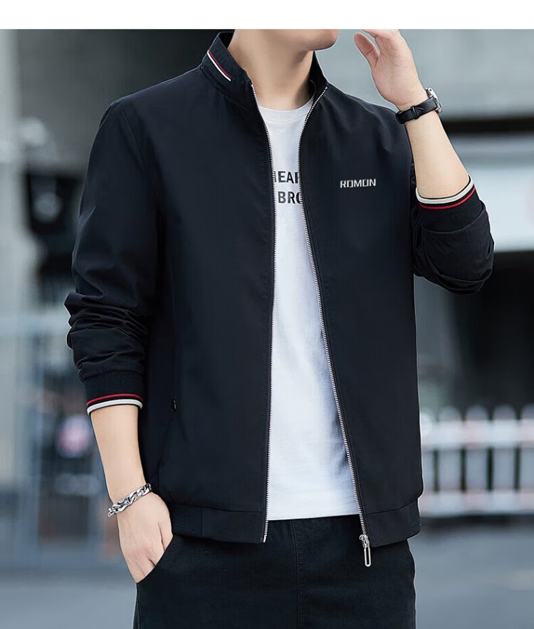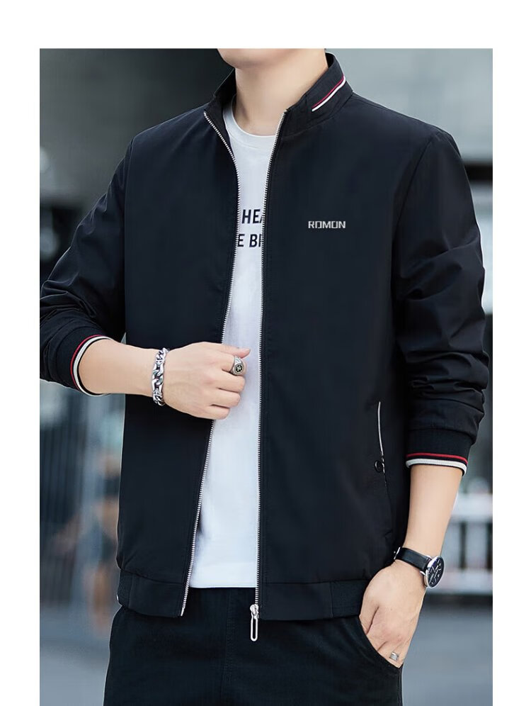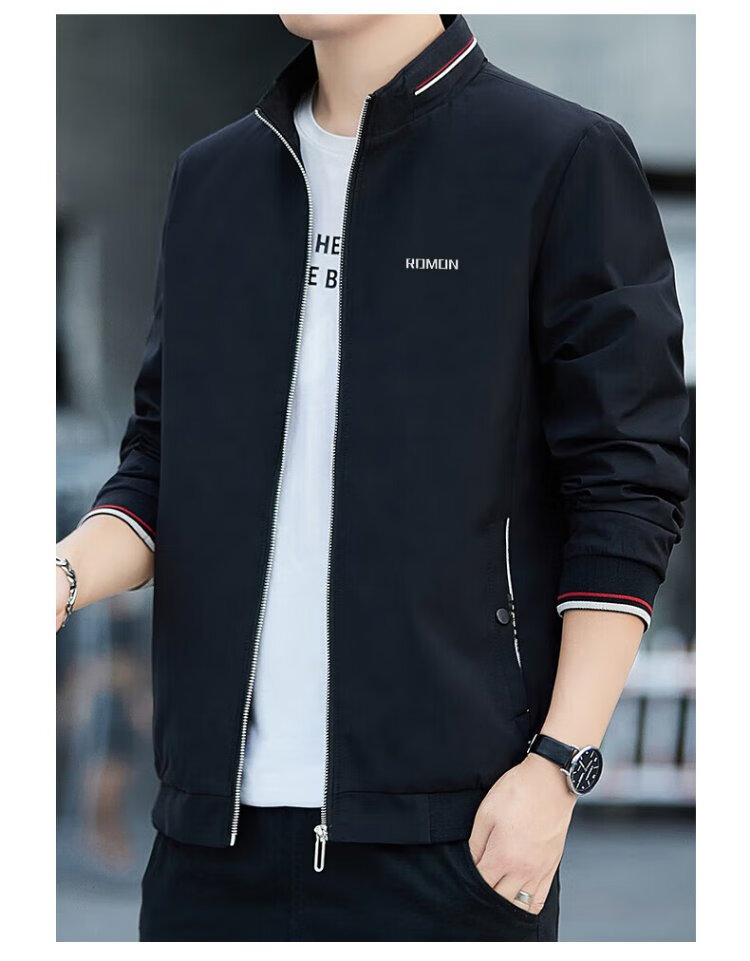 ROMON Coat Jacket Men's Trendy Fashion Business Casual Baseball Uniform Stand Collar Top Men's KJ11 Black XL