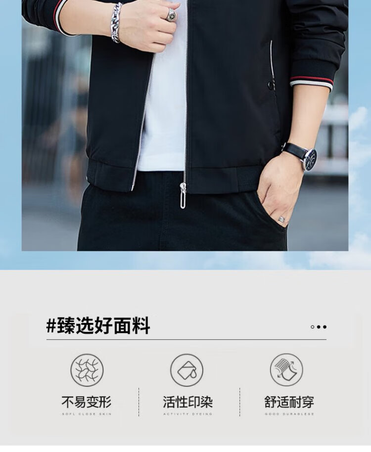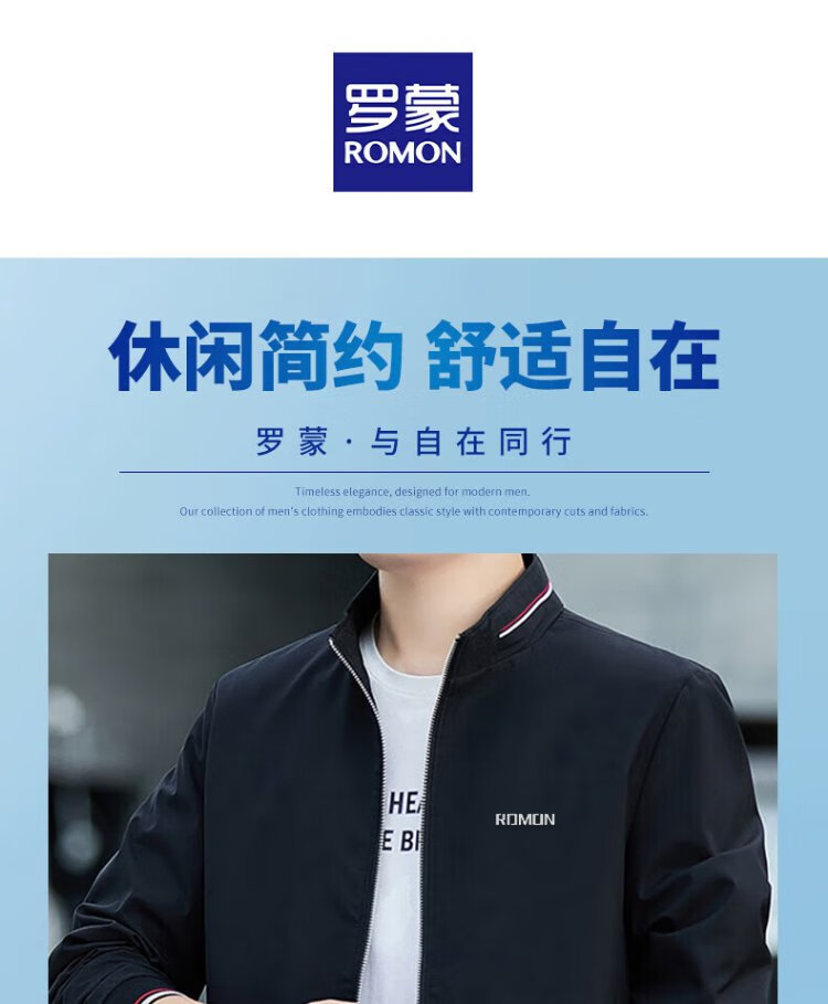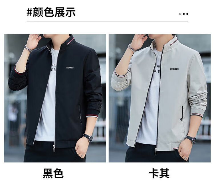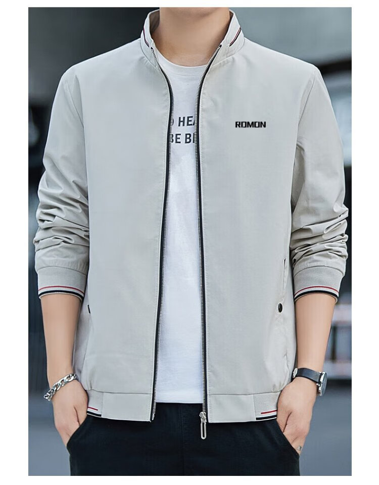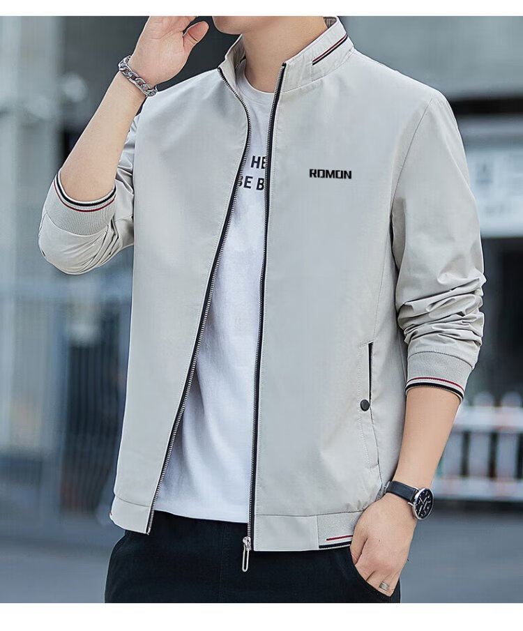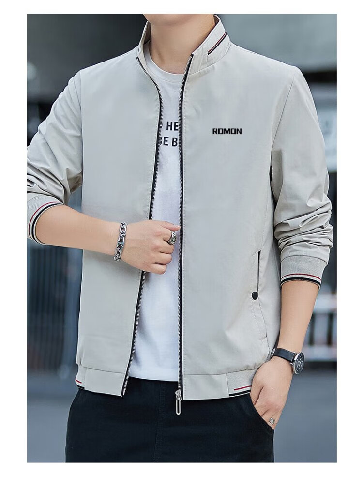 ROMON Coat Jacket Men's Trendy Fashion Business Casual Baseball Uniform Stand Collar Top Men's KJ11 Black XL