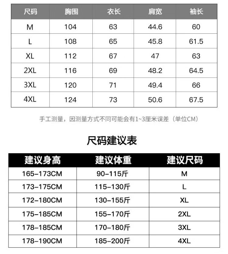 China (cm) 165 / 88-90 170 / 96-98 175 / 108-110 180 / 118-122 185 / 126-130