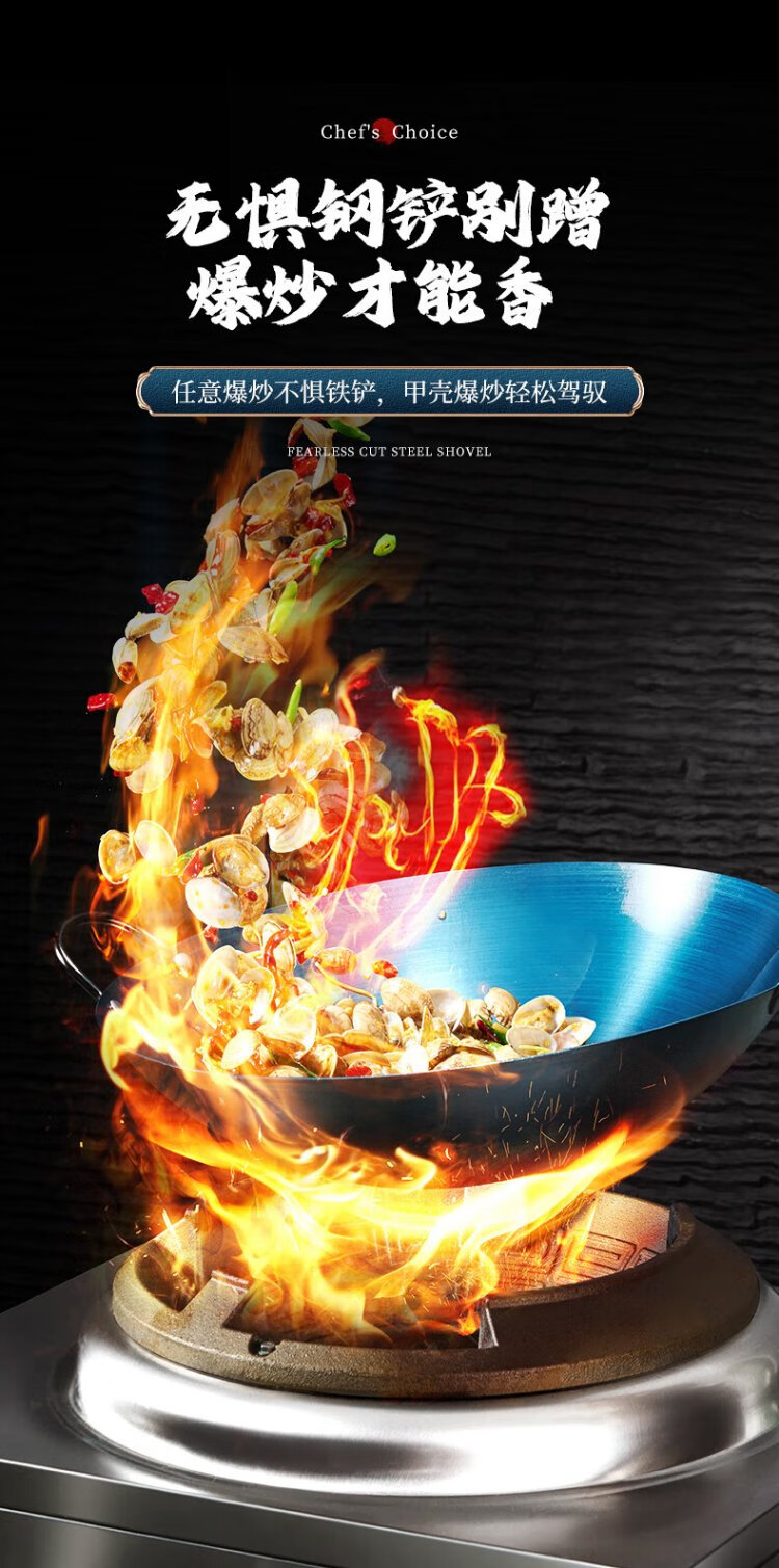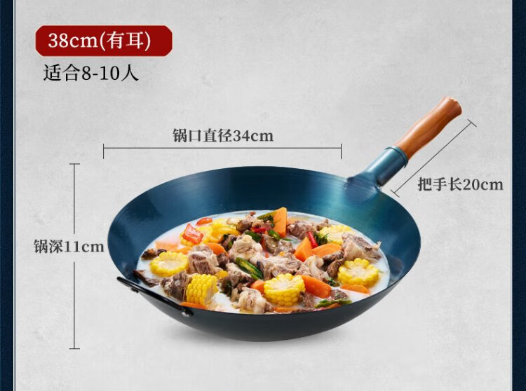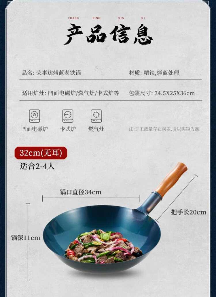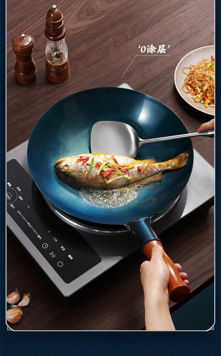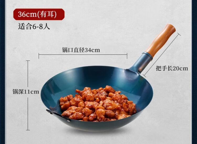 Royalstar Zhangqiu hand-forged iron pot round bottom old-fashioned wok uncoated non-stick wok gas stove without lid 32cm