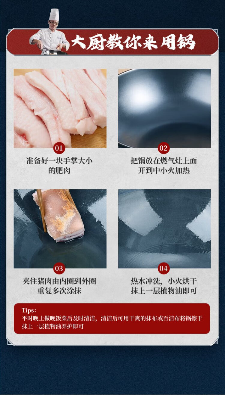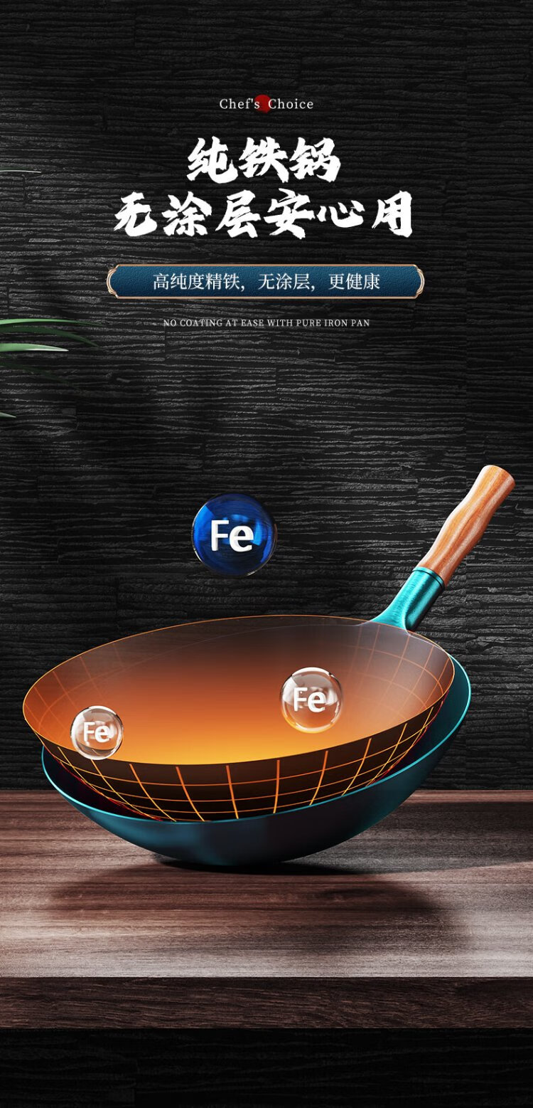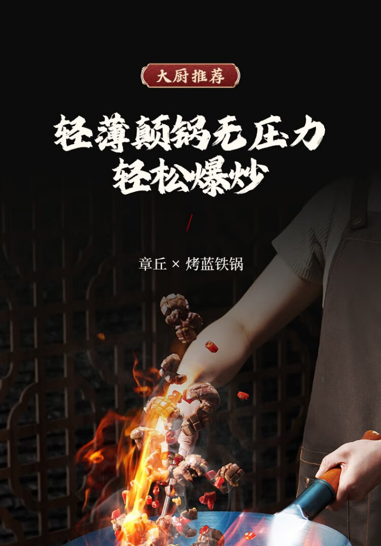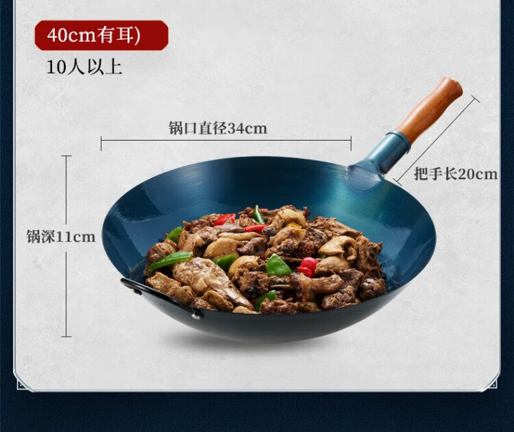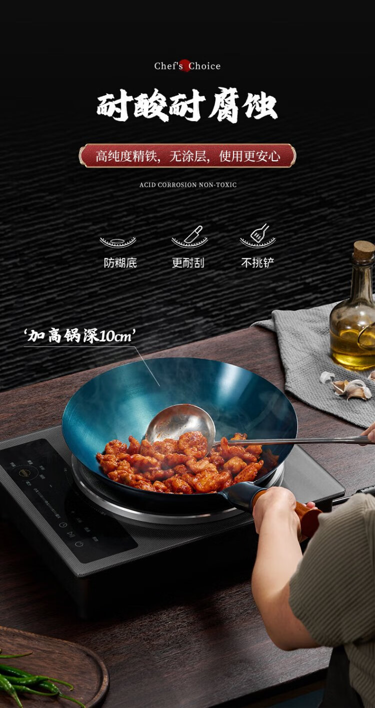 Royalstar Zhangqiu hand-forged iron pot round bottom old-fashioned wok uncoated non-stick wok gas stove without lid 32cm