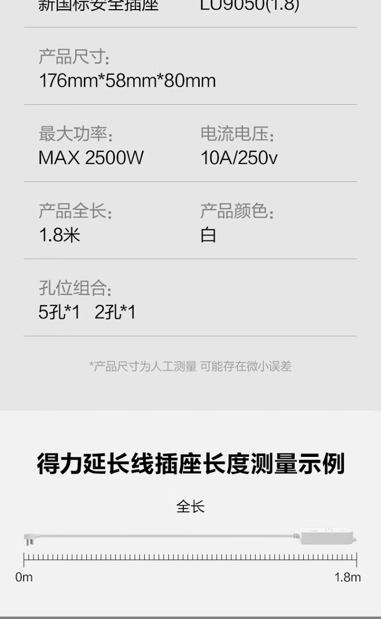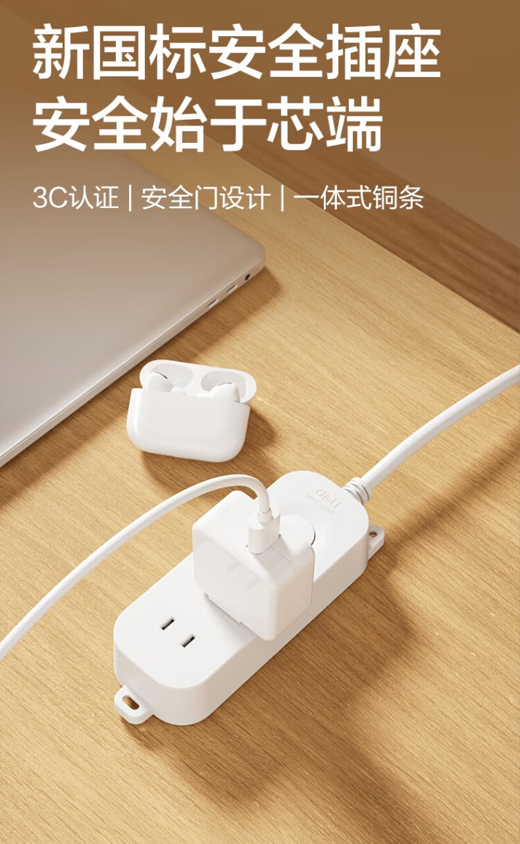 Deli (deli) 3C certified safety socket plug strip/socket strip/socket strip/socket strip/socket strip/pull strip extension cord master control switch 1+1 hole 1.8 meters LU9050 (1.8)