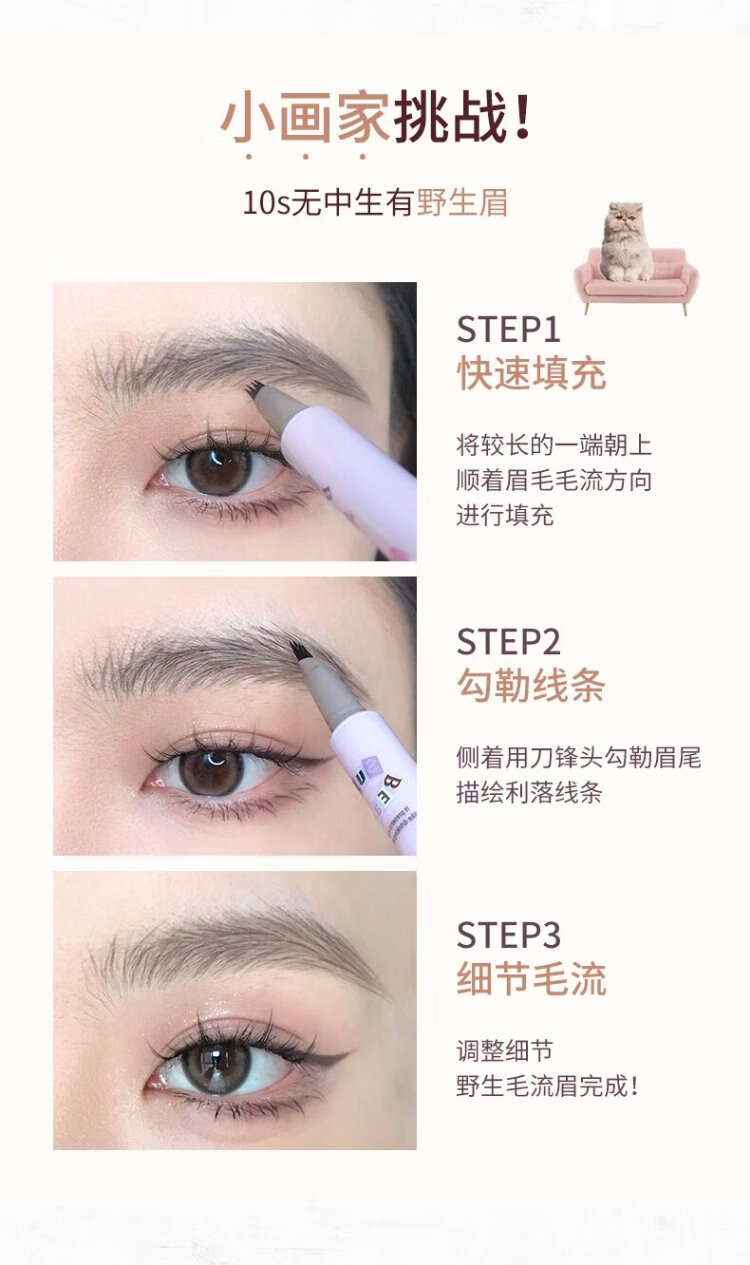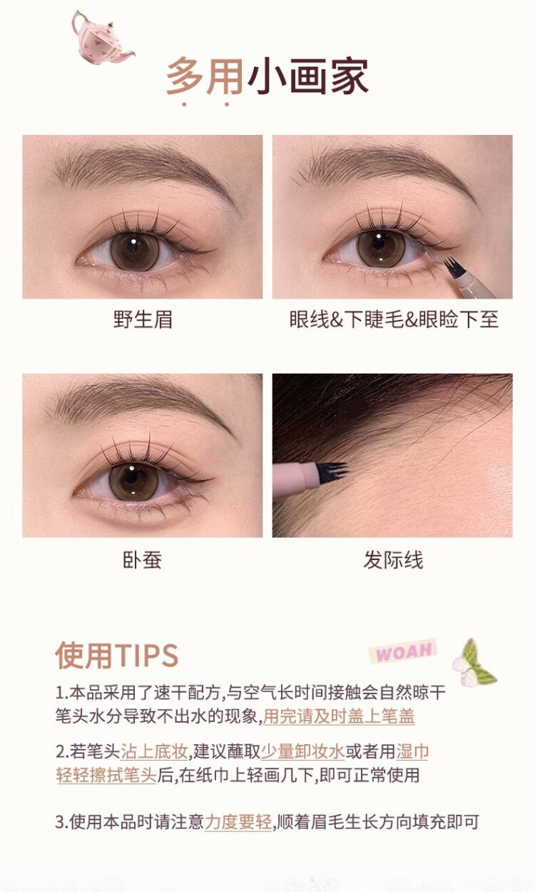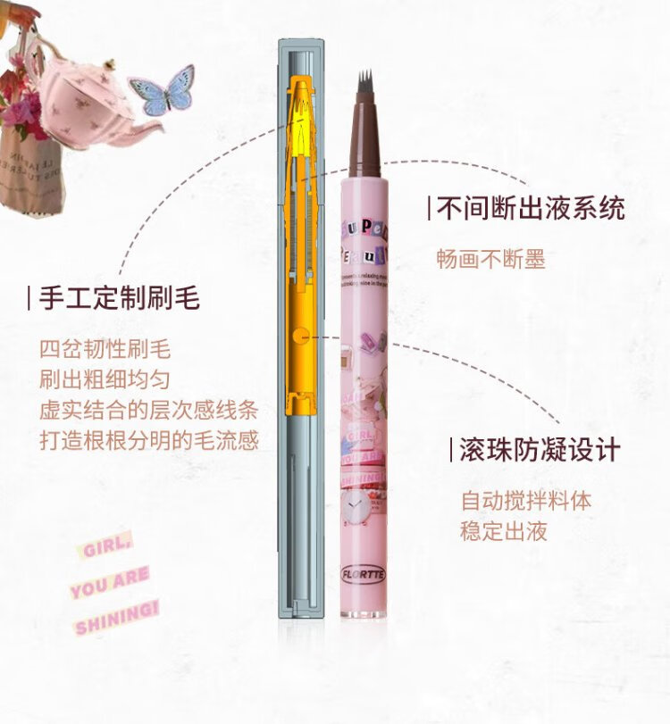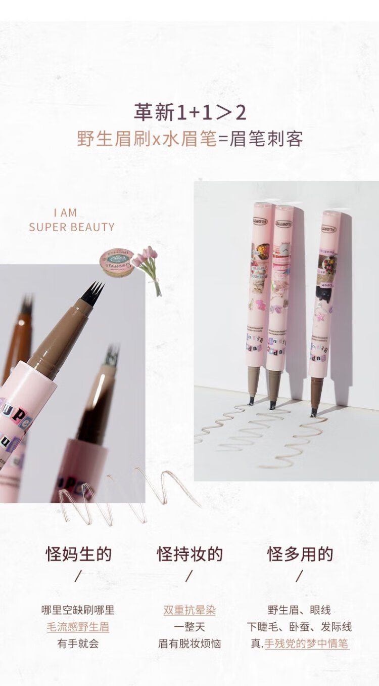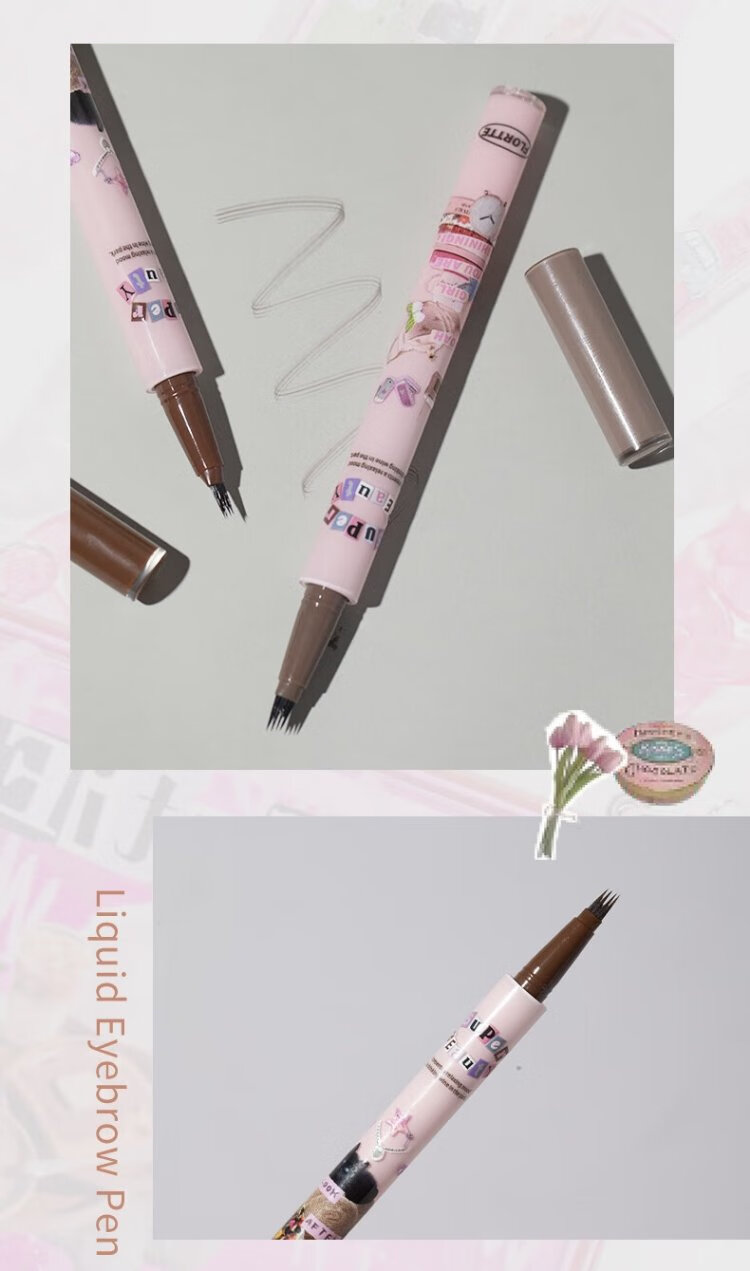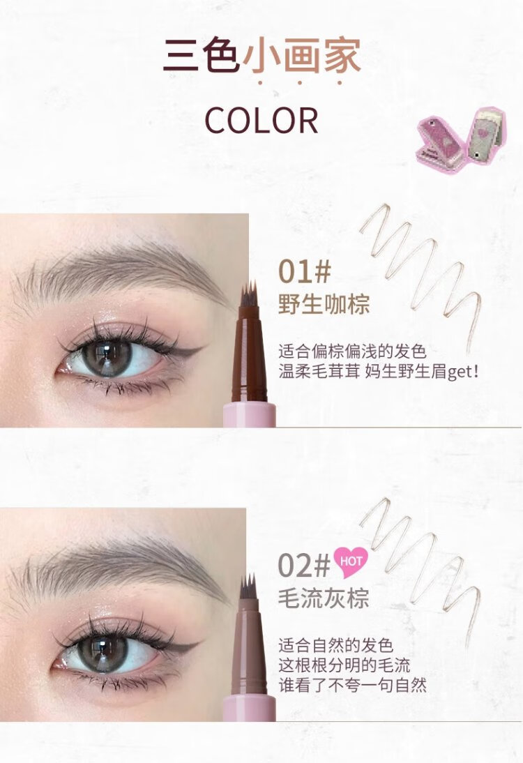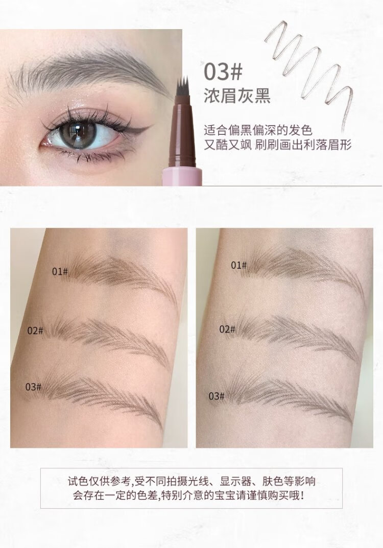 FLORTTE Four-Pronged Blade Eyebrow Pencil Waterproof, Sweat-proof, Long-lasting, Non-fading Wild Eyebrow 02# Hairy Gray Brown