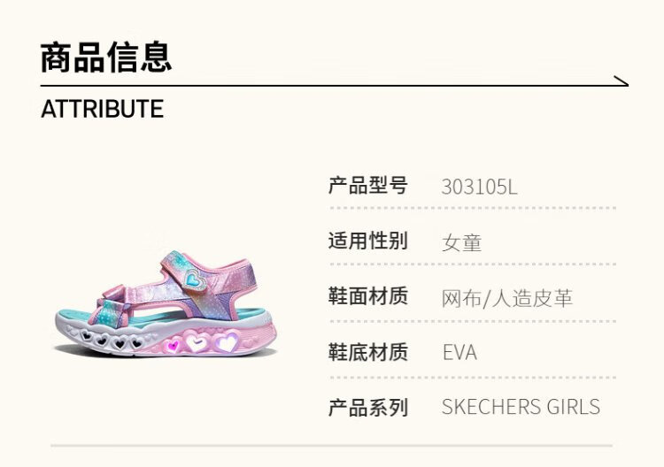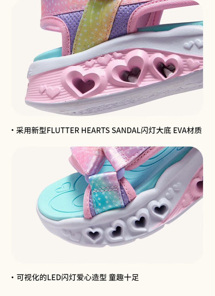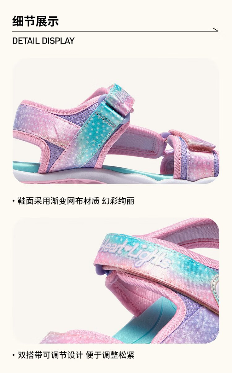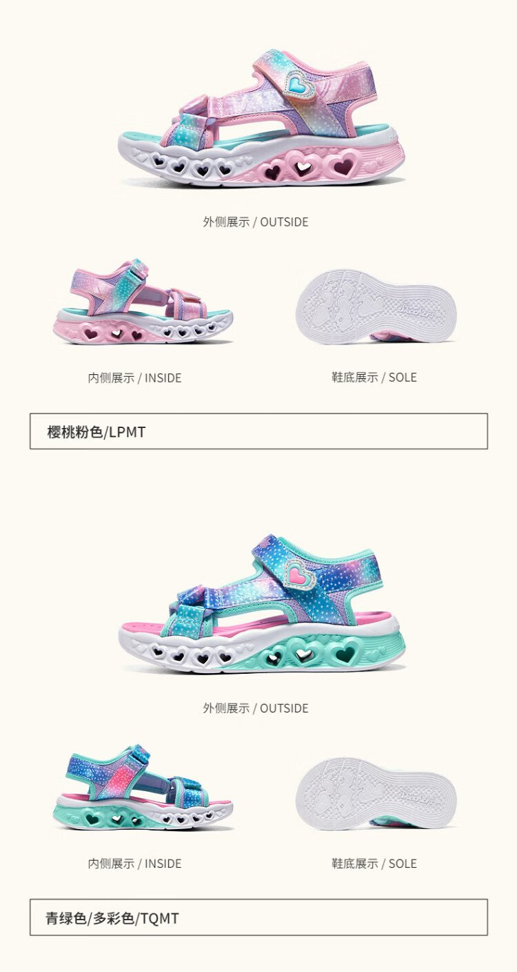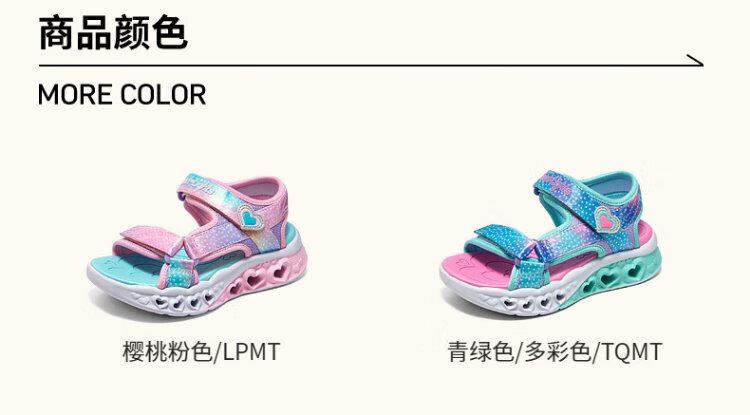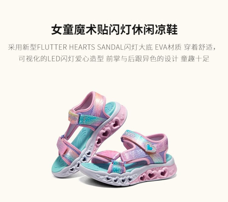 Skechers Skechers girls sandals summer Velcro flash children's shoes soft sole big children's casual beach shoes 303105L