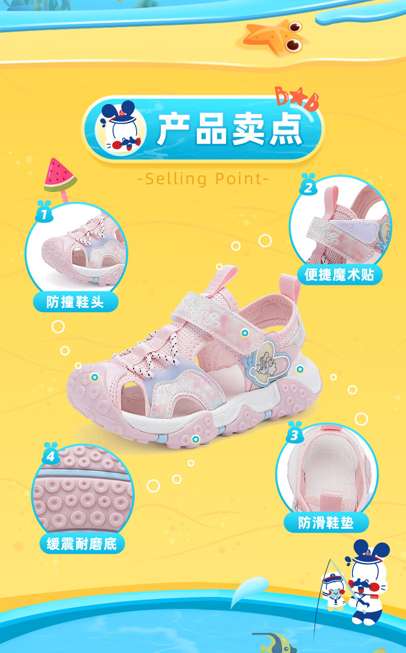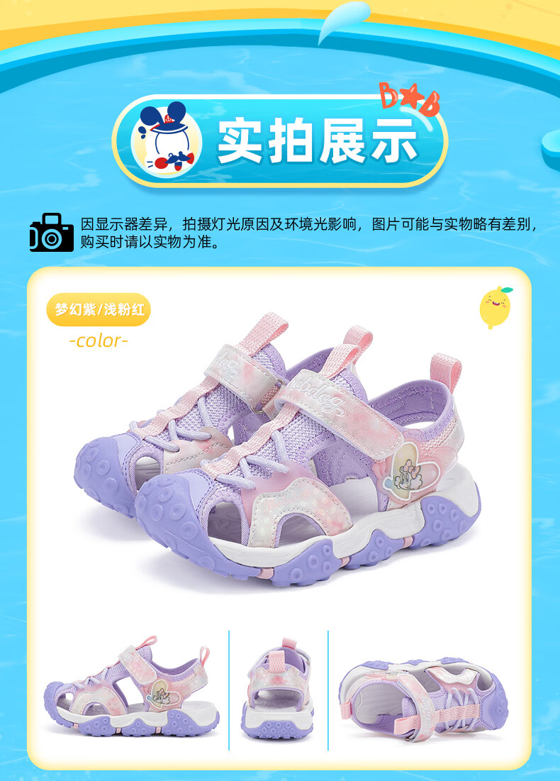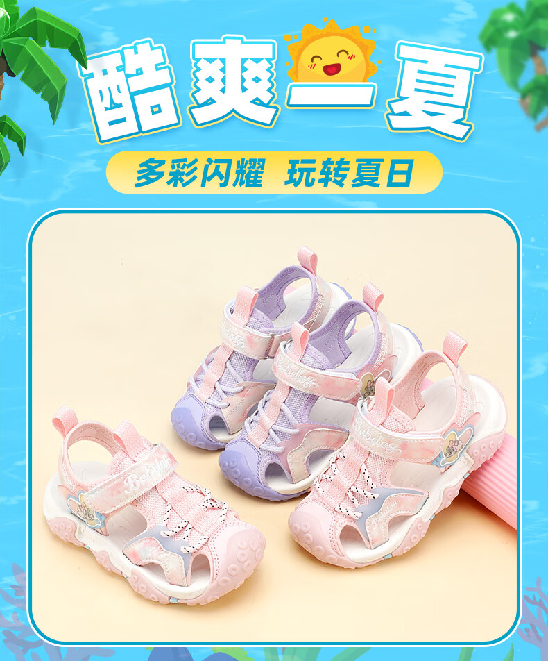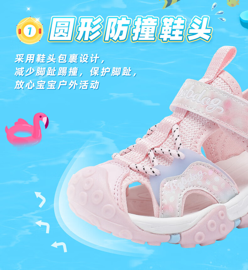 BOBDOG children's shoes soft sole toe cap children's shoes summer children's sandals for women 105532058 light pink 25