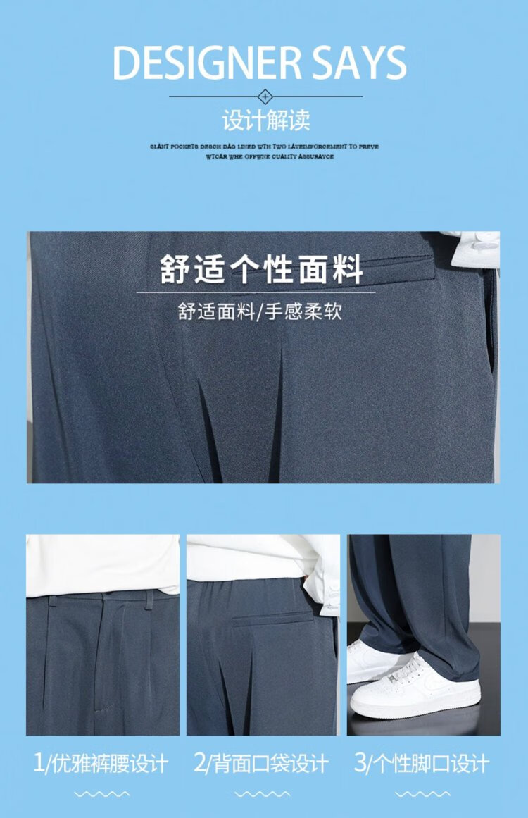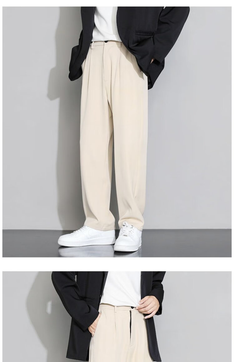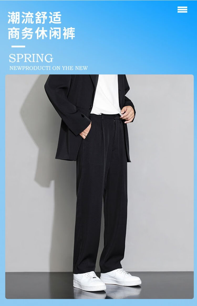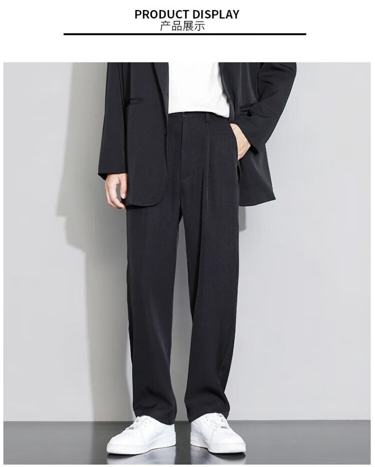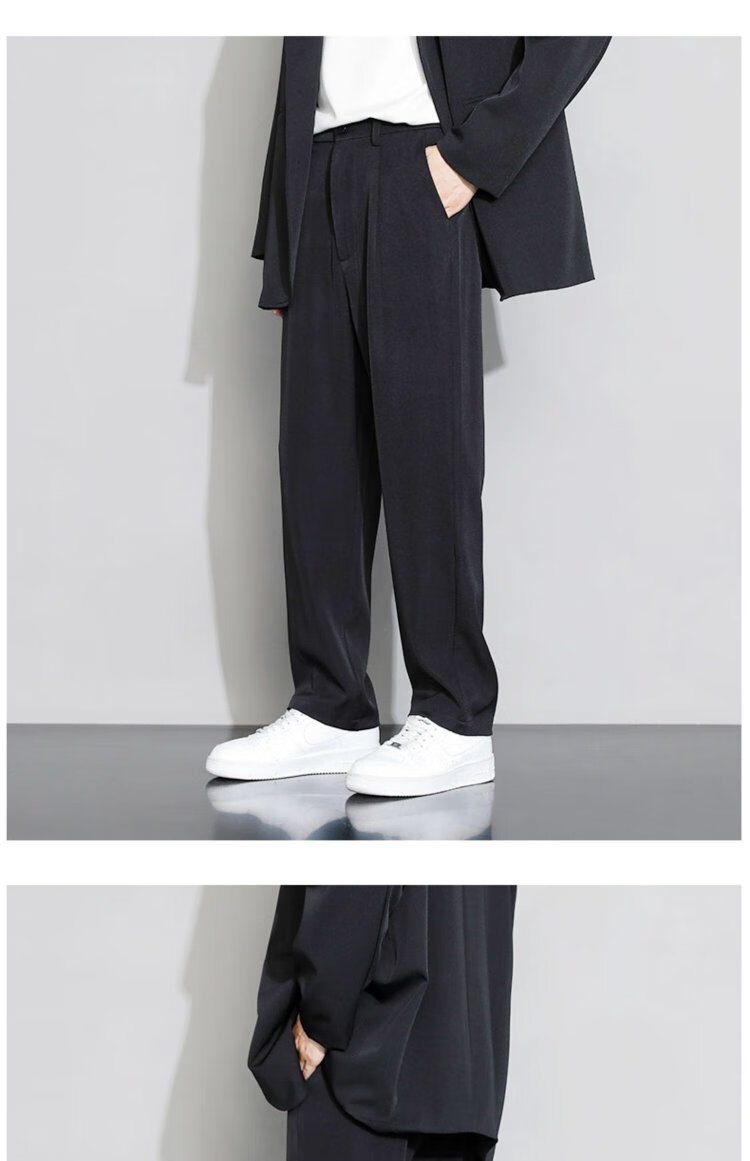 Dingfengbaoluo casual pants men's autumn and winter loose straight long pants trendy sports wide-leg suit pants 819 black XL
