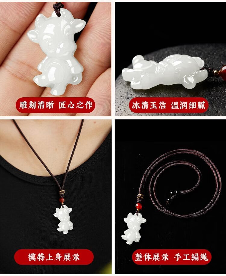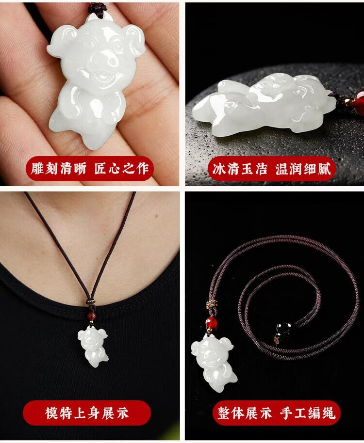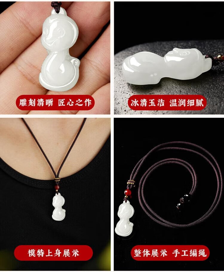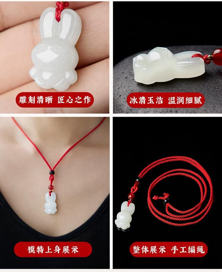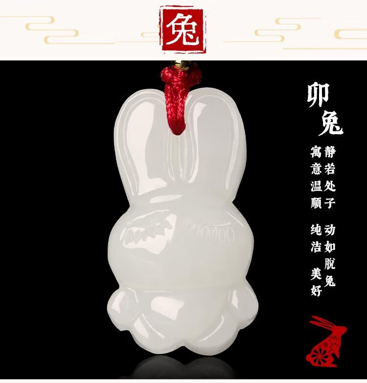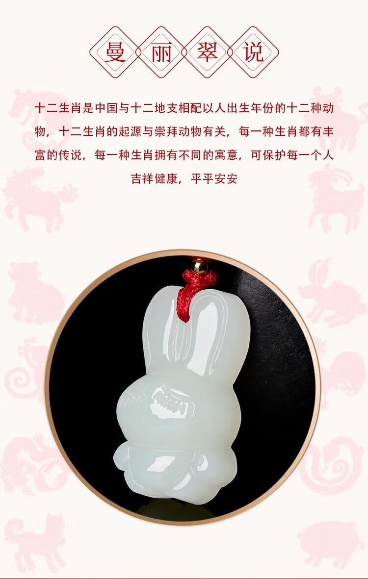 Manli Cui Hetian white jade zodiac rabbit pendant national fashion jade pendant necklace little rabbit children's model with certificate