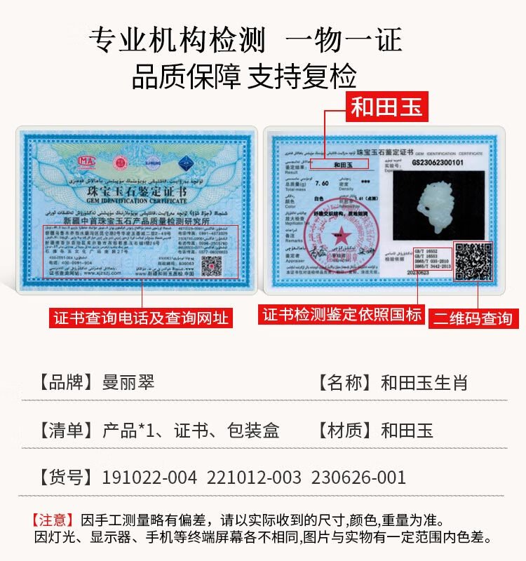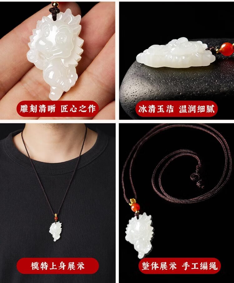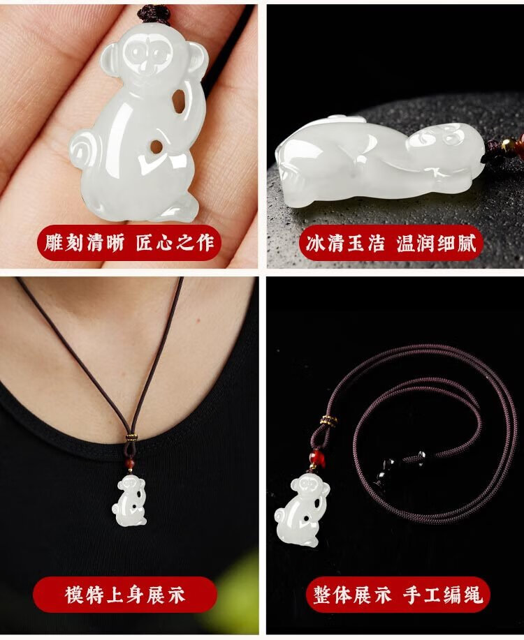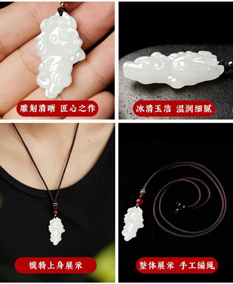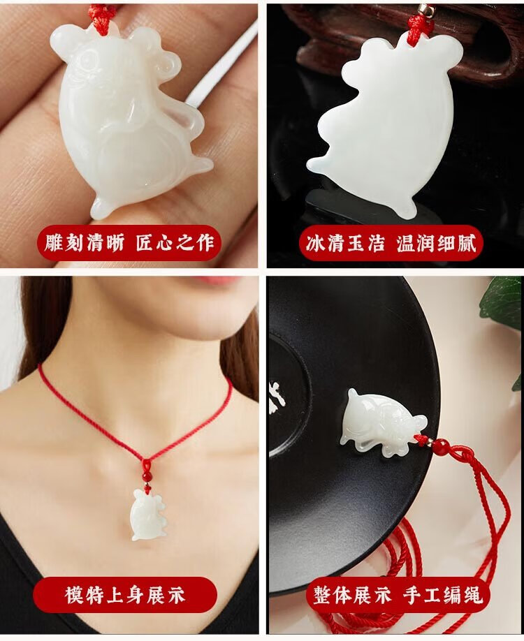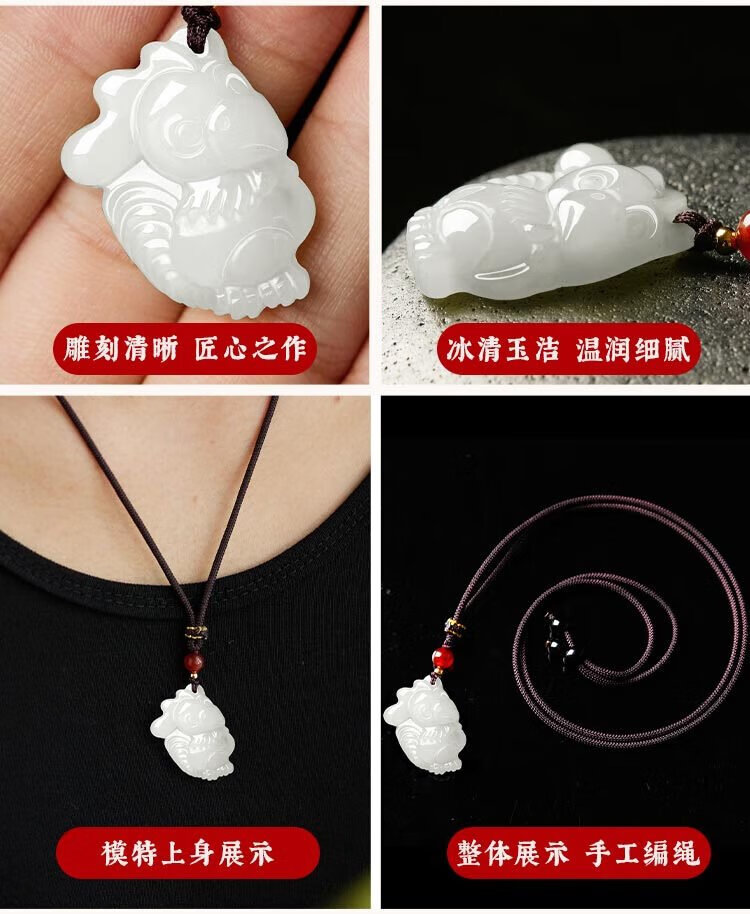 Manli Cui Hetian white jade zodiac rabbit pendant national fashion jade pendant necklace little rabbit children's model with certificate