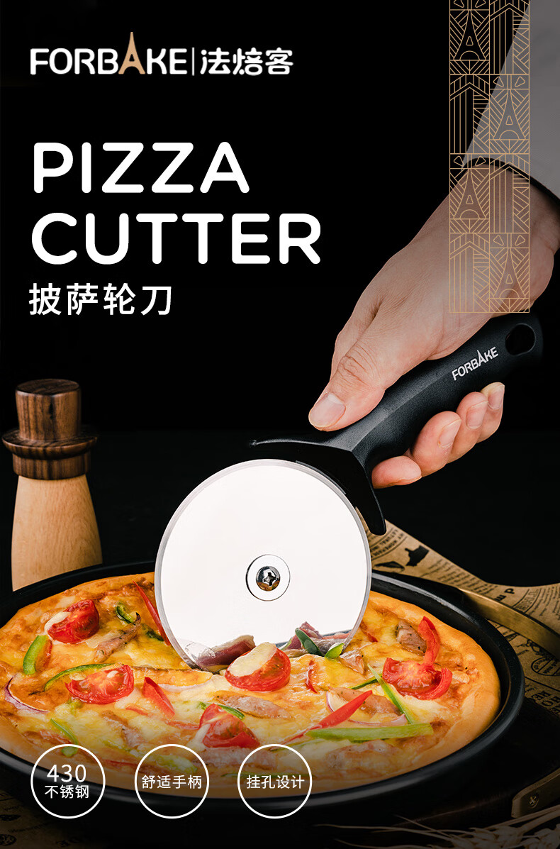 FOR BAKE Bread Knife Pizza Wheel Knife Shortening Wheel Pizza Hob Cutter Pizza Pizza Knife Stainless Steel Black