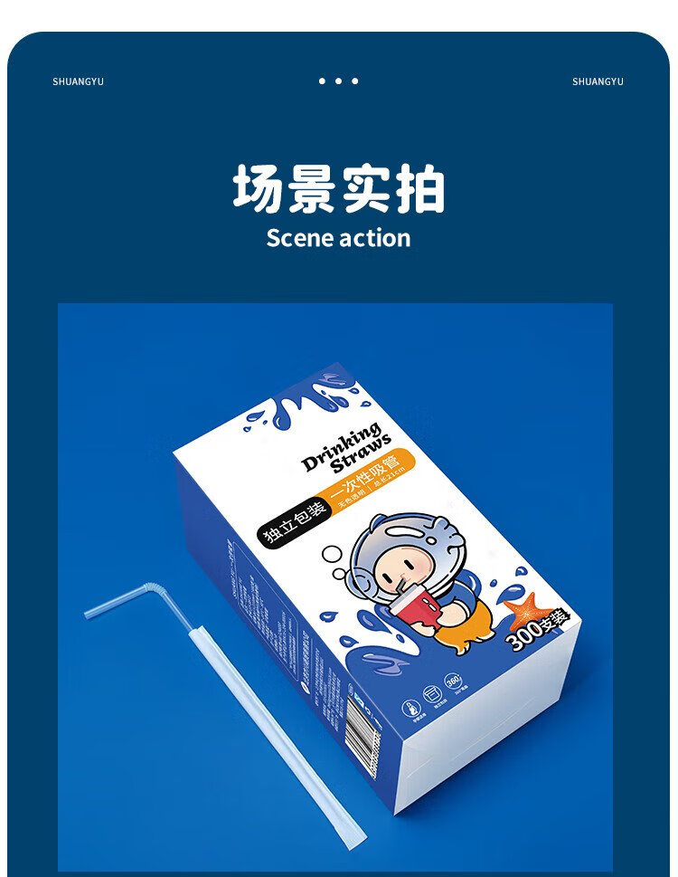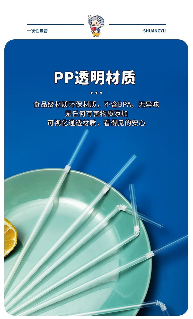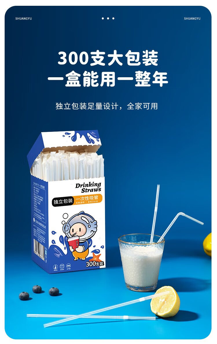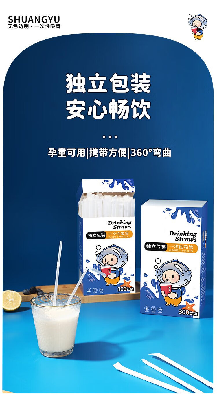 SHUANG YU disposable straws 300 individually packed transparent bendable plastic straws food-grade straws for pregnant women and children