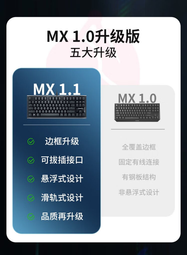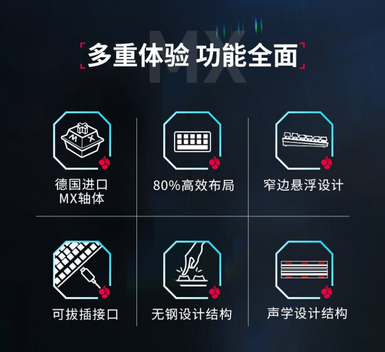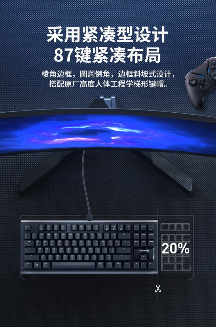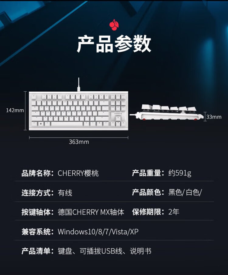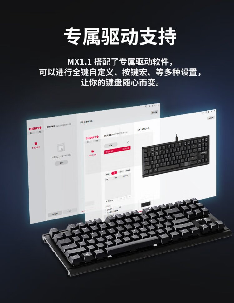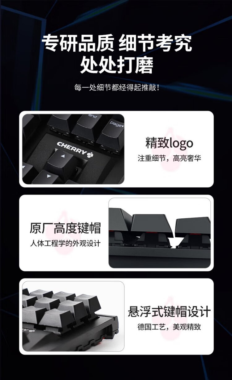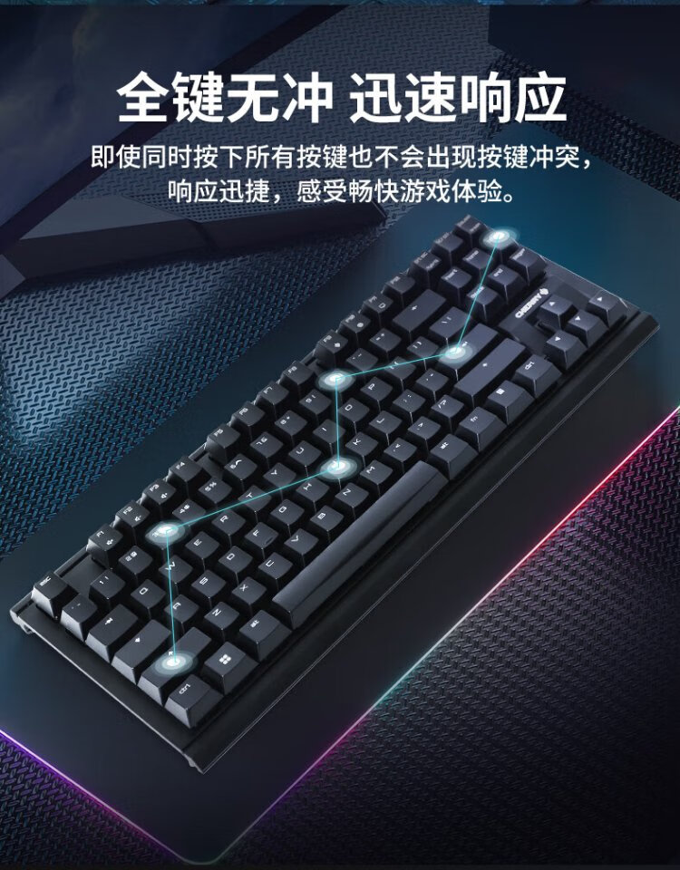 CHERRY Cherry MX1.1 mechanical keyboard G80-3910 gaming keyboard suspended steel-free structure 87-key wired keyboard computer keyboard black red axis