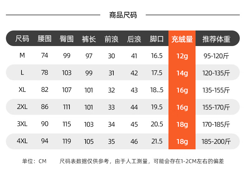 Outseam (cm) 99 cm 101.5 cm 104 cm 106.5 cm 109 cm