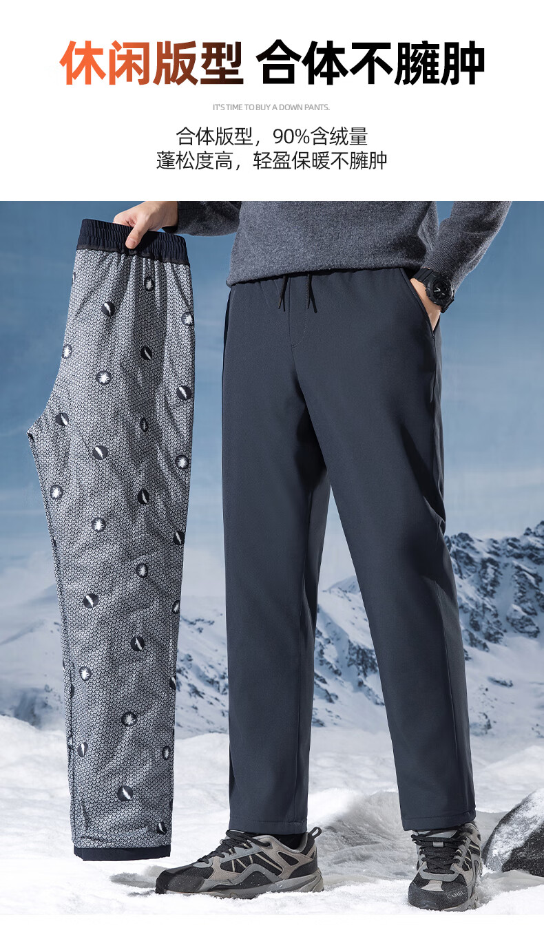 YAYA outer wear down trousers men's autumn and winter drawstring waist thickened and warm youth casual straight pants down trousers