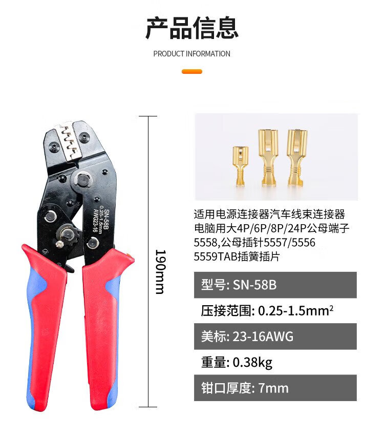 Hasdick Beijing warehouse delivery SN-58B DuPont terminal crimping pliers 0.25-1.5 square meters 1 pair