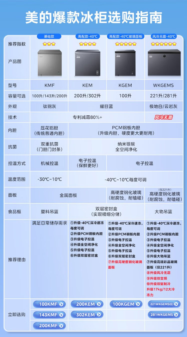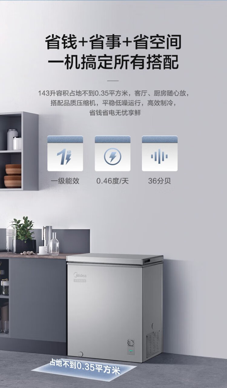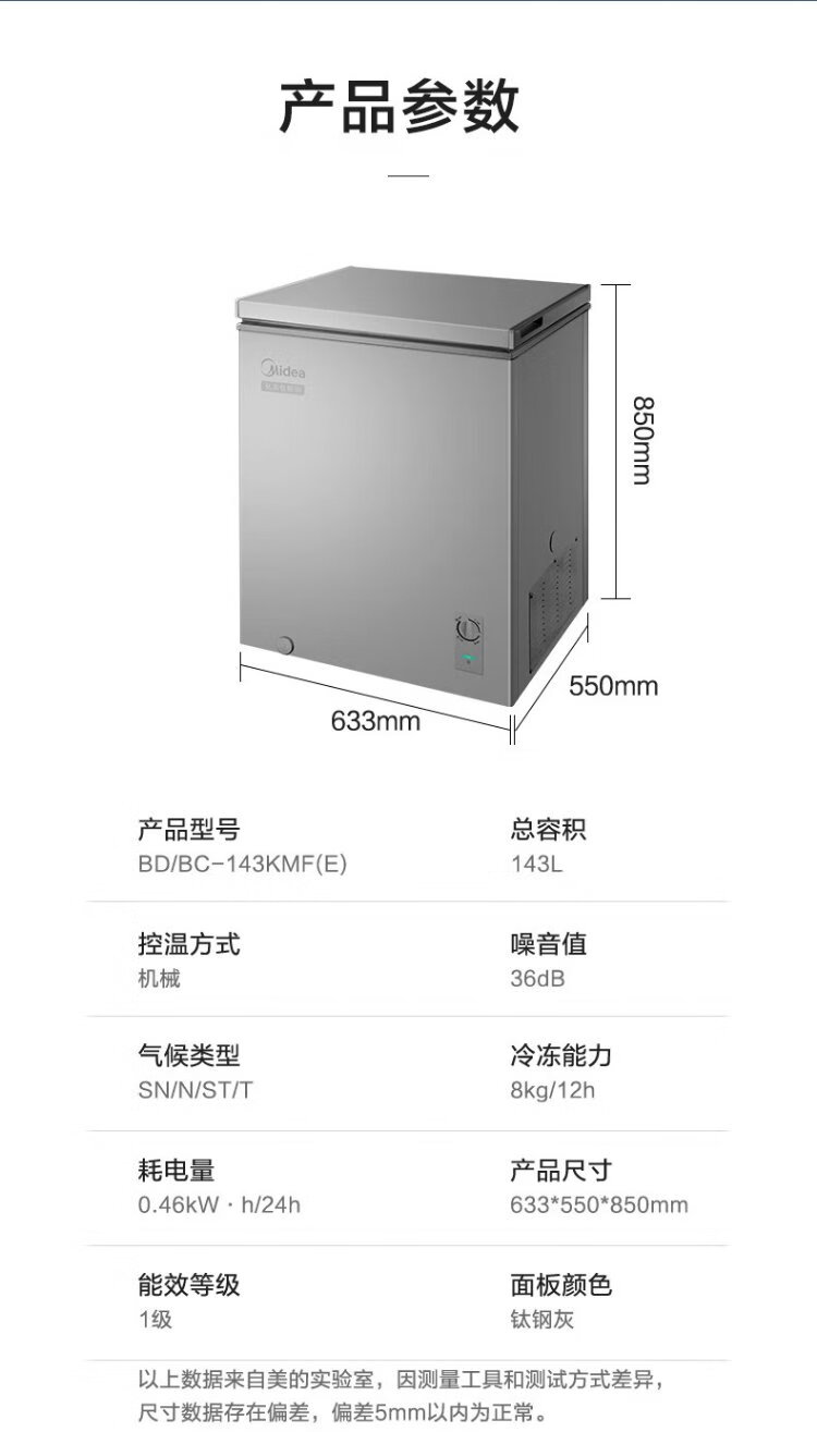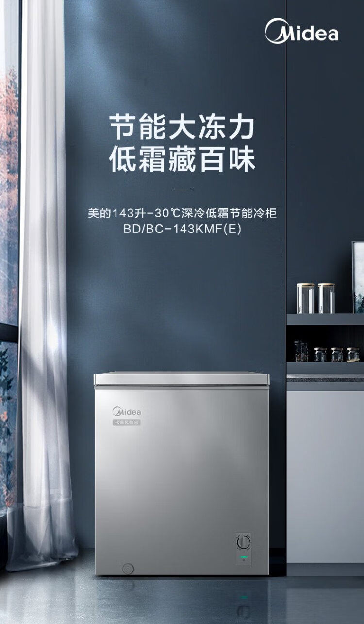 Midea 143 liter small freezer household small freezer refrigeration and freezing - 30 degrees first-class energy efficiency breast milk small refrigerator BD/BC-143KMF (E) national subsidy for home appliances