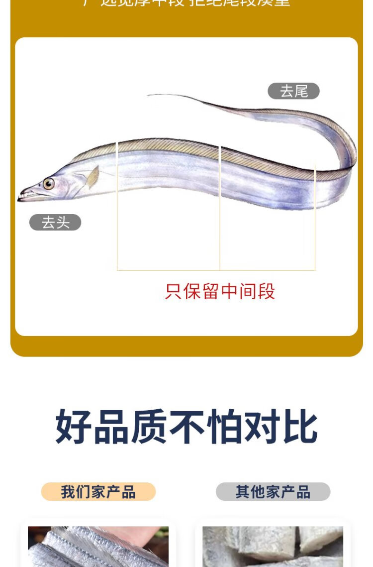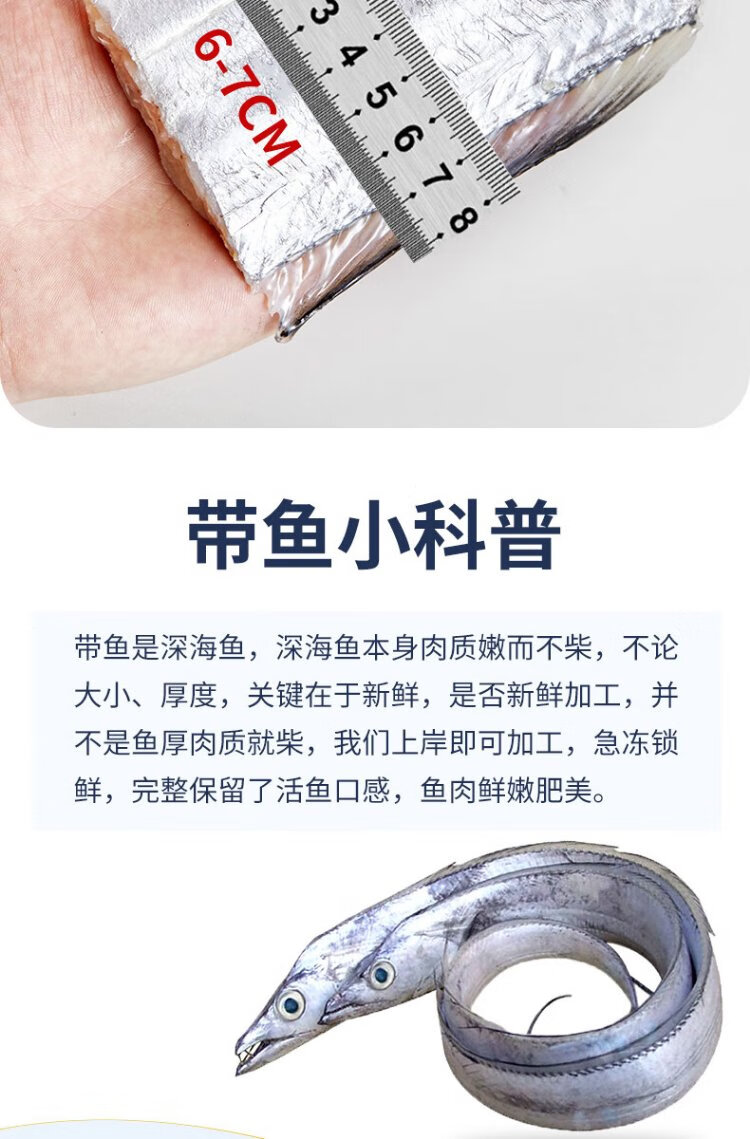 Selling Fish Qilang Frozen Deep Sea Four Finger Width Extra Large Hairtail Segment Middle Section Net Weight 1.8 Jin Jin is equal to 0.5 kg, about 6-8 segments, fresh saury fish