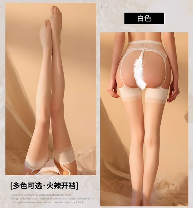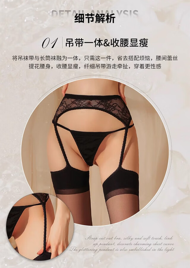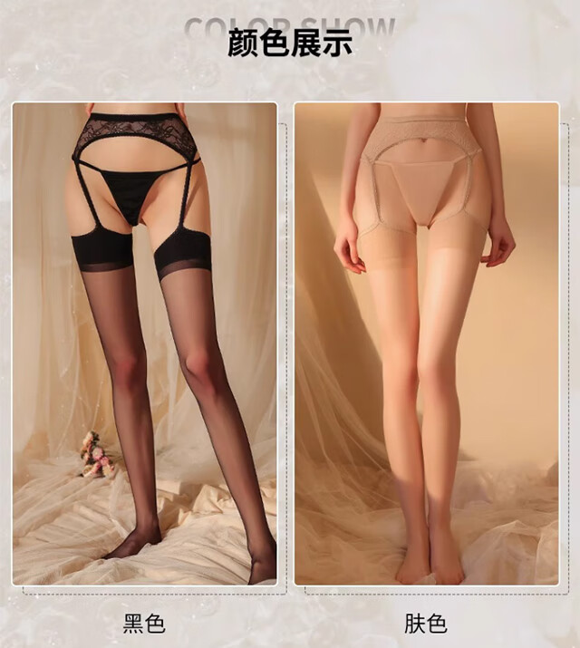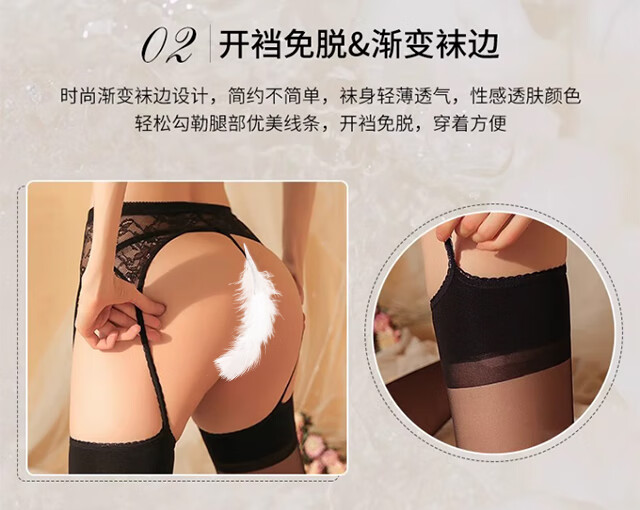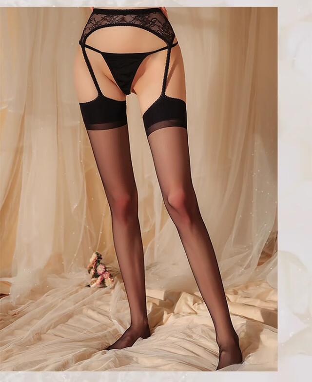 Langsha garter stockings women's emotional temptation black silk ultra-thin long-tube over-the-knee socks open crotch lace pantyhose