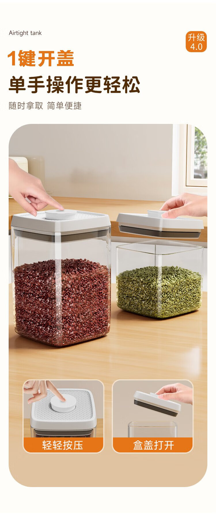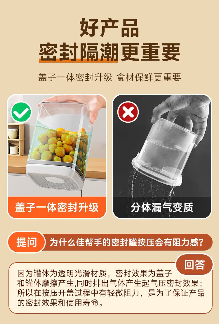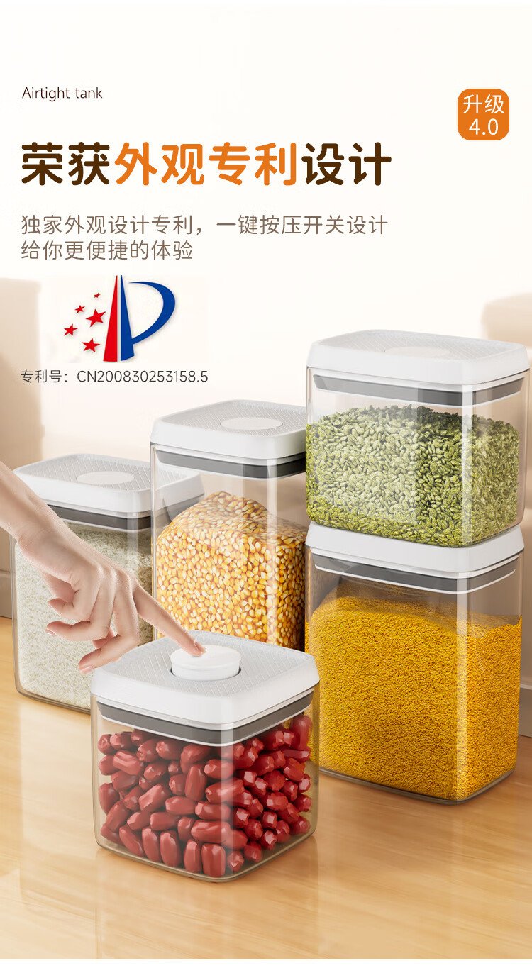 Best helper press-type sealed jar food-grade kitchen grain storage box snack dry goods moisture-proof storage jar 1L