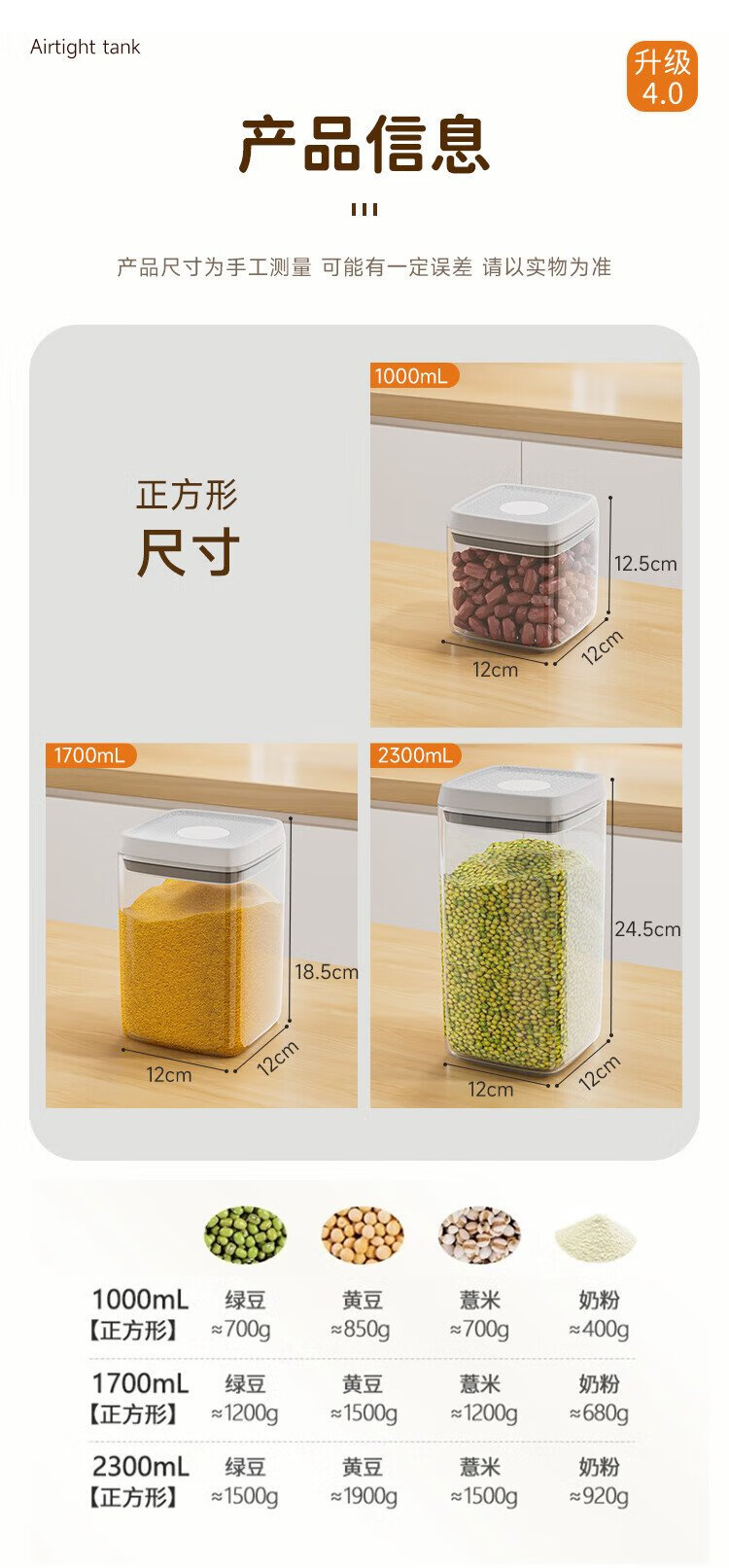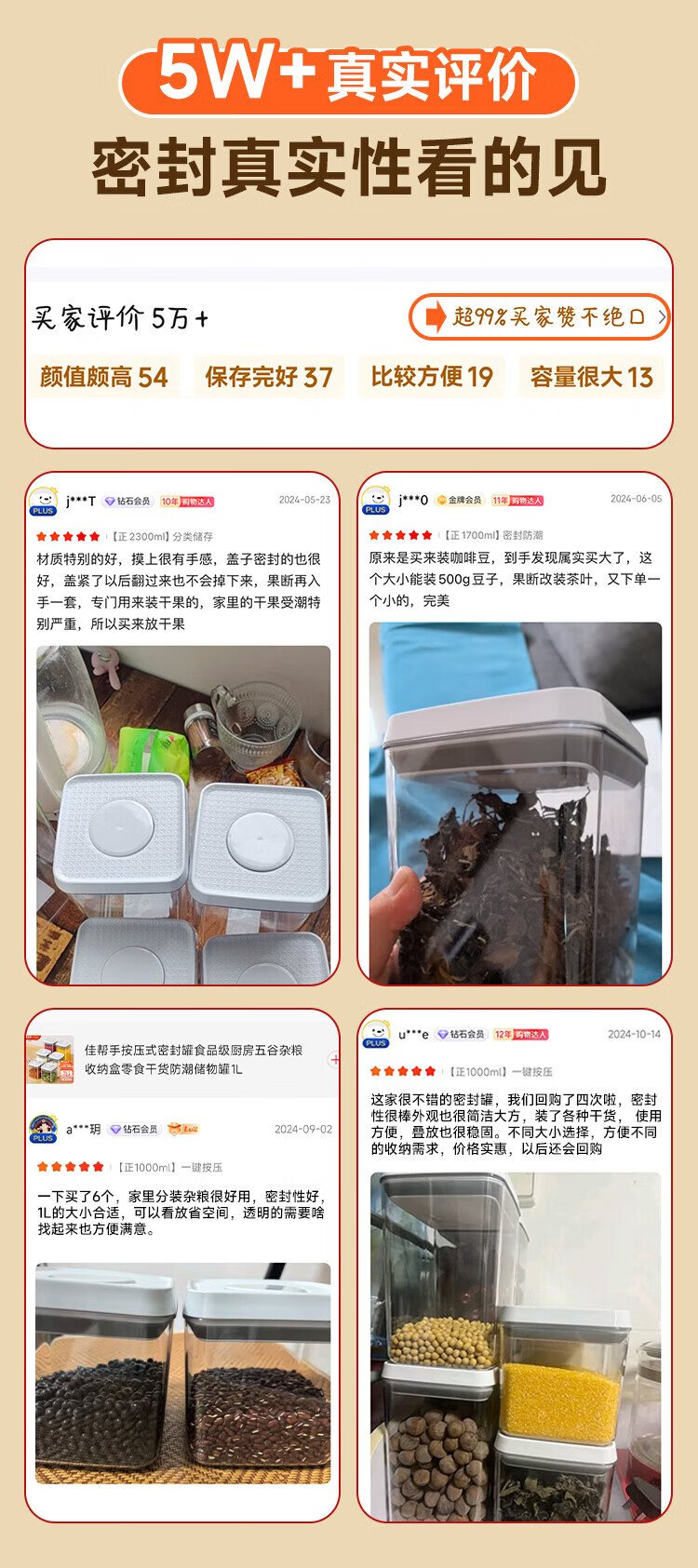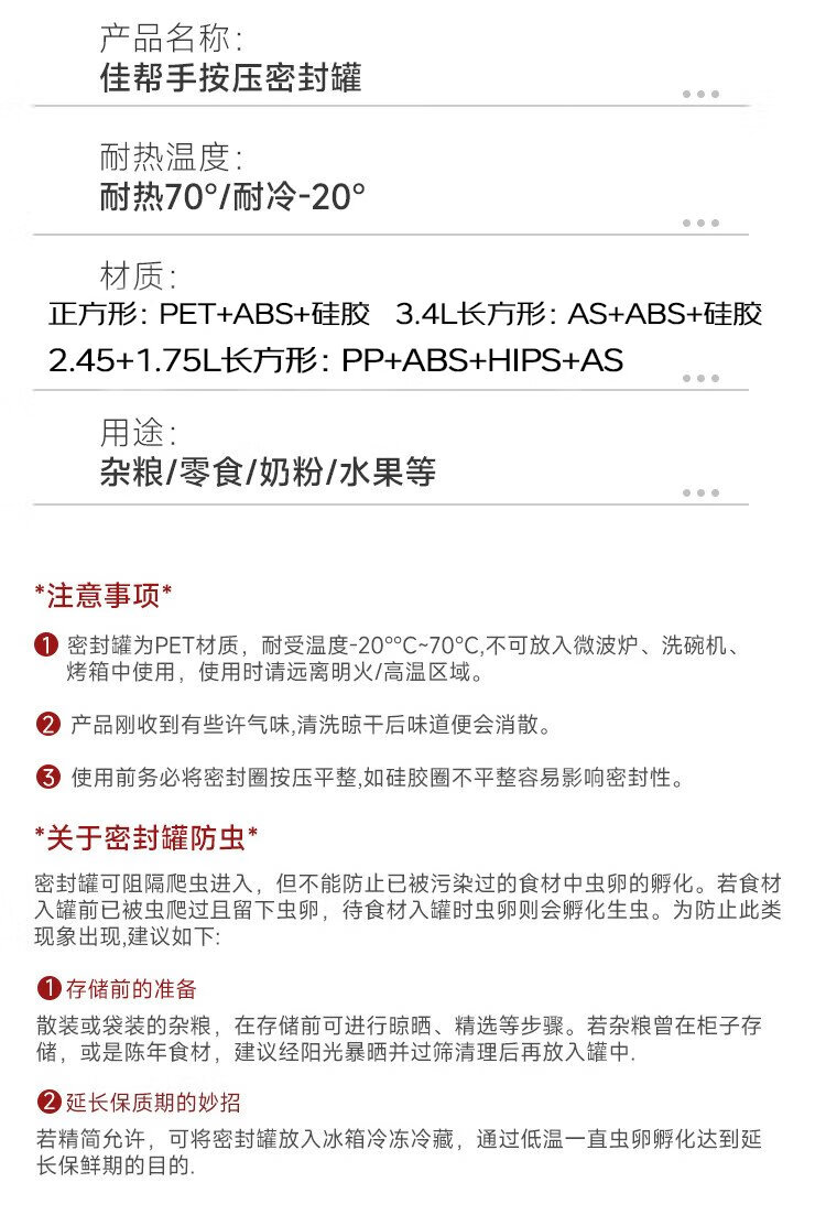 Best helper press-type sealed jar food-grade kitchen grain storage box snack dry goods moisture-proof storage jar 1L