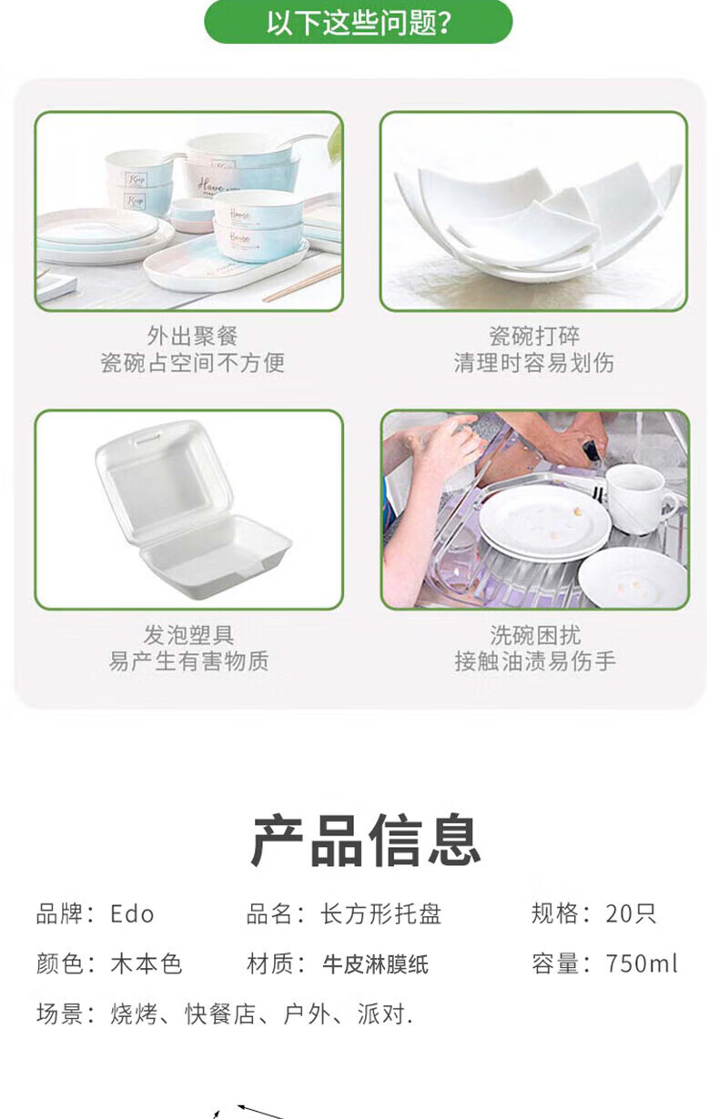 Edo disposable paper plates biodegradable tableware disposable plates 750ml*20 barbecue plates dinner plates paper plates