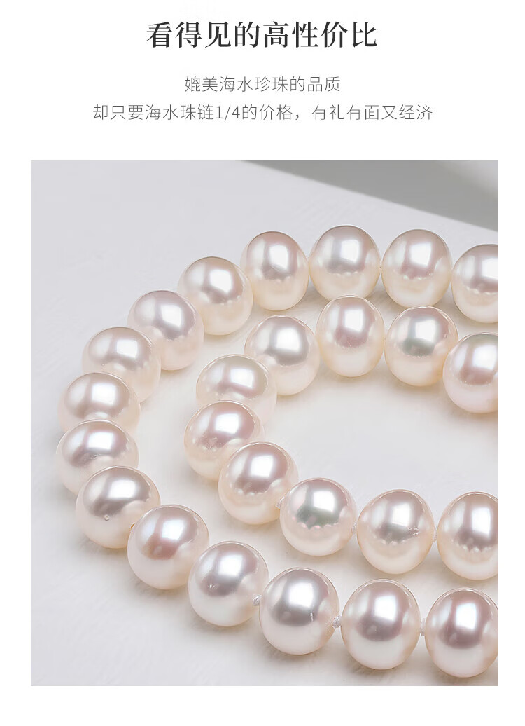Queen of Pearls Youthful 925 Silver Basic Flawless Freshwater Pearl Necklace Practical Mother's Day Gift for Mom and Wife