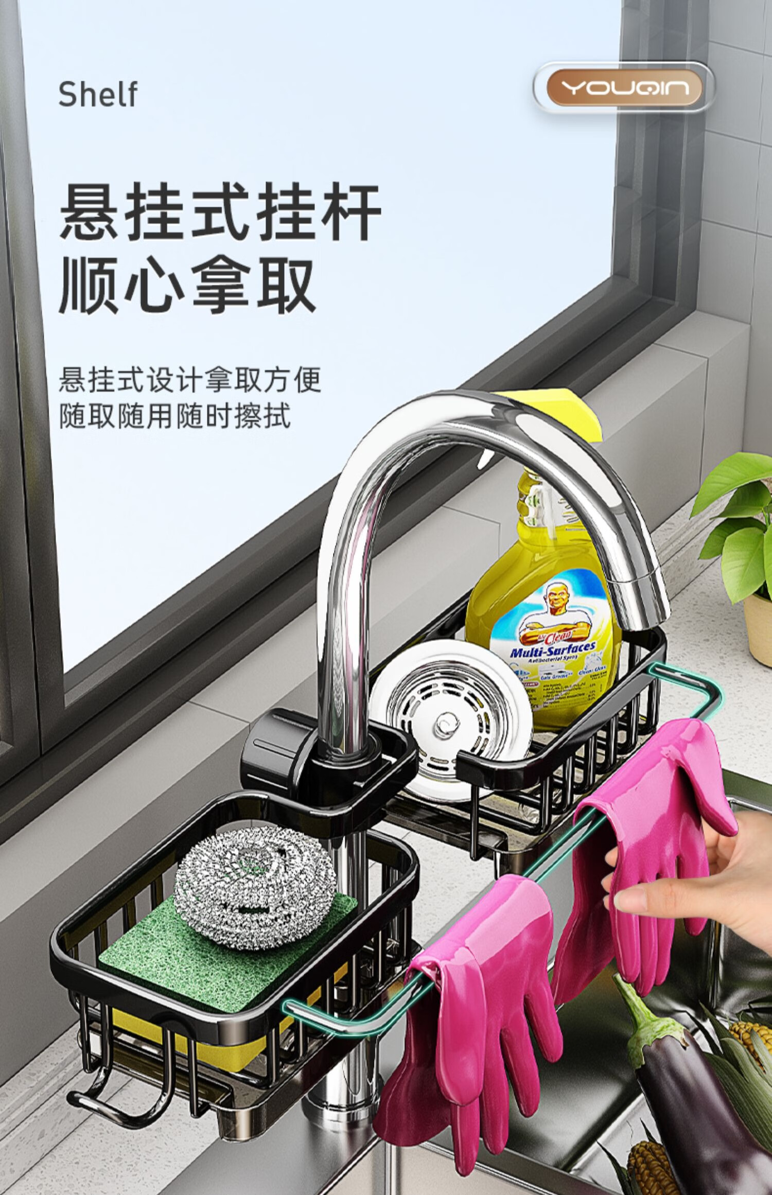 Added kitchen faucet rack washing dishwashing sink supplies household drain multi-functional rag storage rack