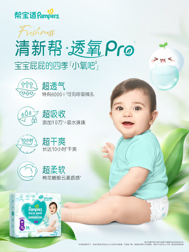 Pampers ultra-thin breathable fresh breathable Pro baby pull-up pants diaper XXXL64