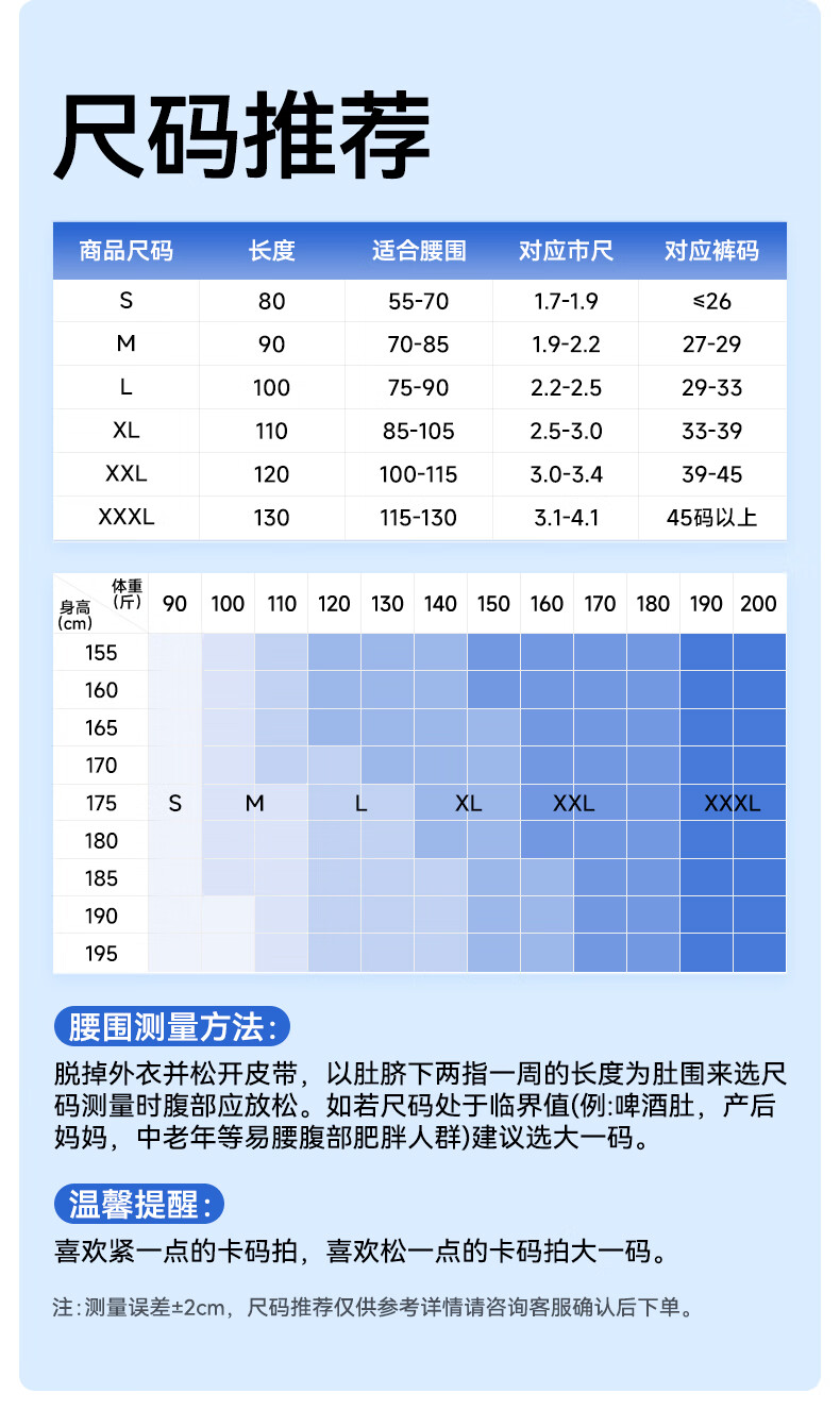 USA(inch) 28-30 30-32 32-34 34-38 38-42
