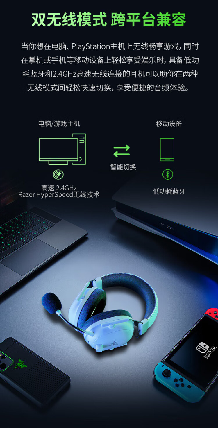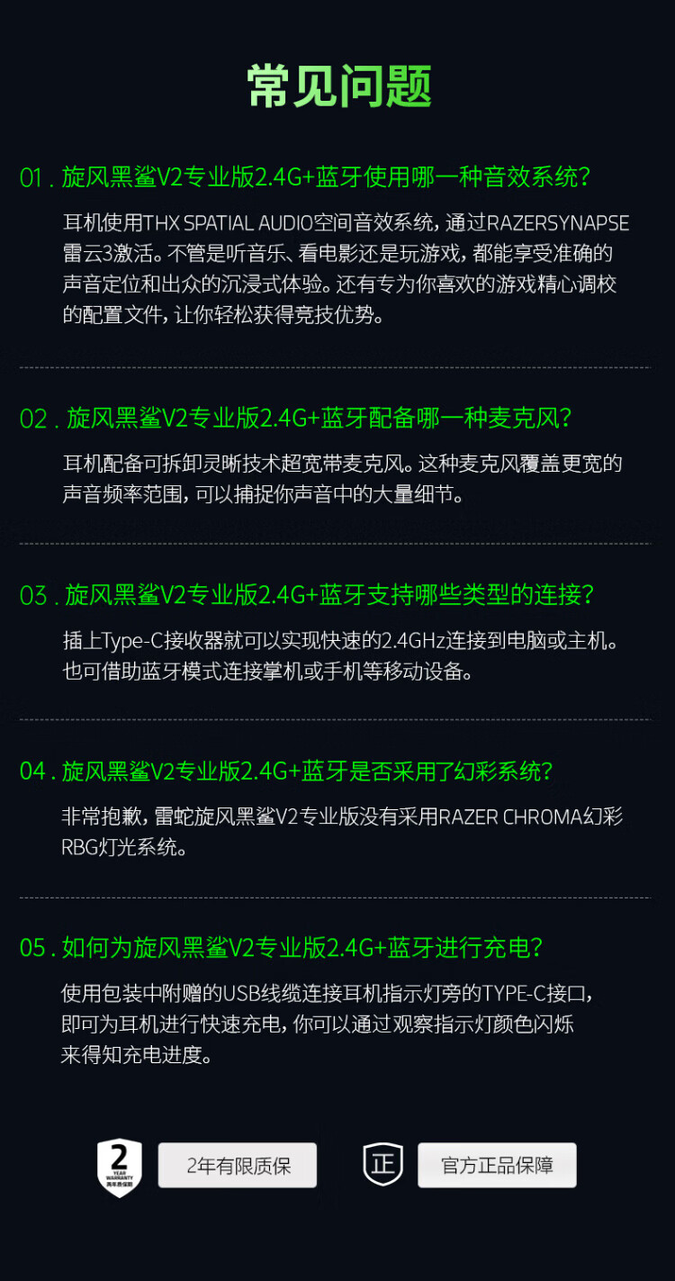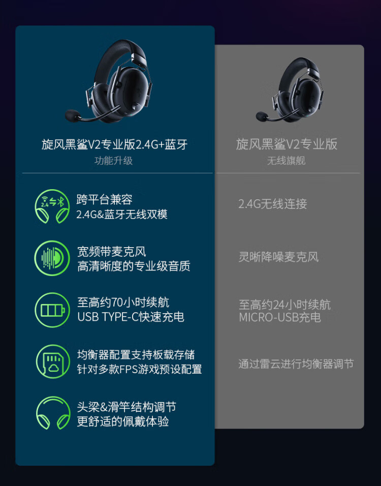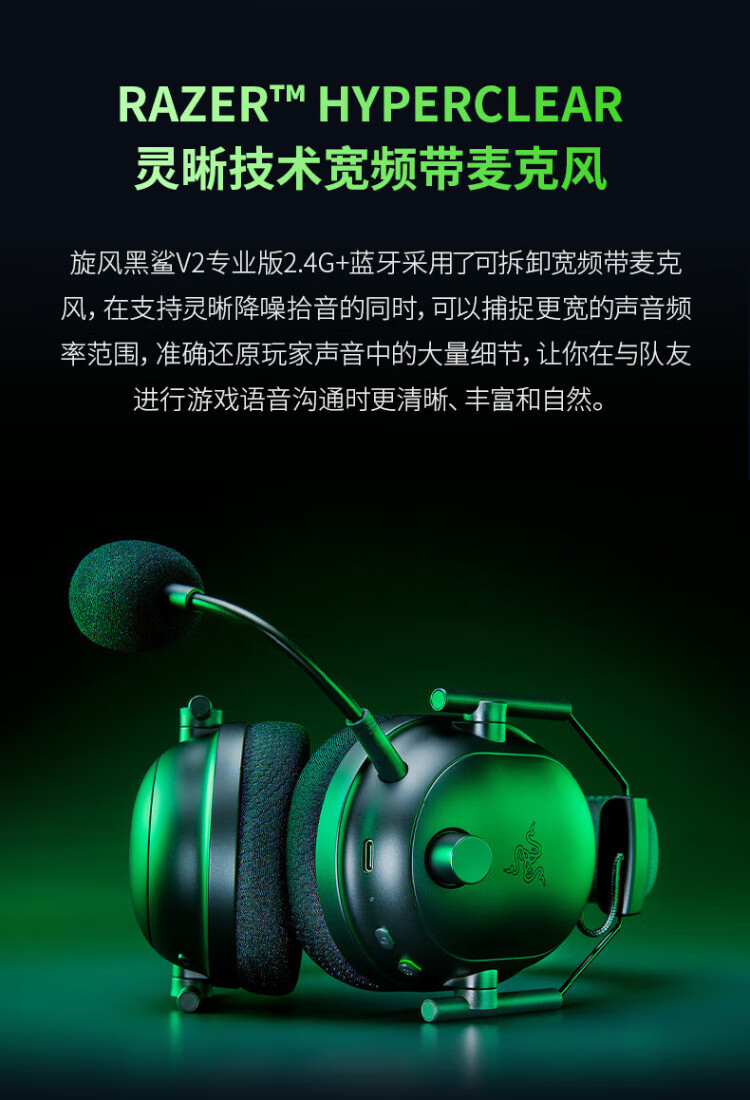 Razer Black Shark V2 Professional Edition Pro 2.4G+ Bluetooth wireless headset e-sports gaming headset passive noise reduction delta EQ adjustment CSGO chicken game