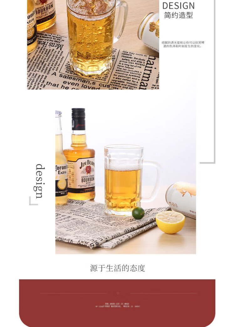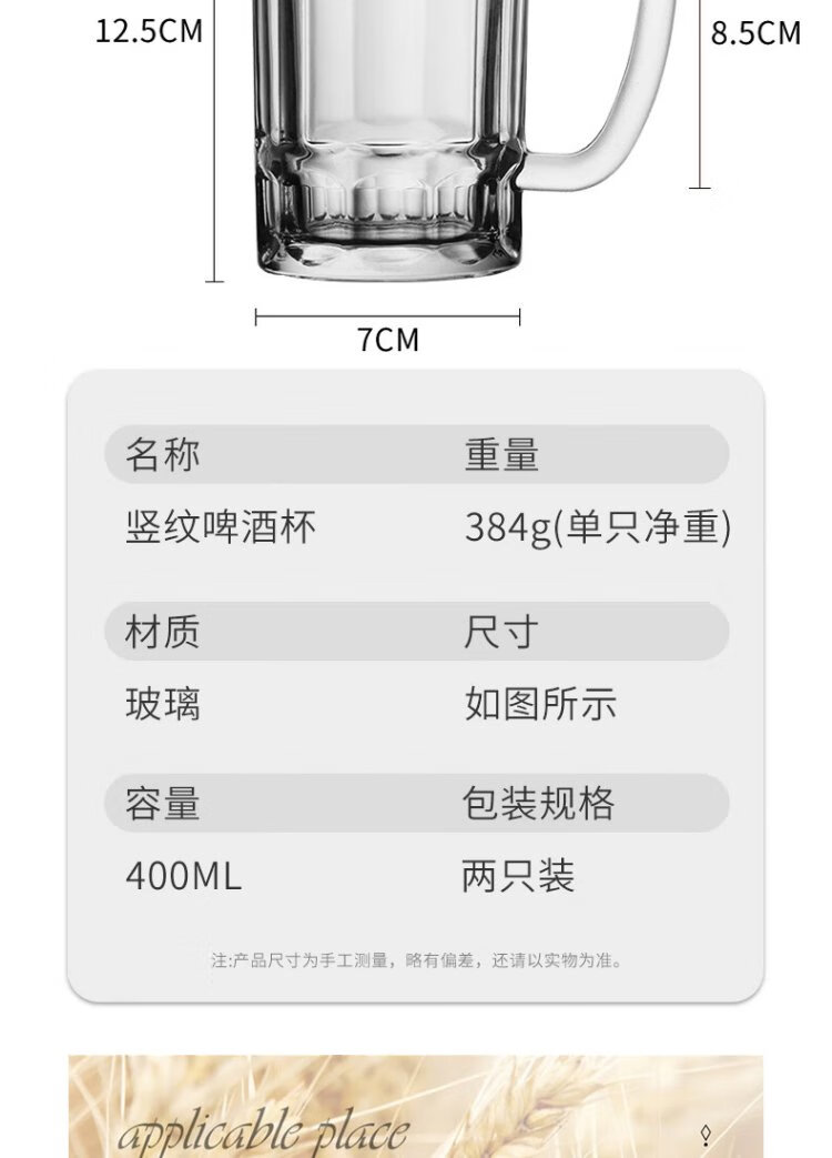 Baijie craft beer cup home glass draft beer cup bar restaurant large capacity 400ml beverage juice cup 2 pieces
