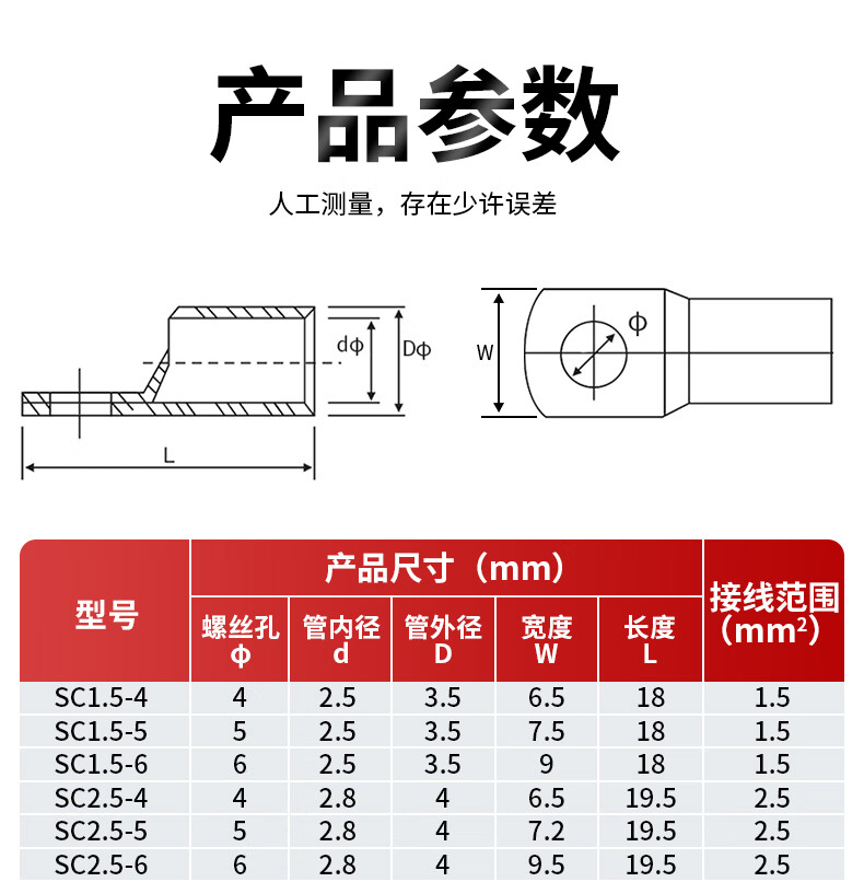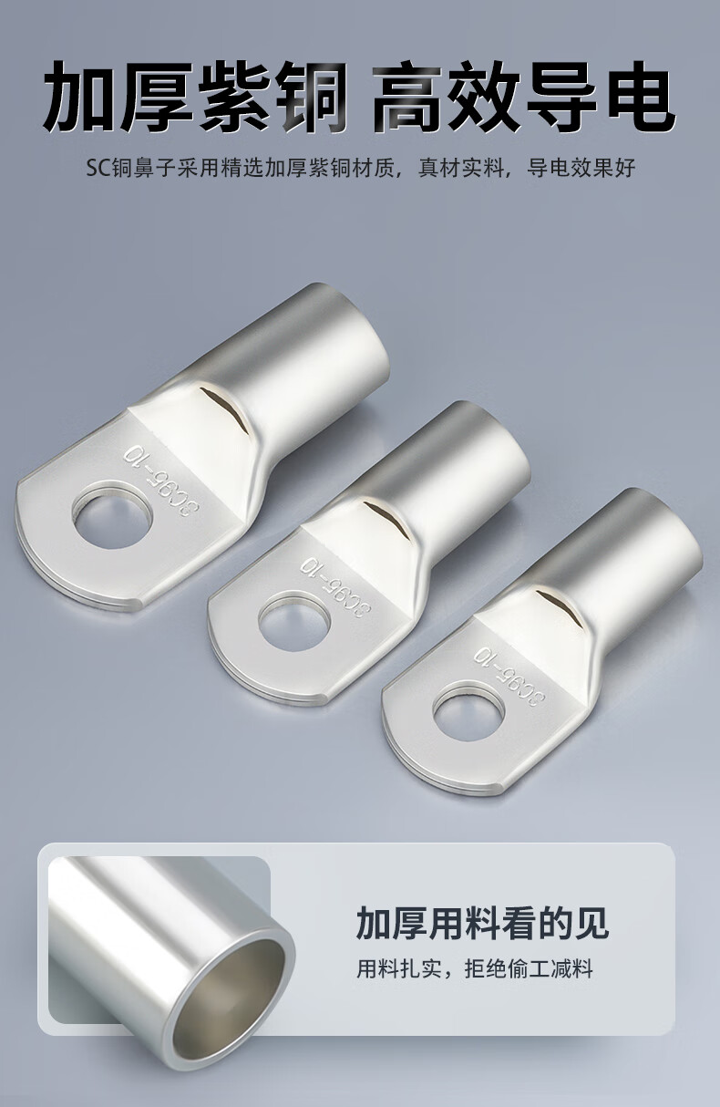 Andatong SC peek copper wire nose terminal short wire nose single pressure marine copper galvanized connector SC 35-8 (50 pieces)