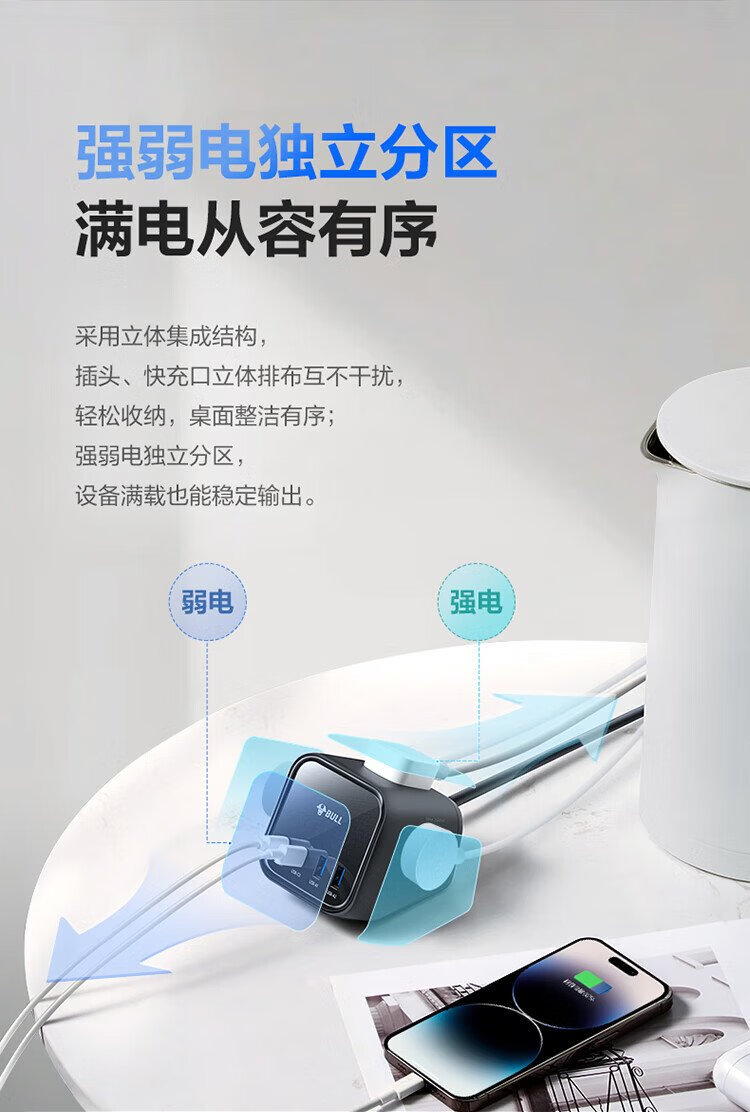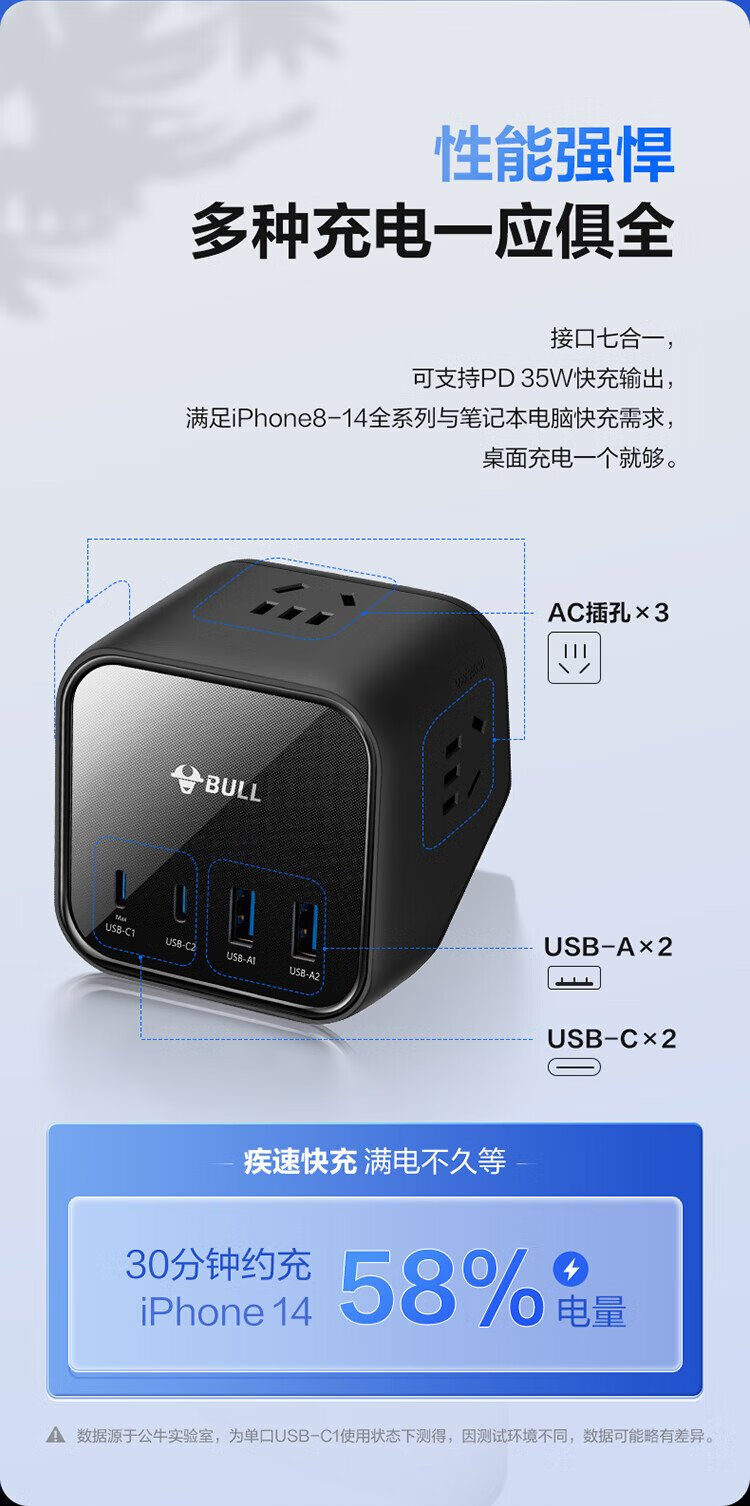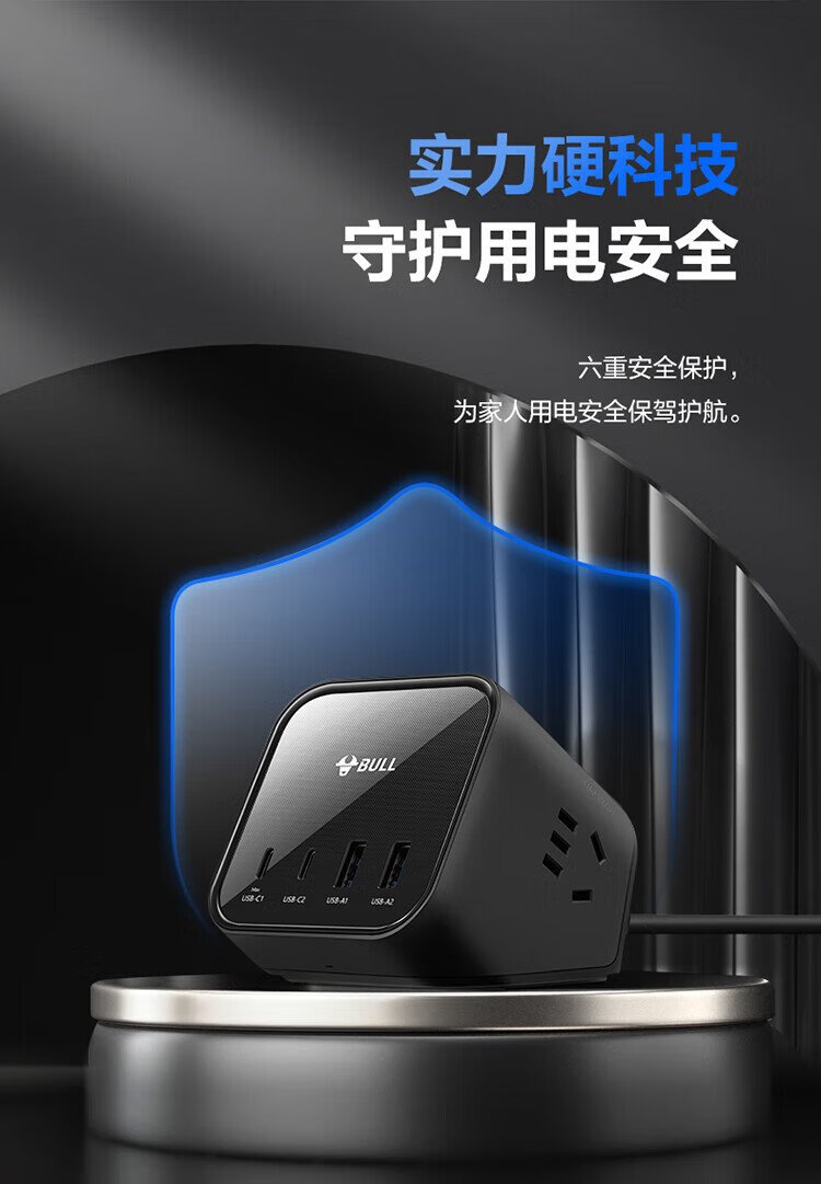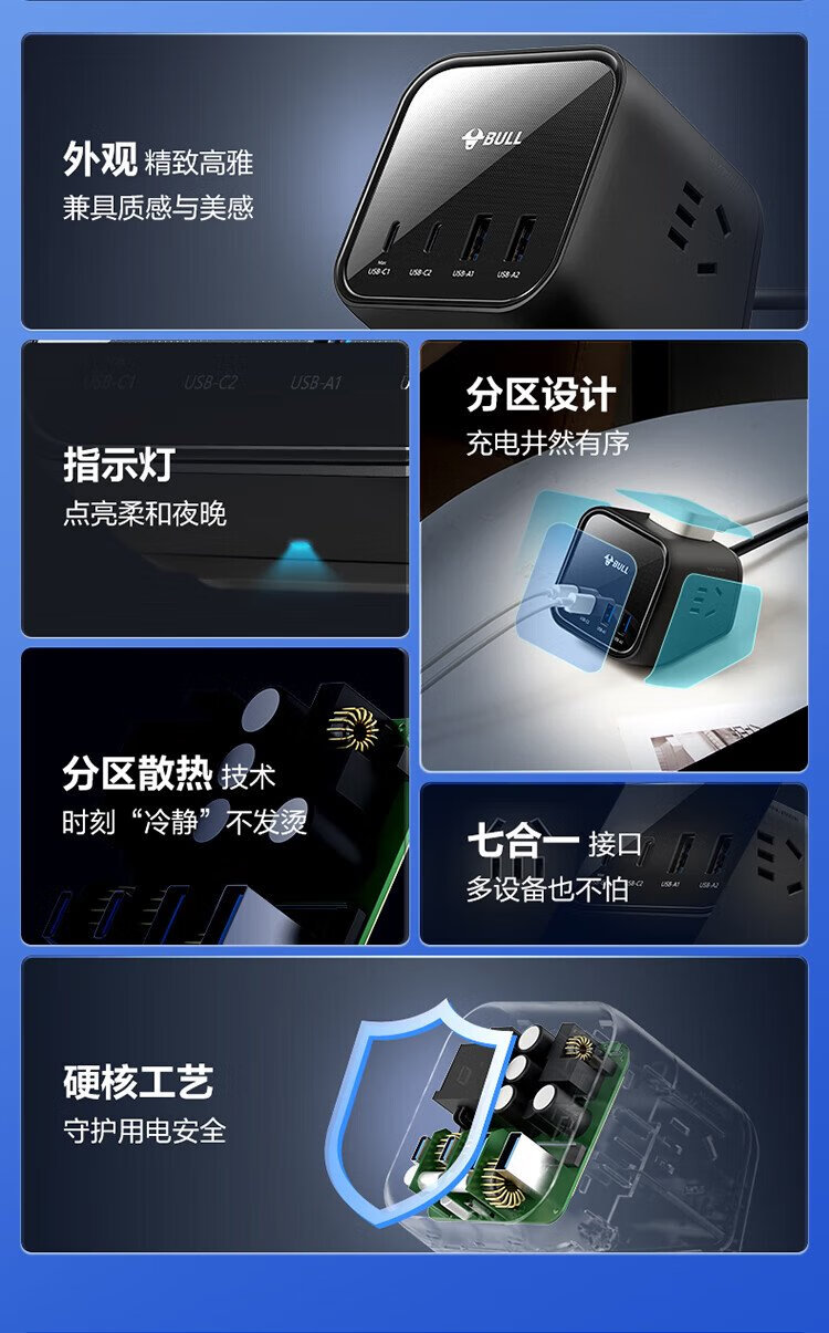 BULL (BULL) 35W PD Apple fast charging socket/strip board/socket strip/wiring board 2C2A+3 jacks total length 1.5 meters total output 35W GNV-MS1353 master control switch