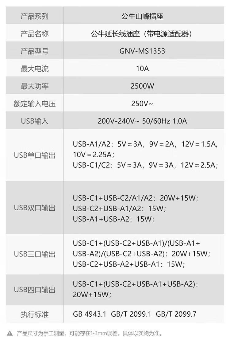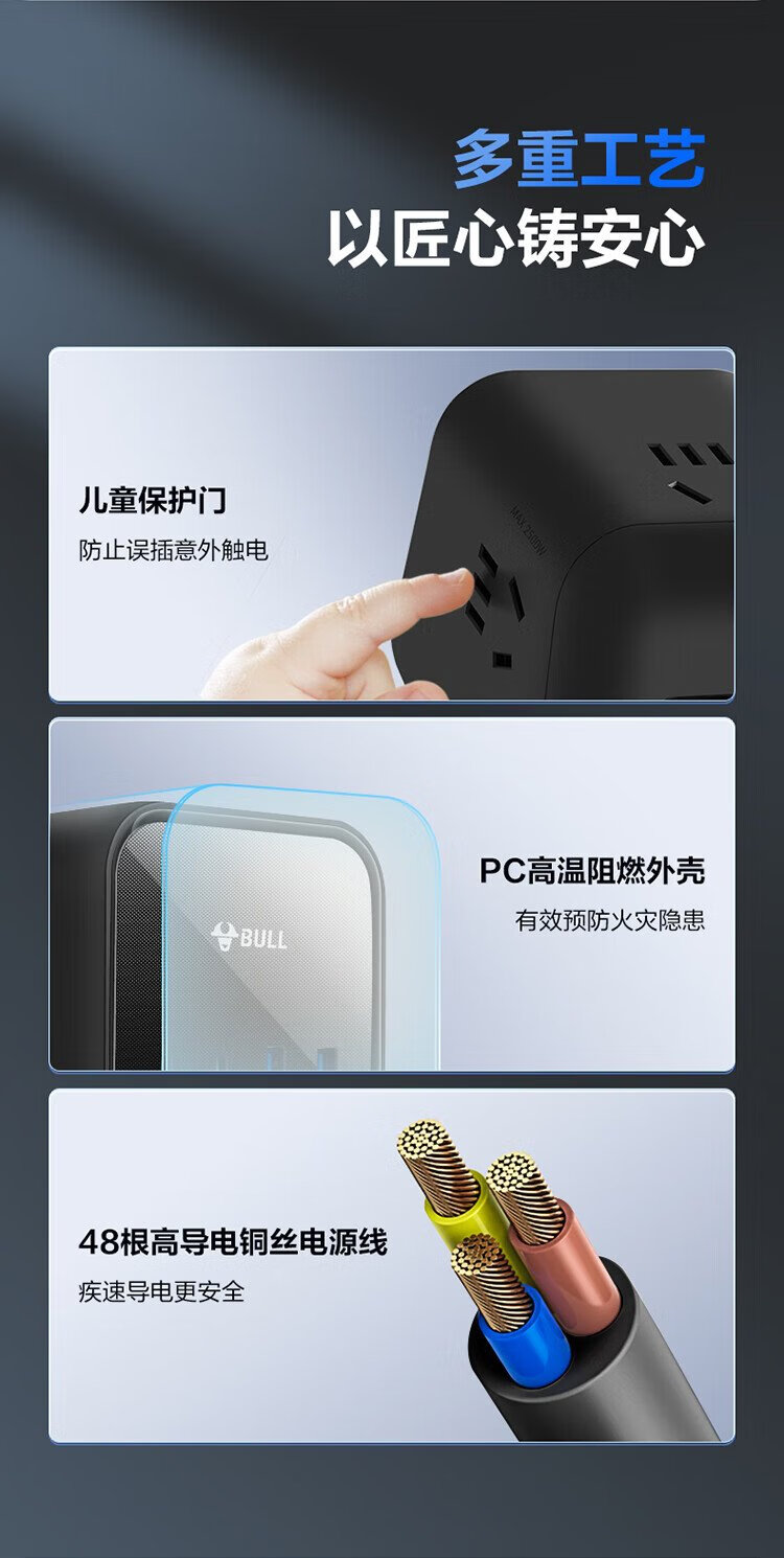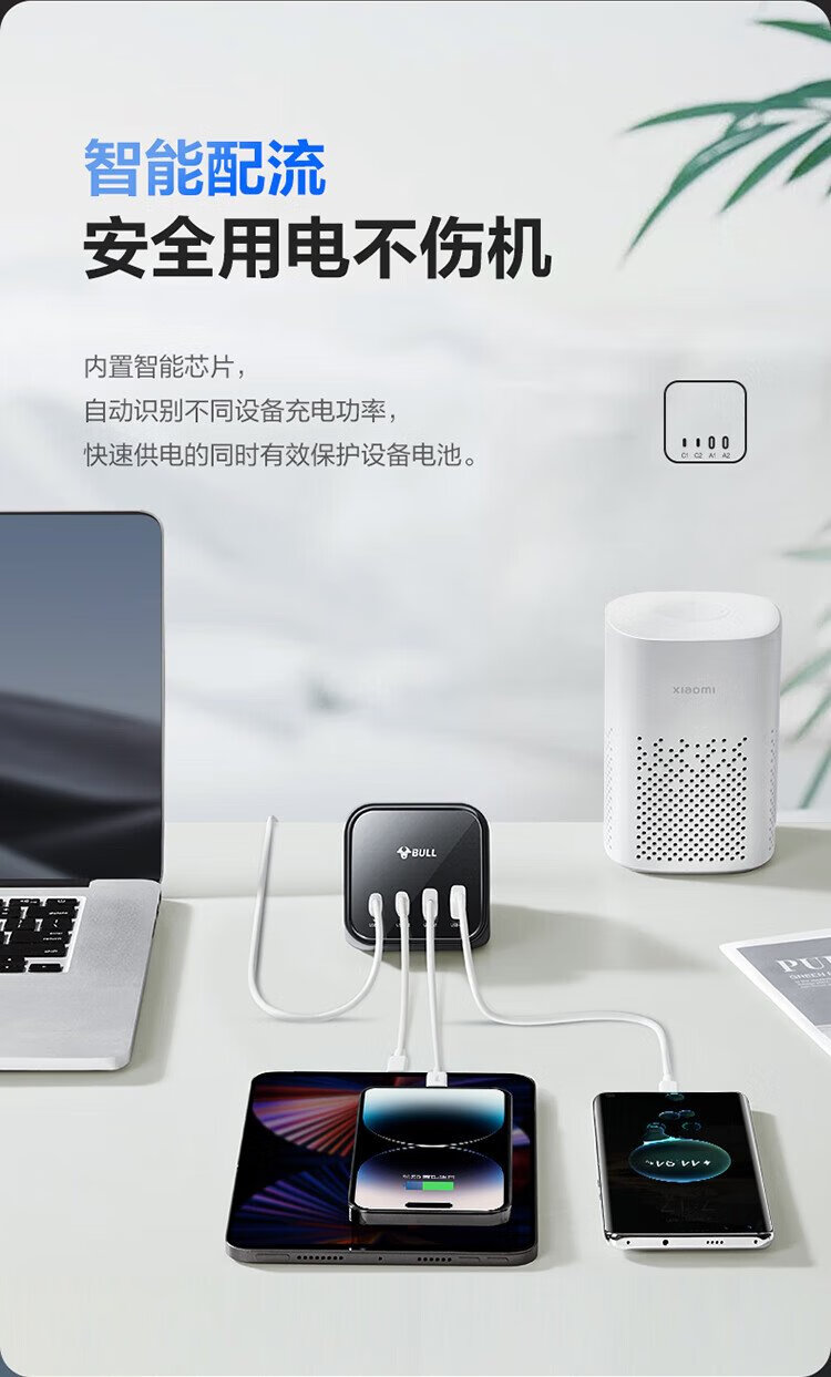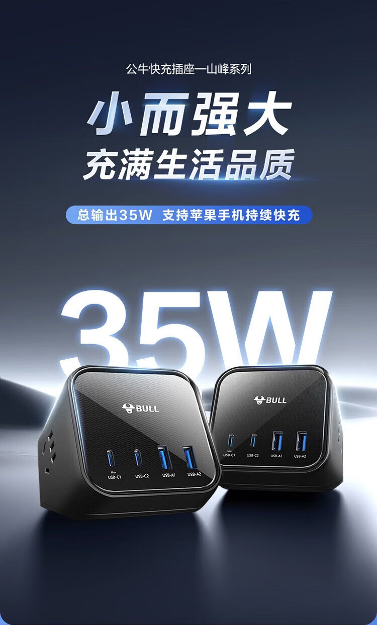 BULL (BULL) 35W PD Apple fast charging socket/strip board/socket strip/wiring board 2C2A+3 jacks total length 1.5 meters total output 35W GNV-MS1353 master control switch