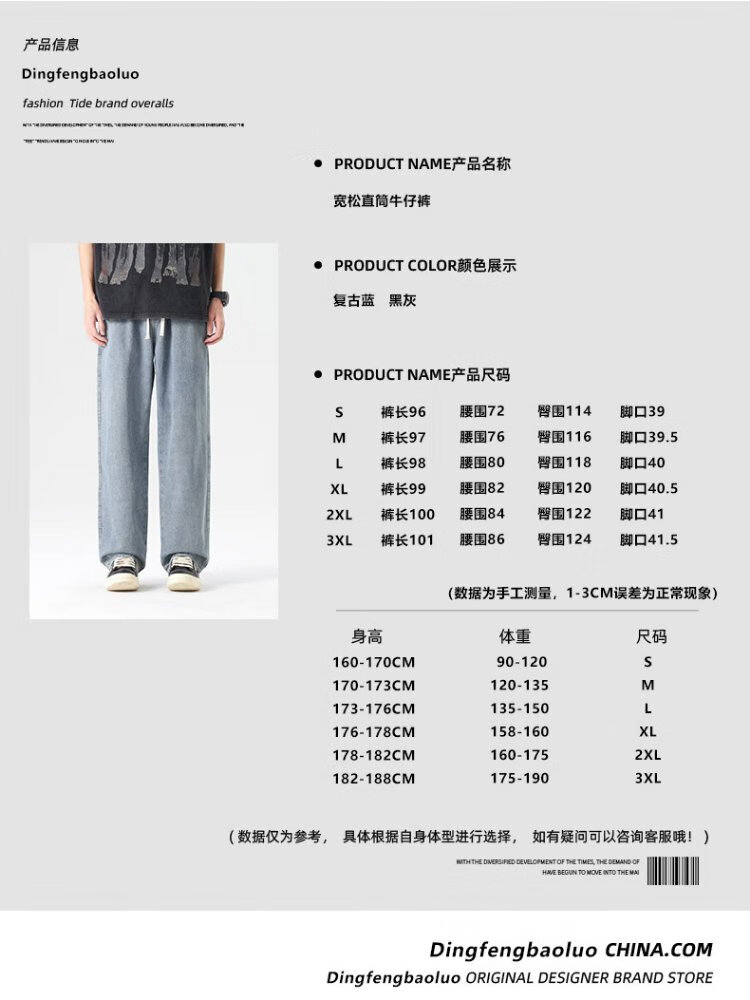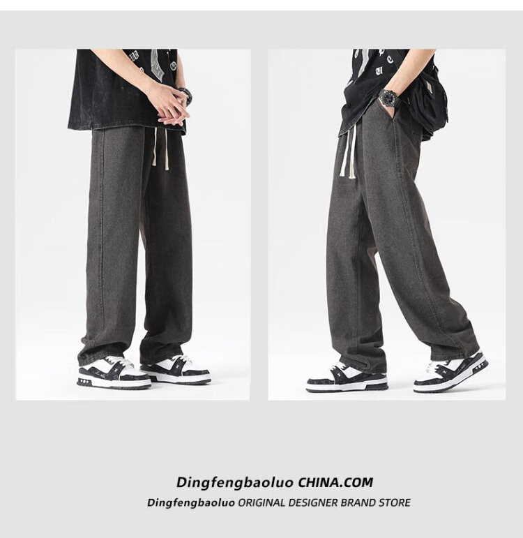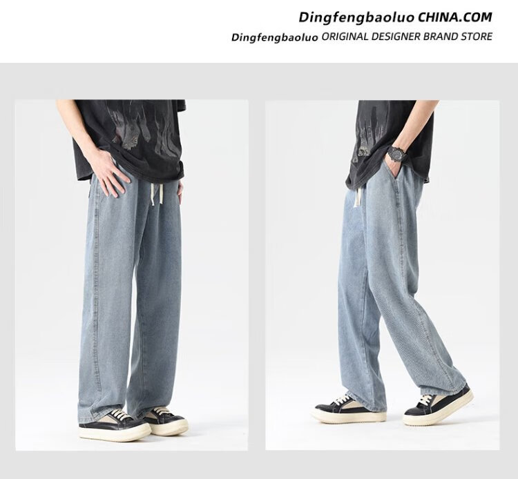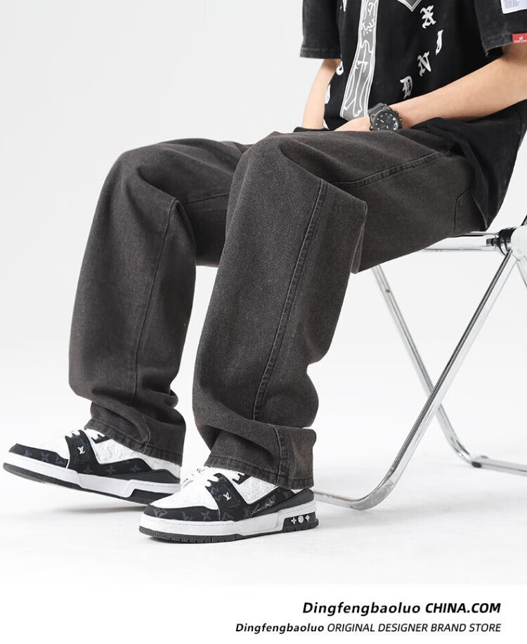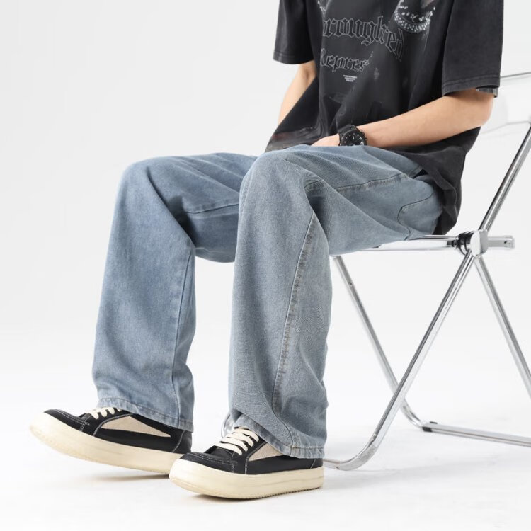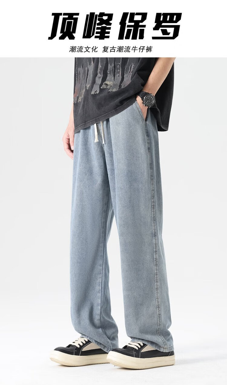 顶峰保罗(Dingfengbaoluo)美式牛仔裤男生秋季直筒裤子宽松休闲阔腿长裤DFK24复古蓝M