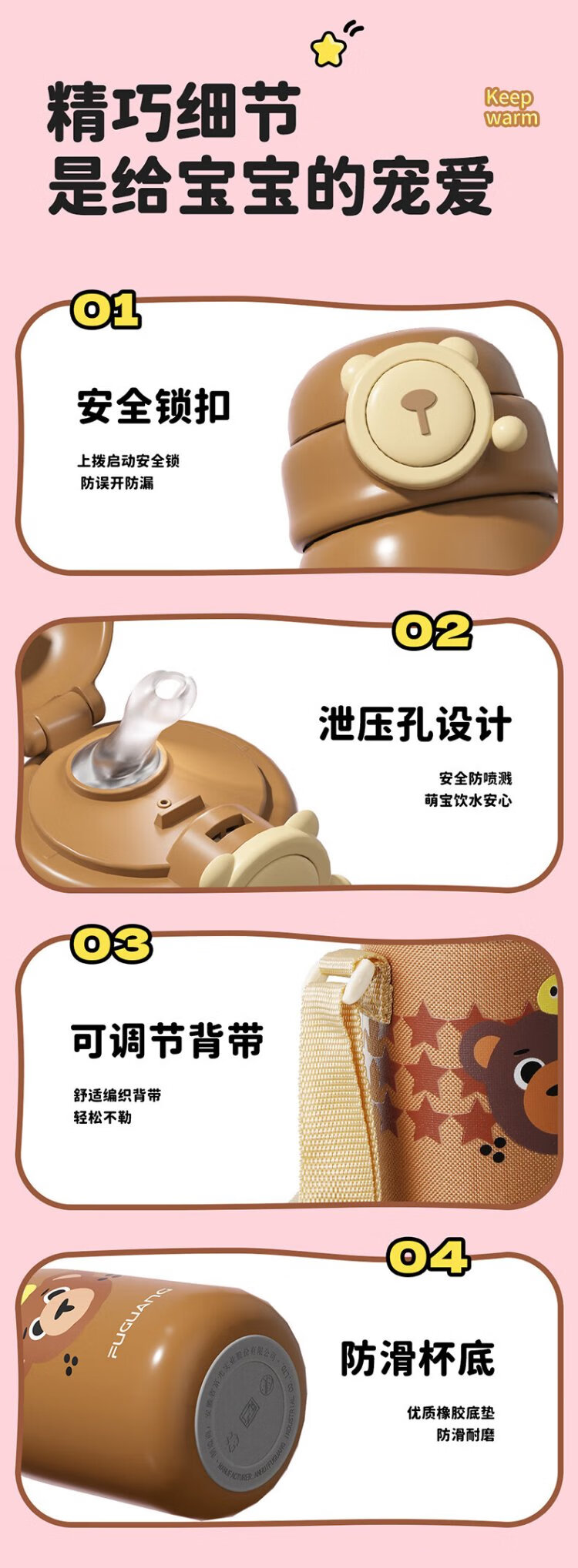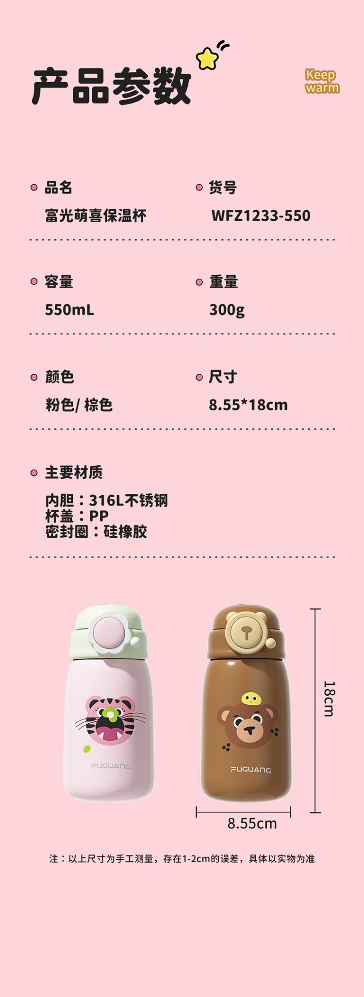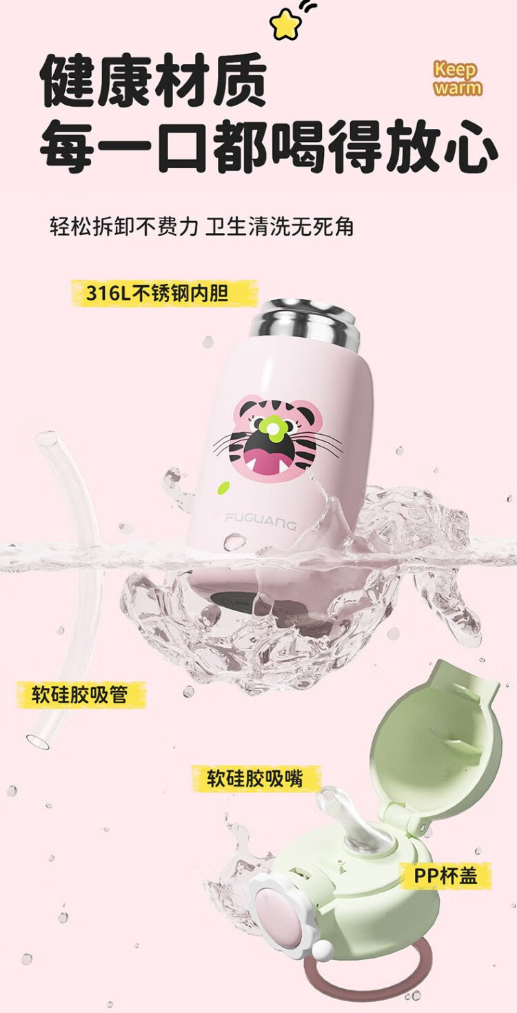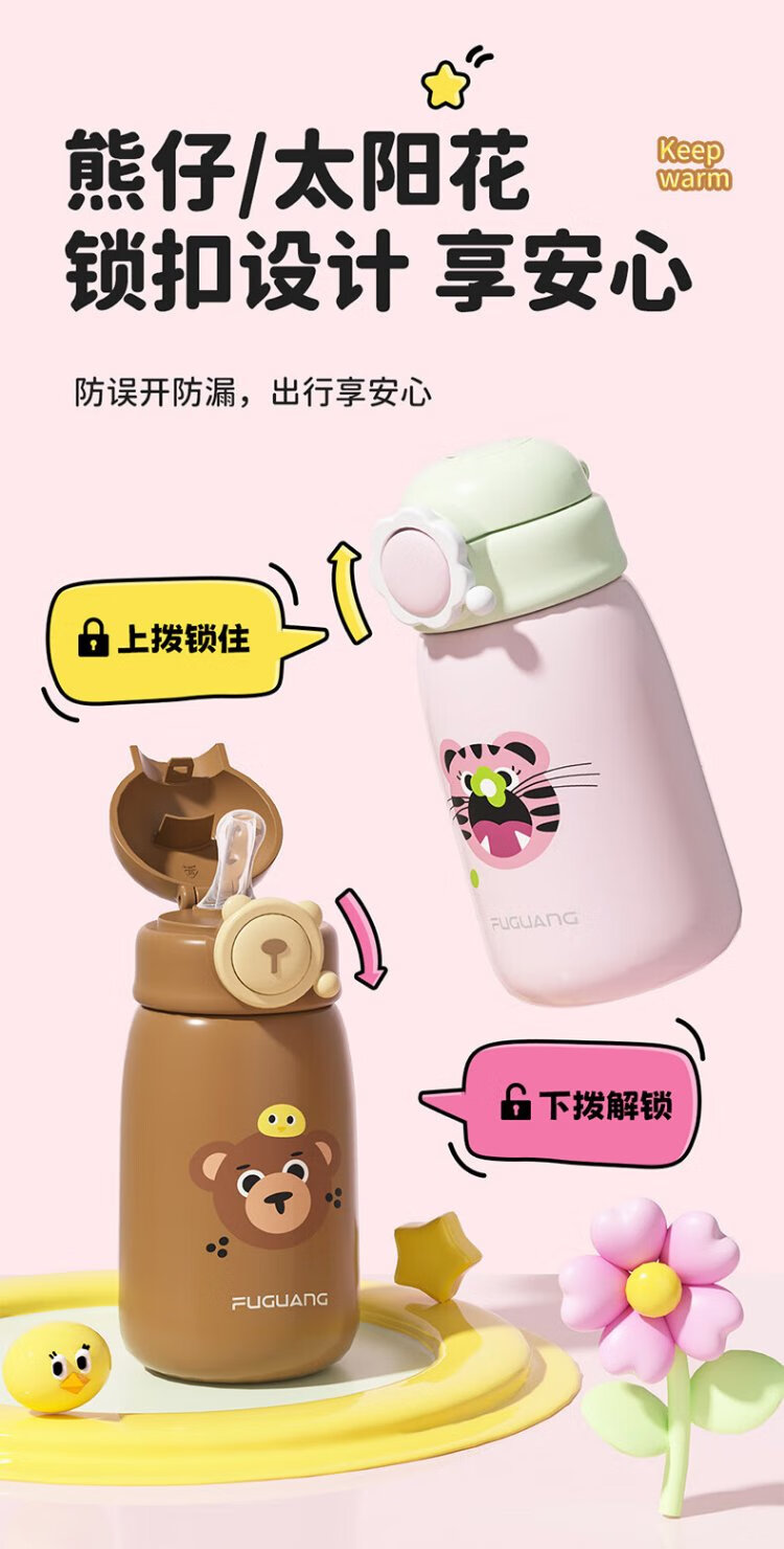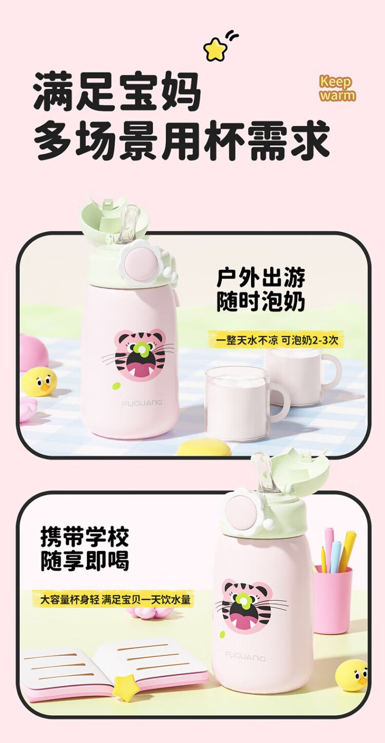Fuguang children's thermos cup 316L stainless steel water cup kettle straw cup male and female primary school baby drinking water pop-up cup