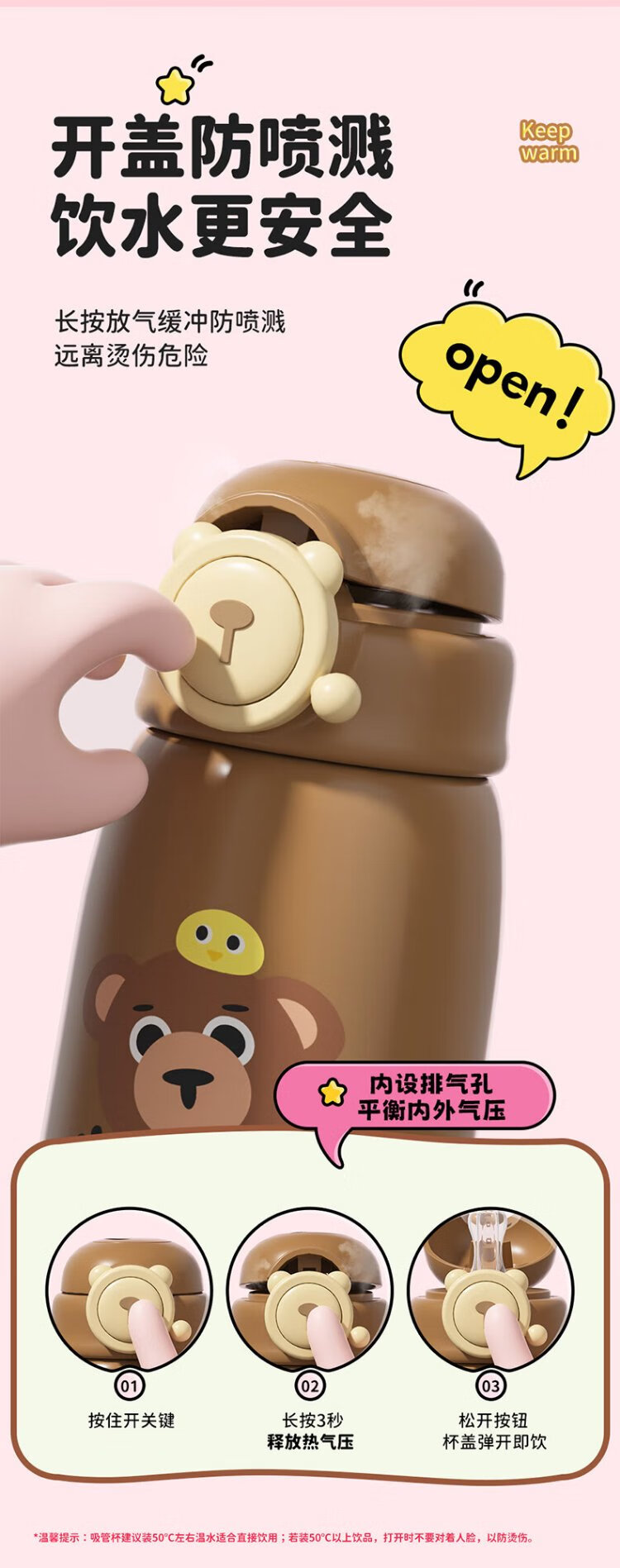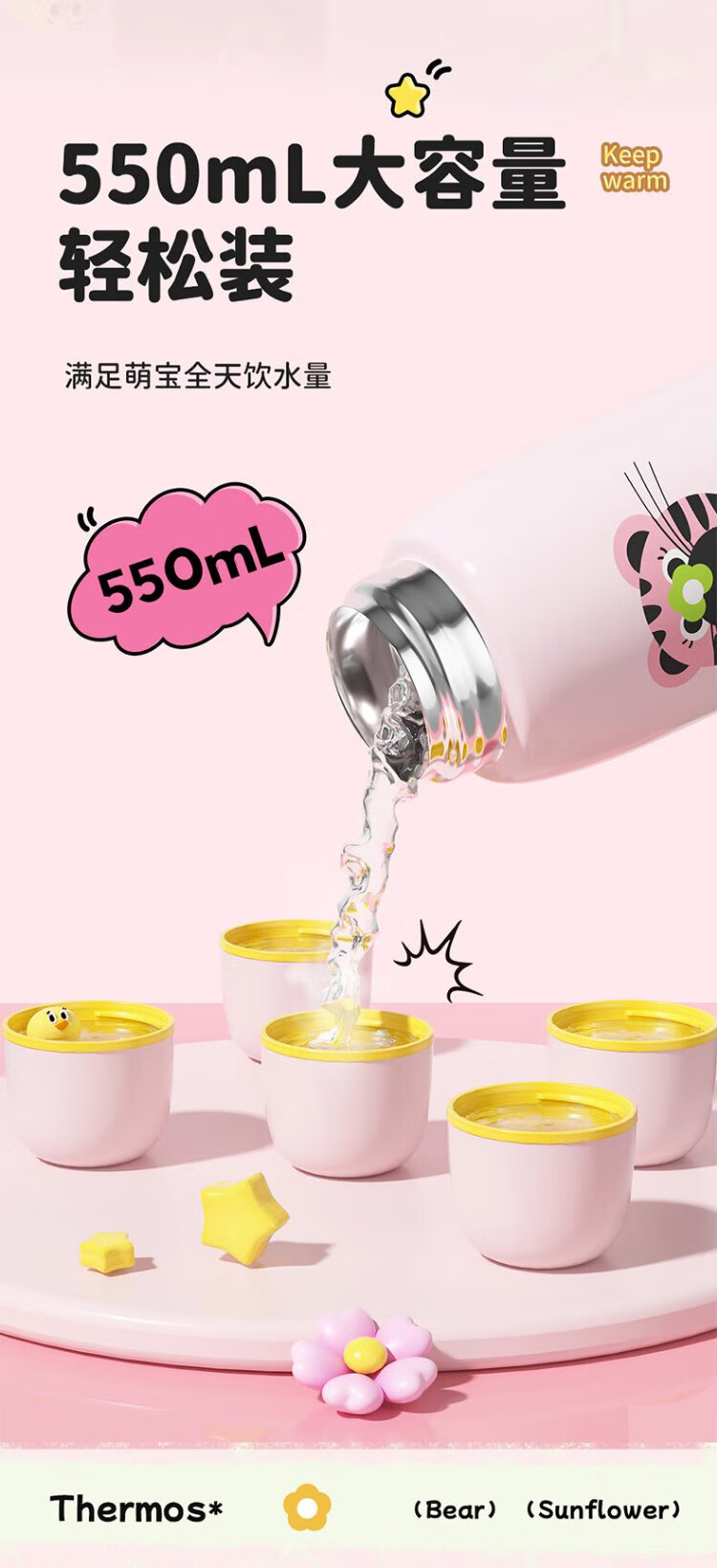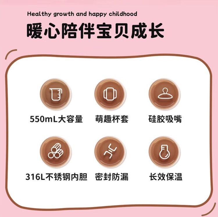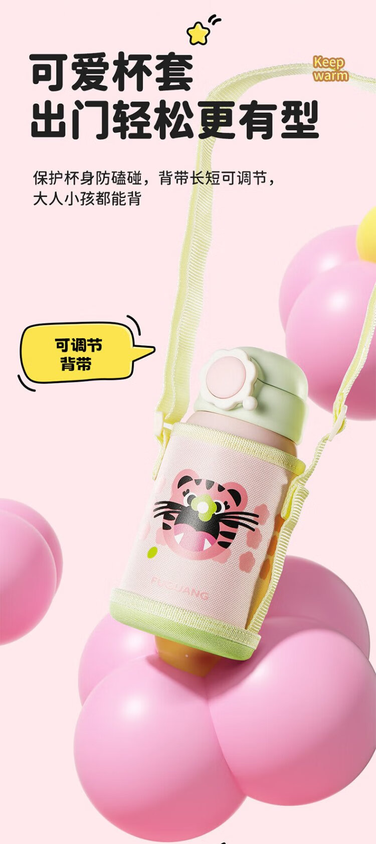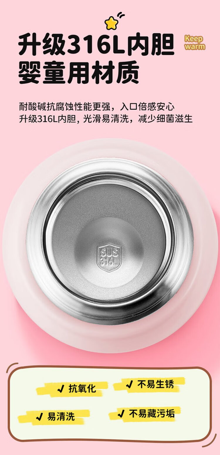 Fuguang children's thermos cup 316L stainless steel water cup kettle straw cup male and female primary school baby drinking water pop-up cup