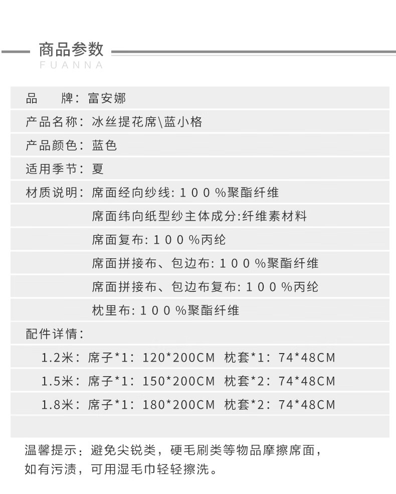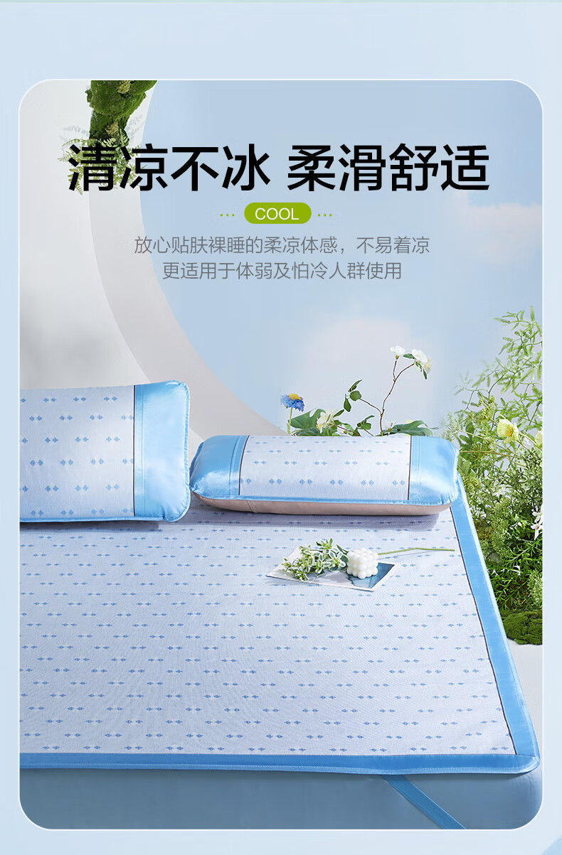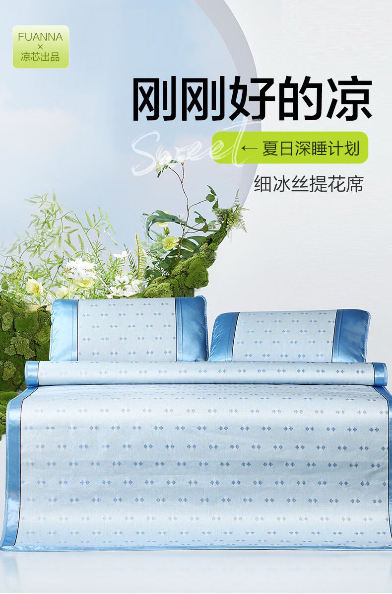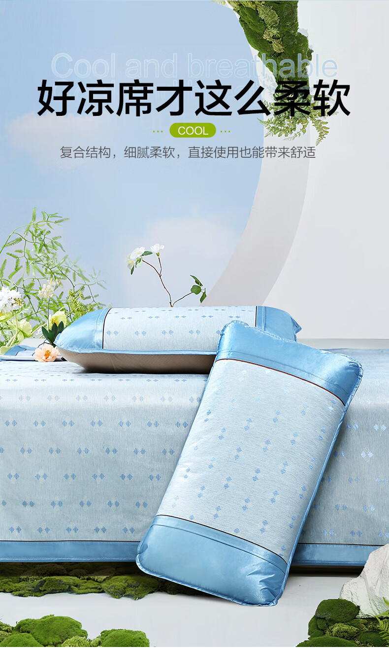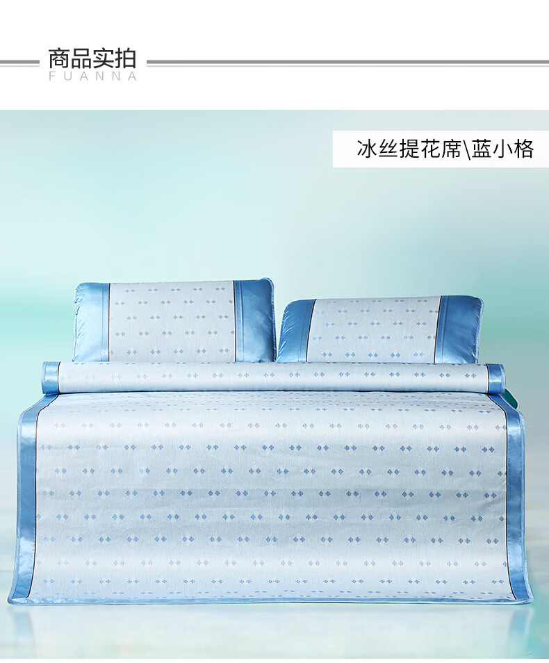 Fu Anna Summer mat, ice silk mat, summer fine ice silk mat, summer mat, 1.8x2 meters, double soft mat, air-conditioned mat, three-piece set