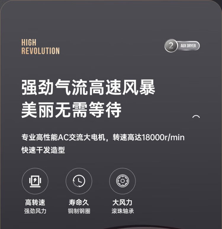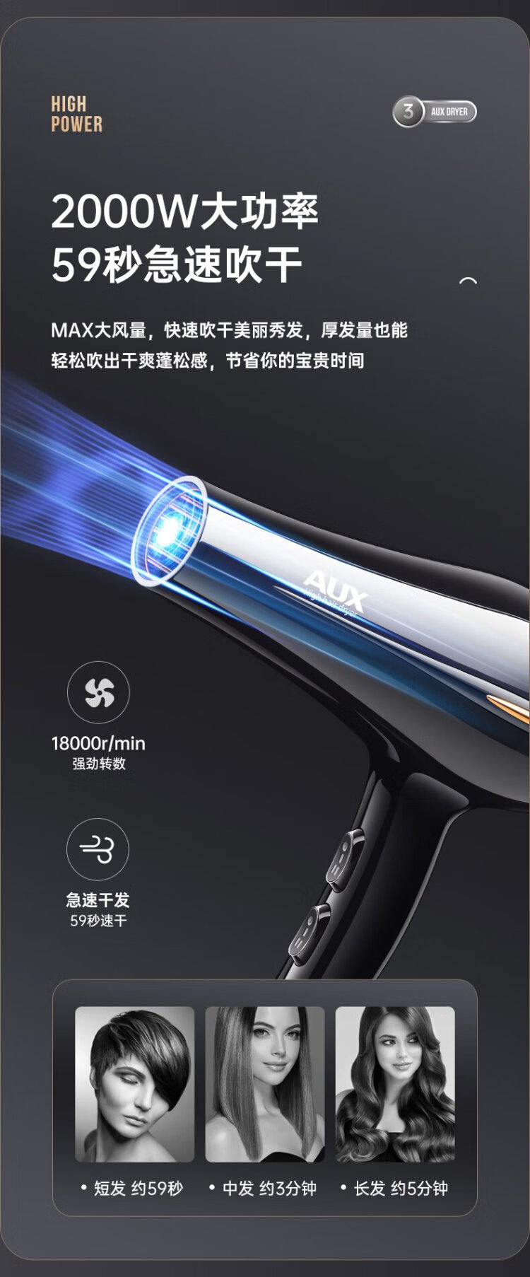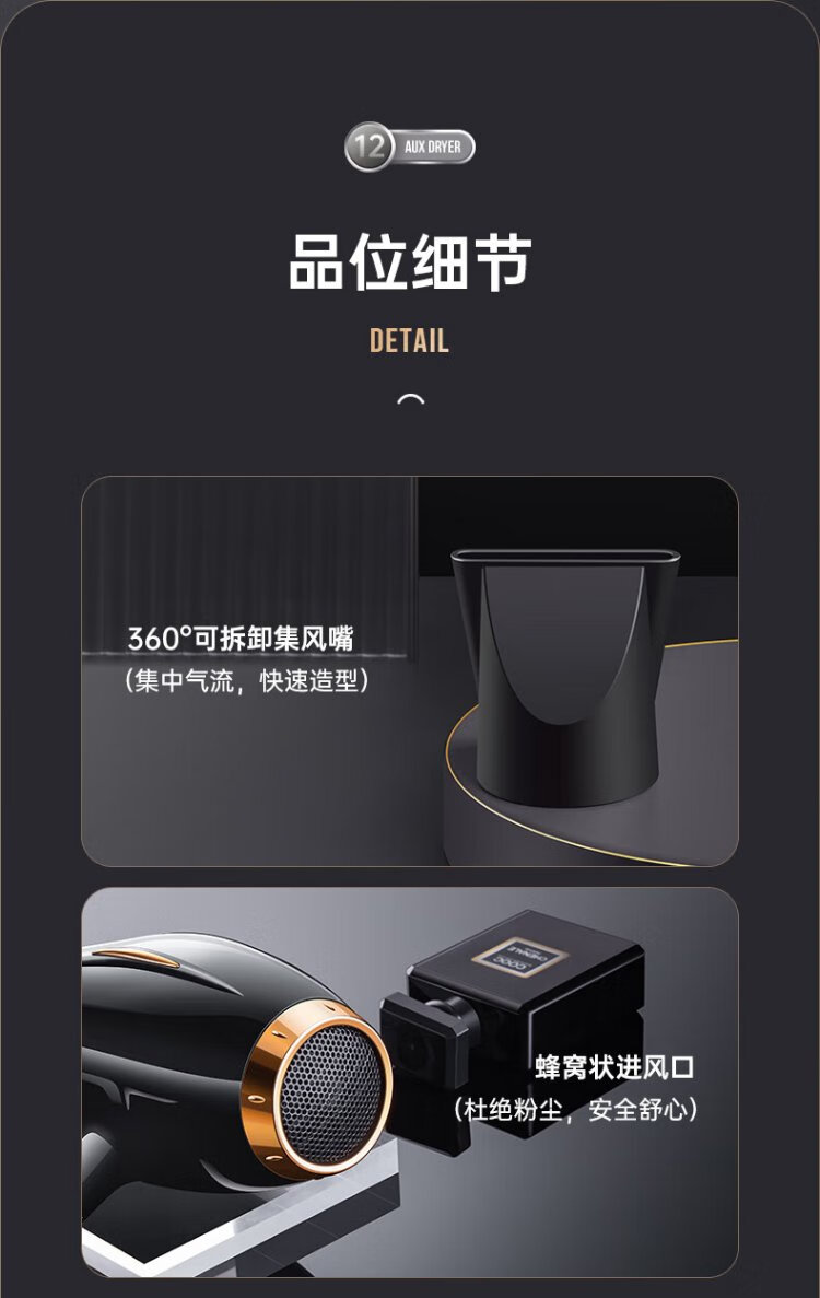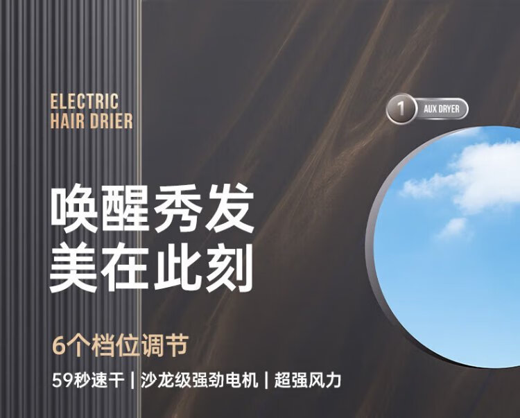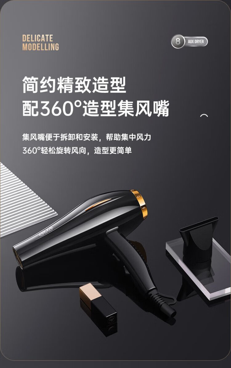 AUX hair dryer home 2000W high power hair dryer for hair salons, hair dryer, high wind speed drying hair dryer, barber shop hair dryer black AH7611