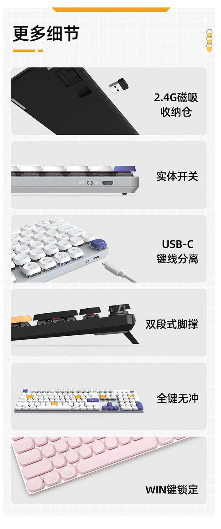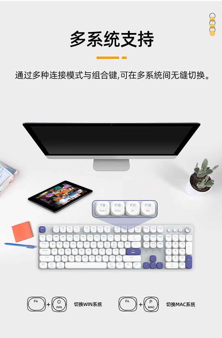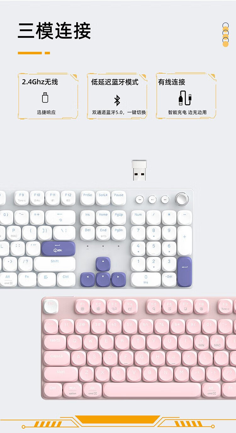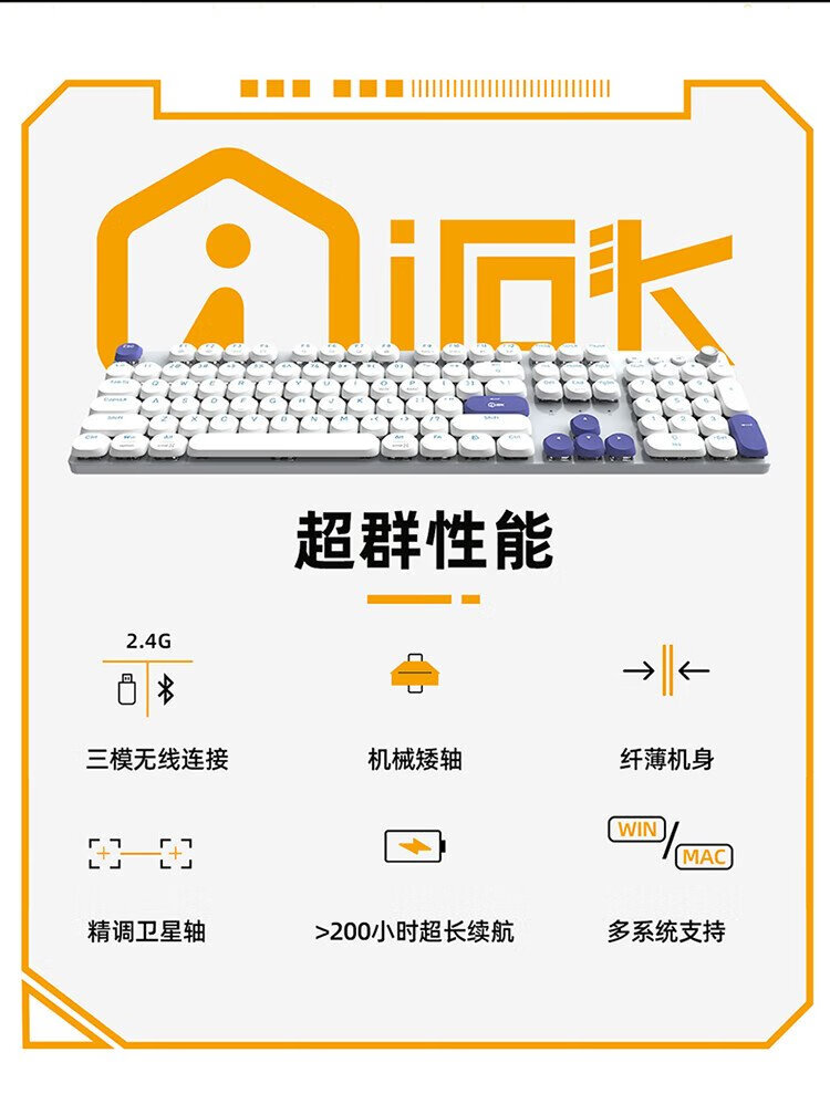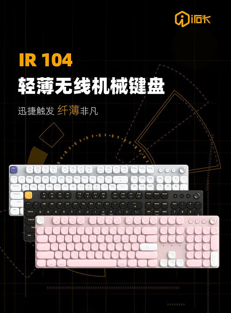 AI Stone IR104 three-mode wireless connection low shaft slim body full size mechanical keyboard office gaming keyboard pink brown shaft