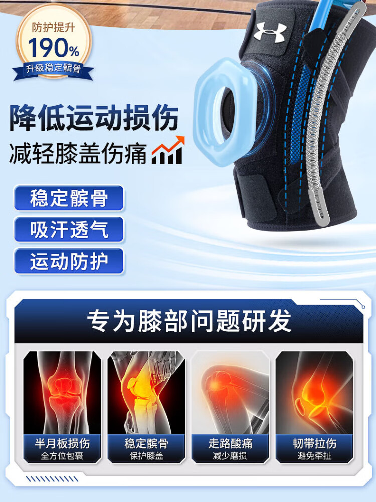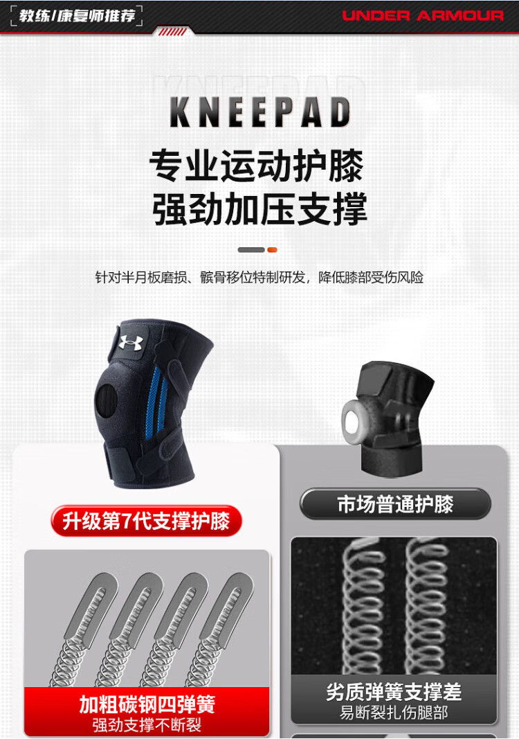 Under Armor knee pads, sports running, professional mountaineering, meniscus, basketball, badminton, cycling, warm jump rope, arthritis protective gear