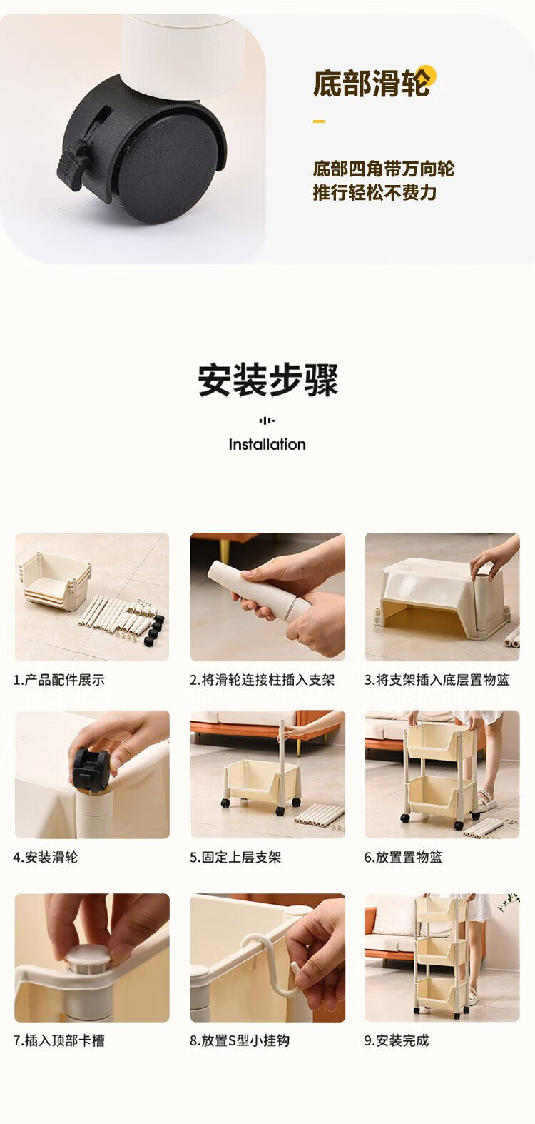 Shunyou cart storage rack floor-standing removable snack multi-functional kitchen vegetable rack book storage rack four-layer SY-117